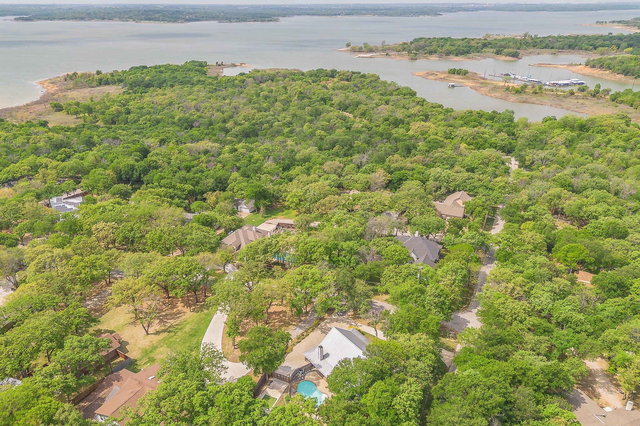 Stunning Lake-House Style Retreat Near Grapevine Lake. Discover this one-of-a-kind lake-house style home, just a short walk to Grapevine Lake and the Northshore Trails. This custom log cabin-inspired residence features a solid wood exterior and a durable metal roof, set on nearly half an acre of serene, private land. Step outside to your backyard oasis, complete with a sparkling pool, covered patio, built-in grill, and mature trees, perfect for entertaining or relaxing in nature. Enjoy the charm of a wrap-around porch and a wrought iron front door that warmly welcomes you inside. Inside, a grand staircase with natural wood rails leads to an open floor plan with soaring vaulted ceilings. The completely custom kitchen boasts a massive granite island, custom cabinets, breakfast bar, and a spacious breakfast nook. Unique pine, spruce, and cedar wood accents throughout the home add warmth and character. At the heart of this property lies the original 1950s cabin, transformed into a luxurious master retreat with a large soaking tub, walk-in tiled shower, and cozy fireplace. The rest of the home, thoughtfully built around the original structure in 2010, blends historical charm with modern comforts. The spacious living room features a striking stone fireplace, while the first floor also includes a guest bedroom and full bath. Upstairs, a loft leads to an additional bedroom and a massive walk-out attic, fully insulated and ready to convert into a fourth bedroom, office, or flex space. Located just minutes from the Lakeside area, this home offers easy access to restaurants, shopping, boutiques, coffee shops, and major highways. Zoned for the highly sought-after LISD, including Flower Mound High School, this exceptional property is truly a rare gem. Don’t miss your chance to make it yours!
