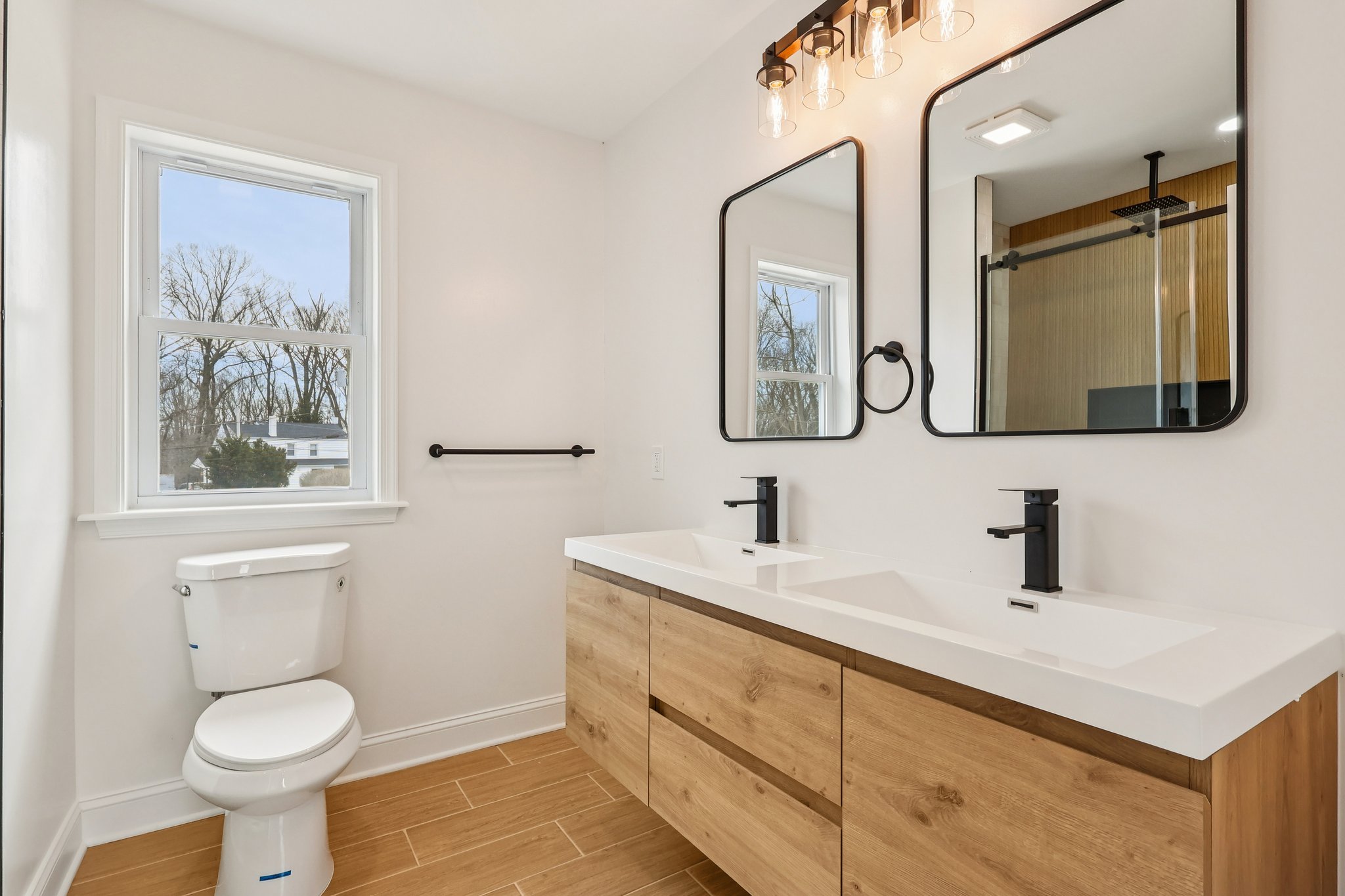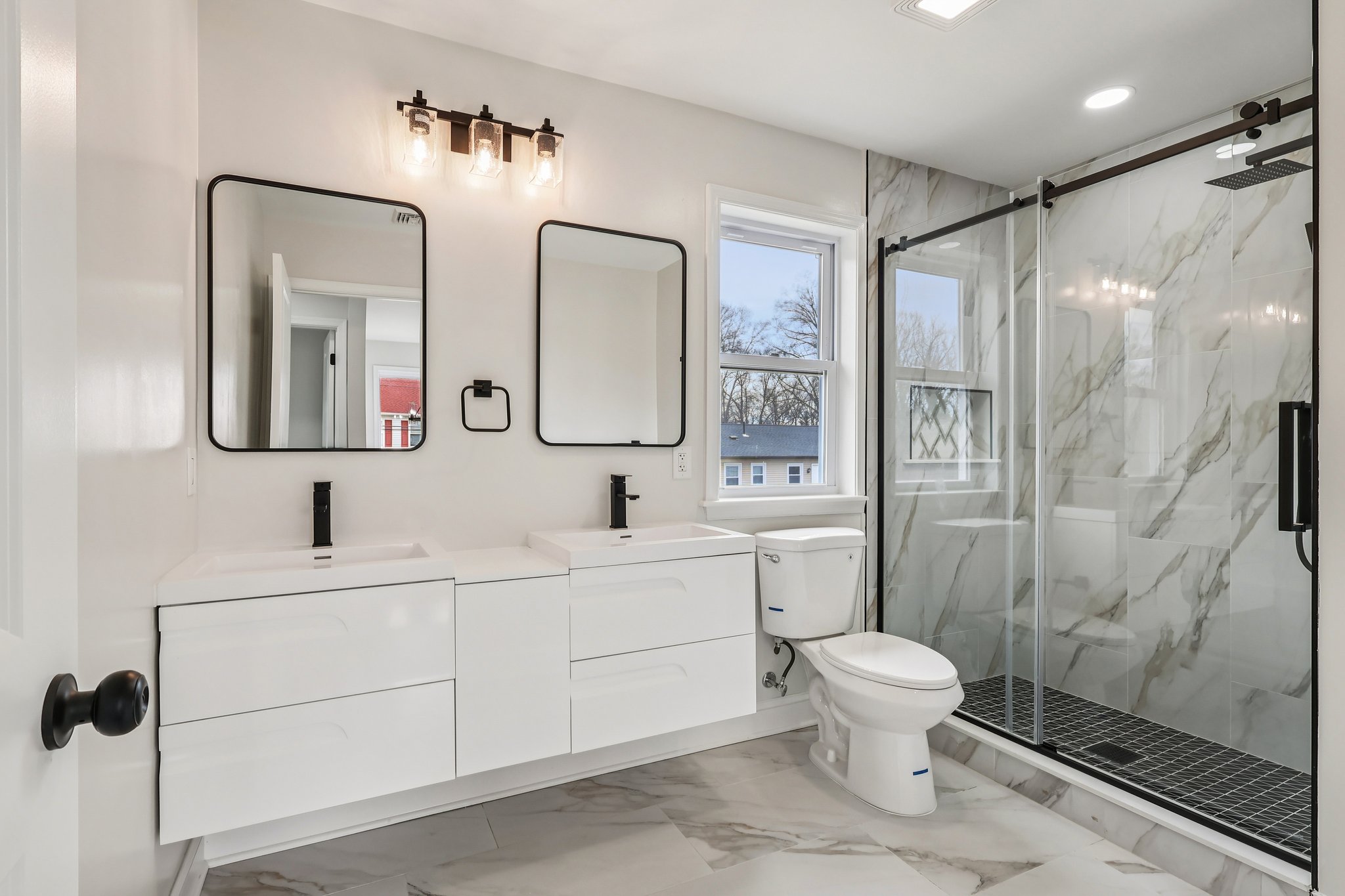 Absolutely Stunning 5 Bedroom 3 Full Bath Colonial with a Full Finished Basement awaits you! This New build will not disappoint as Builder has left no stone unturned and has completed this home from top to bottom to the utmost finest detail! As you pull up to the extended driveway you will immediately be welcomed by a gorgeous covered porch and a beautiful modern natural door with accent glass. Entering inside, the light laminate flooring and the staircase with striking dark railing, will take your breath away! Venturing into the open floor plan, a quartz waterfall island centers the space with rectangular pendant lights! Modern cabinetry, glass beaded backsplash with golden accents, new stainless steel appliances, along with a huge farmers sink are the ideal ingredients for a truly spectacular designer kitchen! Plenty of space for your eat-in breakfast room with views to the exterior! The living room is complimented with many recessed lights, formal moldings, and plenty of windows to add to this bright and sunny space!On the main level, two large bedrooms are featured with access to a full bathroom which has natural porcelain tile flooring, large white vanity with black finishes and countertop, and a huge shower stall tiled in black and white and features a large shower glass door. Up on the Second level you will be welcomed by a loft landing area - extra space for a reading nook or sitting area and the hallway which looks down to the foyer below is completely surrounded by beautiful moldings! Main Bedroom Suite features a large walk-in closet and a fantastic En-suite bathroom with earthy tone floating dual vanity, large shower stall with seat, and glass doors. Two additional bedrooms are also featured on this level along with the convenience of a second floor laundry room! On the second level is also a stunning third full bathroom which features double vanity in white, porcelain tile flooring, and large shower stall with marble accent tile and features glass shower door! As you venture down to the lower level you will be taken away by the finished basement which has a large egress window, new carpets, plenty of recessed lighting, and has been improved with new sump pump system and a new electrical panel. This gorgeous model home has been completed with electric heat and affords all the new efficiencies such as brand new windows, roof, fencing and storage shed. Home comes with a side patio with interior access - ideal for entertaining and barbecuing on those summer evenings, and has a spacious lot! Centrally located in award winning Neshaminy School District and easy commuting to Philadelphia, New York and NJ! Do not miss out - this home will no last long!