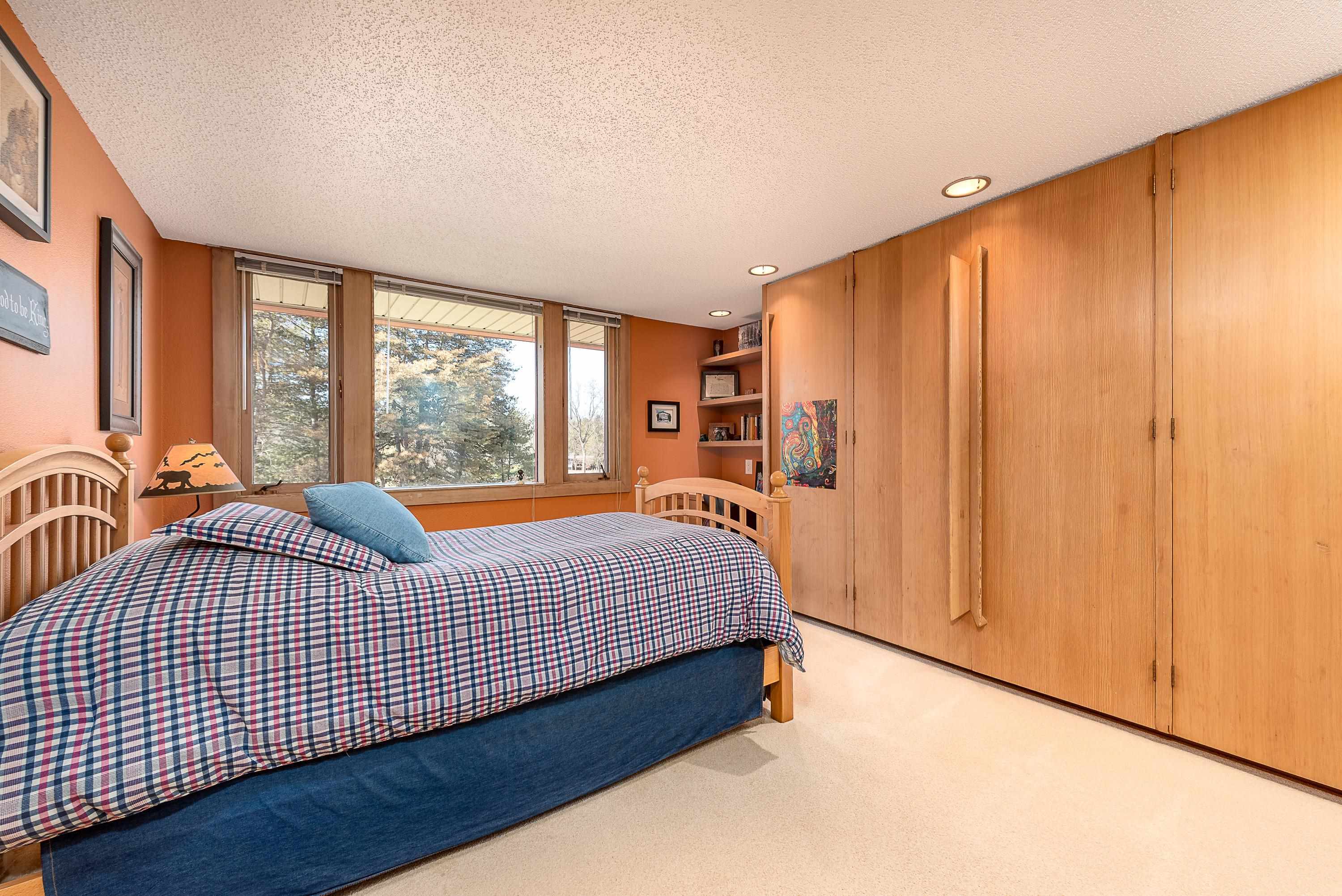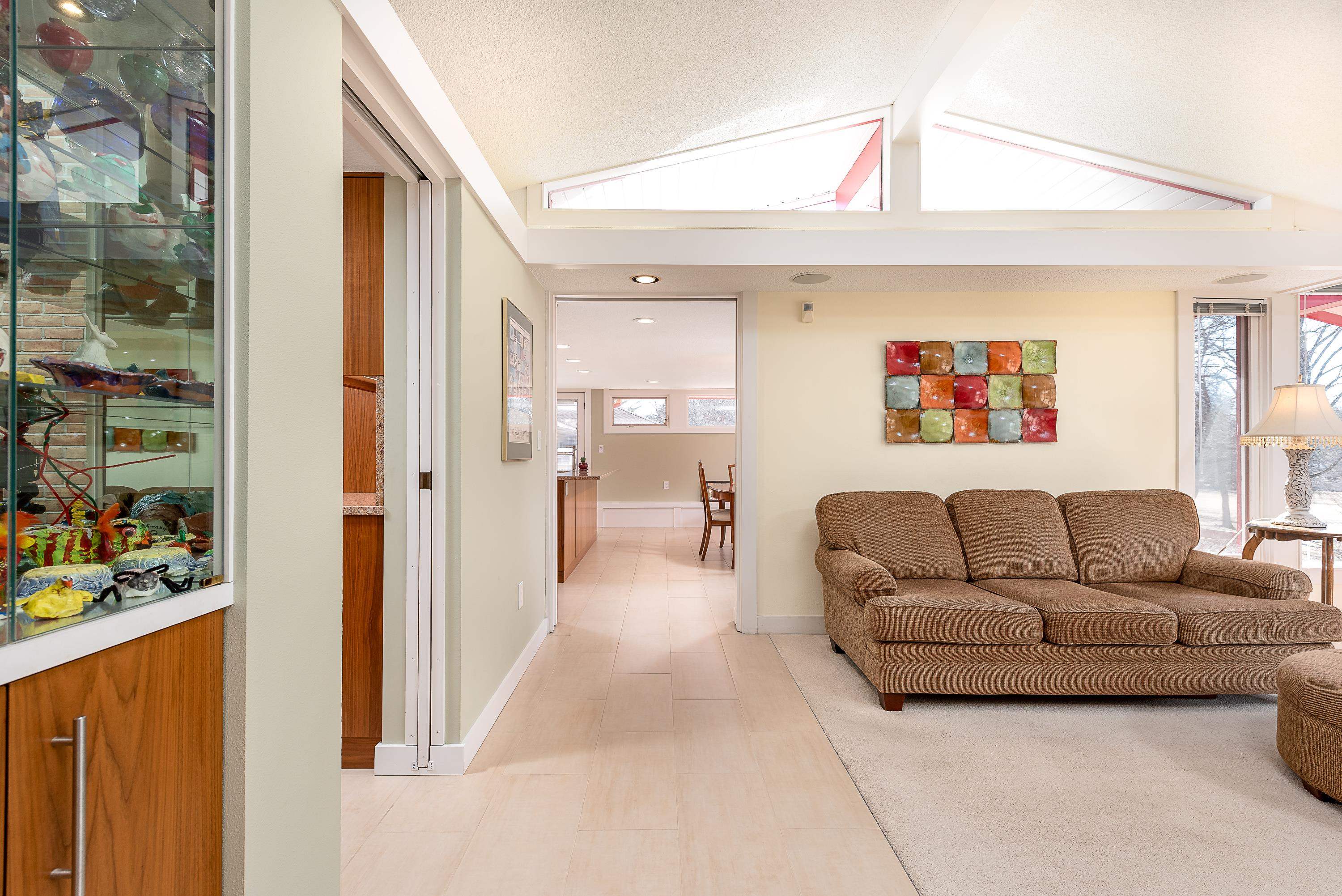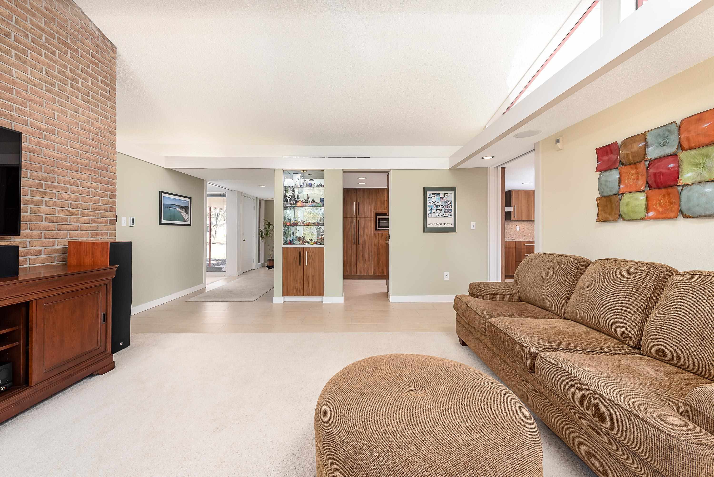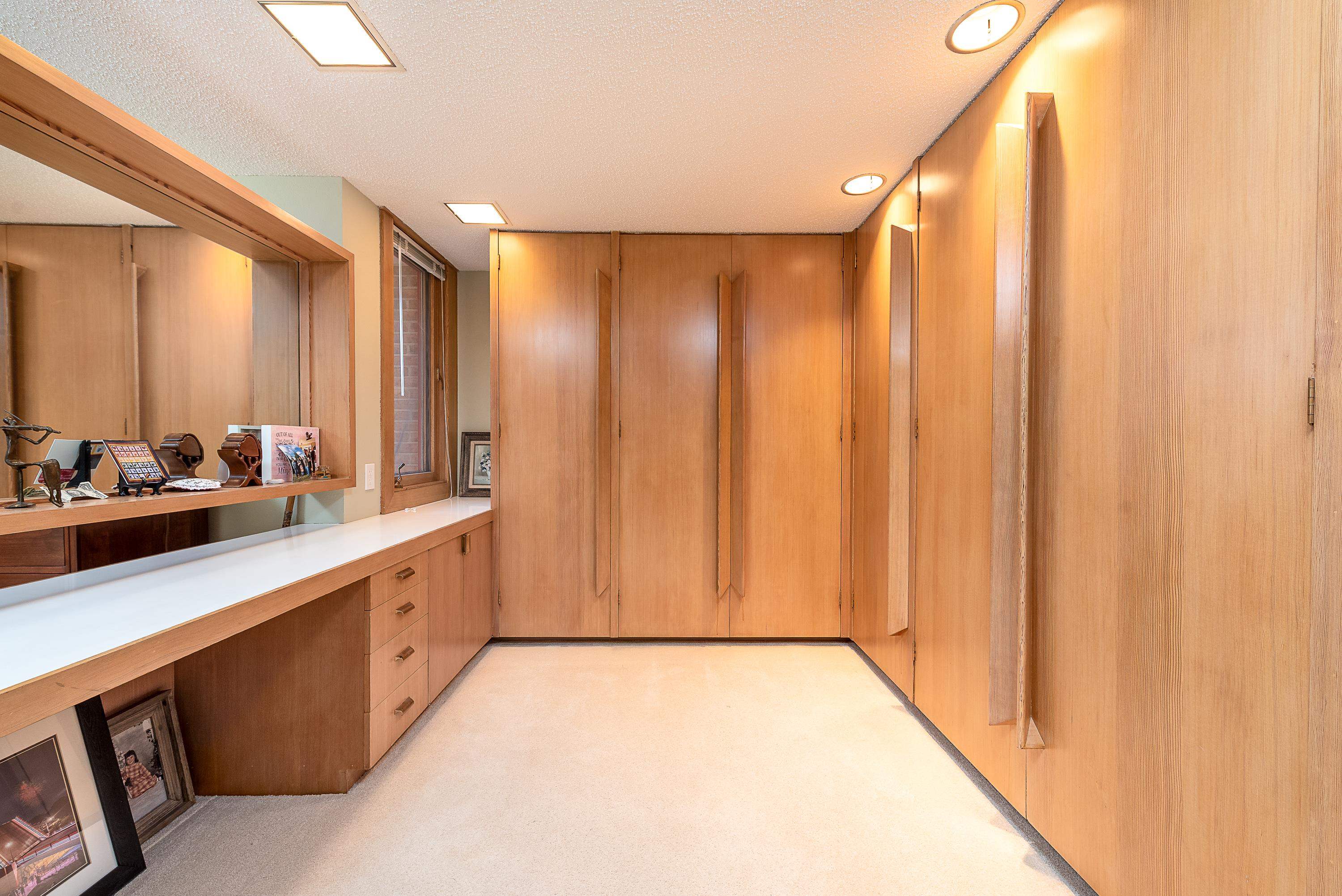 Introducing a true architectural statement in one of Midland's most sought-after neighborhoods, a stunning Mid-Century Modern masterpiece designed by Glenn Beach. Offering over 4,200 square feet of beautifully finished living space, this 4-bedroom, 3 full-bath home is Mid-Century Modern at its absolute finest. Impeccably maintained and thoughtfully updated, the home showcases walls of windows lining the back of the property, filling the interior with natural light and offering serene views overlooking Valley Park. Clean lines, timeless design, and beautifully crafted built-in wardrobes in every bedroom highlight the authenticity and character that make this style so iconic. The upper level features both a spacious living room with a statement fireplace and a separate family room, offering multiple gathering spaces designed for comfort and entertaining. The expansive primary ensuite is a true retreat, complete with a large dressing area with built-in wardrobes. Heated floors in the kitchen, dining area, and entryway blend modern comfort with classic design. The finished lower level provides exceptional additional living space, including a large recreation room with its own fireplace and bar area, dedicated office/craft room, laundry area with convenient laundry chutes from the upstairs bathrooms, and abundant storage throughout. Outdoor living is just as impressive, with a massive multi-level wraparound deck and covered patio that seamlessly connect to both the upper and lower levels of the home, perfect for entertaining or enjoying peaceful evenings on your large (.67 acre) private lot overlooking the park. Completing the package is a spacious attached 2.5-car garage with additional workshop space. Conveniently located near the library, Center for the Arts, hospital, and many of the wonderful amenities Midland has to offer. A rare opportunity to own a true mid-century modern showpiece in the heart of Midland.