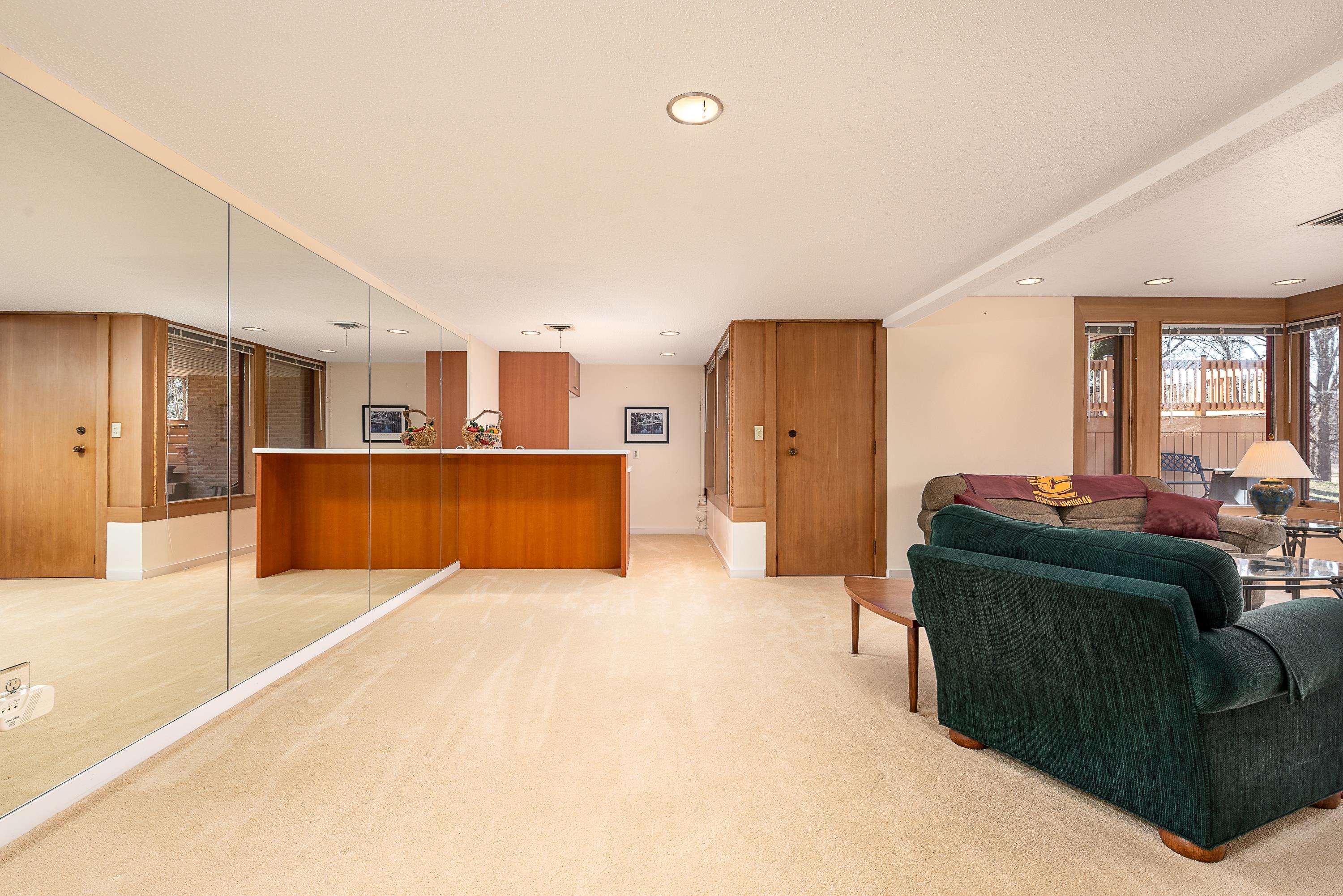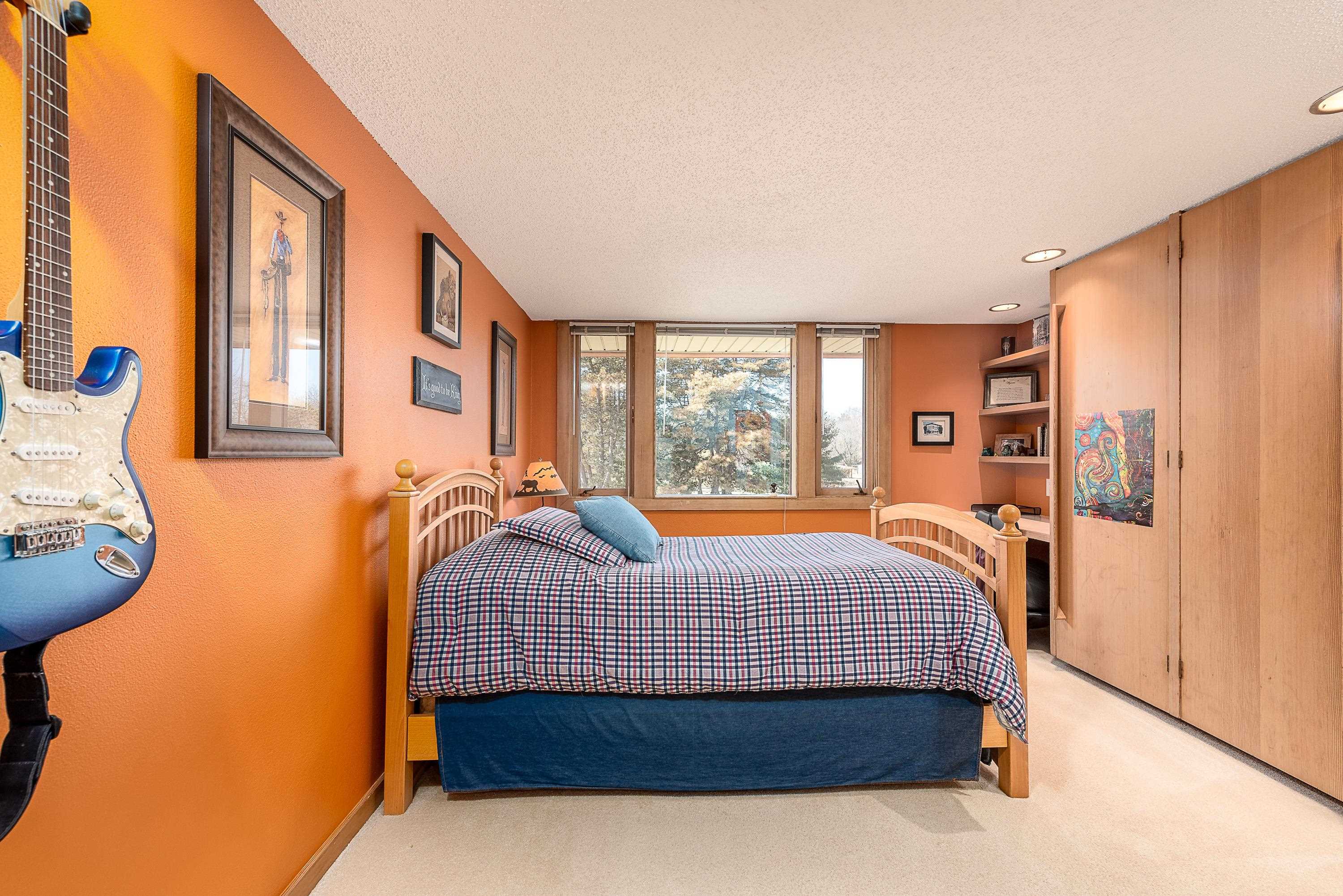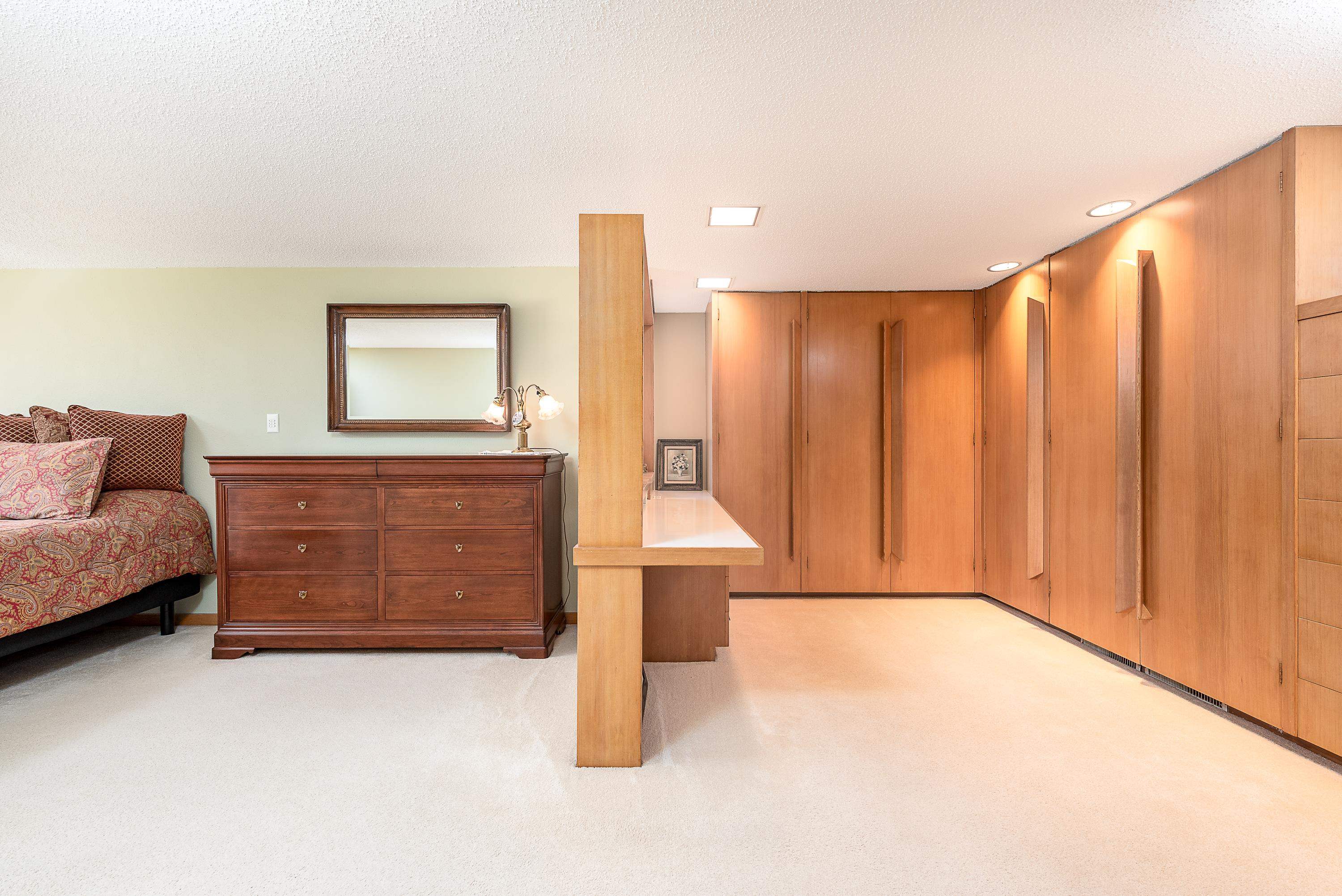 Introducing a true architectural statement in one of Midland's most sought-after neighborhoods, a stunning Mid-Century Modern masterpiece designed by Glenn Beach. Offering over 4,200 square feet of beautifully finished living space, this 4-bedroom, 3 full-bath home is Mid-Century Modern at its absolute finest. Impeccably maintained and thoughtfully updated, the home showcases walls of windows lining the back of the property, filling the interior with natural light and offering serene views overlooking Valley Park. Clean lines, timeless design, and beautifully crafted built-in wardrobes in every bedroom highlight the authenticity and character that make this style so iconic. The upper level features both a spacious living room with a statement fireplace and a separate family room, offering multiple gathering spaces designed for comfort and entertaining. The expansive primary ensuite is a true retreat, complete with a large dressing area with built-in wardrobes. Heated floors in the kitchen, dining area, and entryway blend modern comfort with classic design. The finished lower level provides exceptional additional living space, including a large recreation room with its own fireplace and bar area, dedicated office/craft room, laundry area with convenient laundry chutes from the upstairs bathrooms, and abundant storage throughout. Outdoor living is just as impressive, with a massive multi-level wraparound deck and covered patio that seamlessly connect to both the upper and lower levels of the home, perfect for entertaining or enjoying peaceful evenings on your large (.67 acre) private lot overlooking the park. Completing the package is a spacious attached 2.5-car garage with additional workshop space. Conveniently located near the library, Center for the Arts, hospital, and many of the wonderful amenities Midland has to offer. A rare opportunity to own a true mid-century modern showpiece in the heart of Midland.