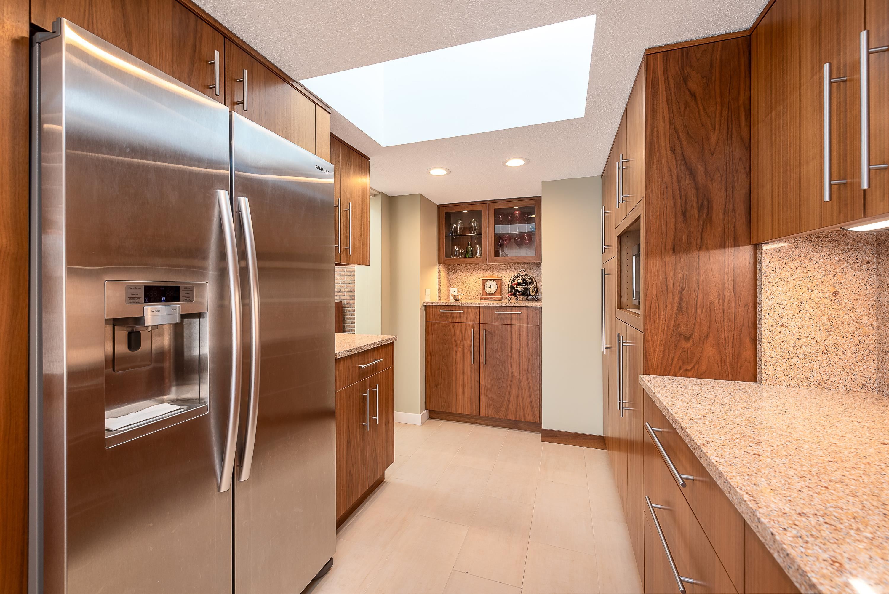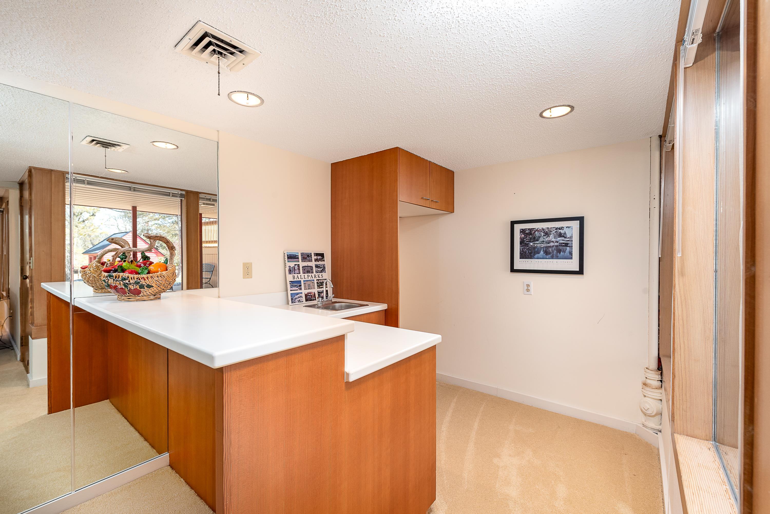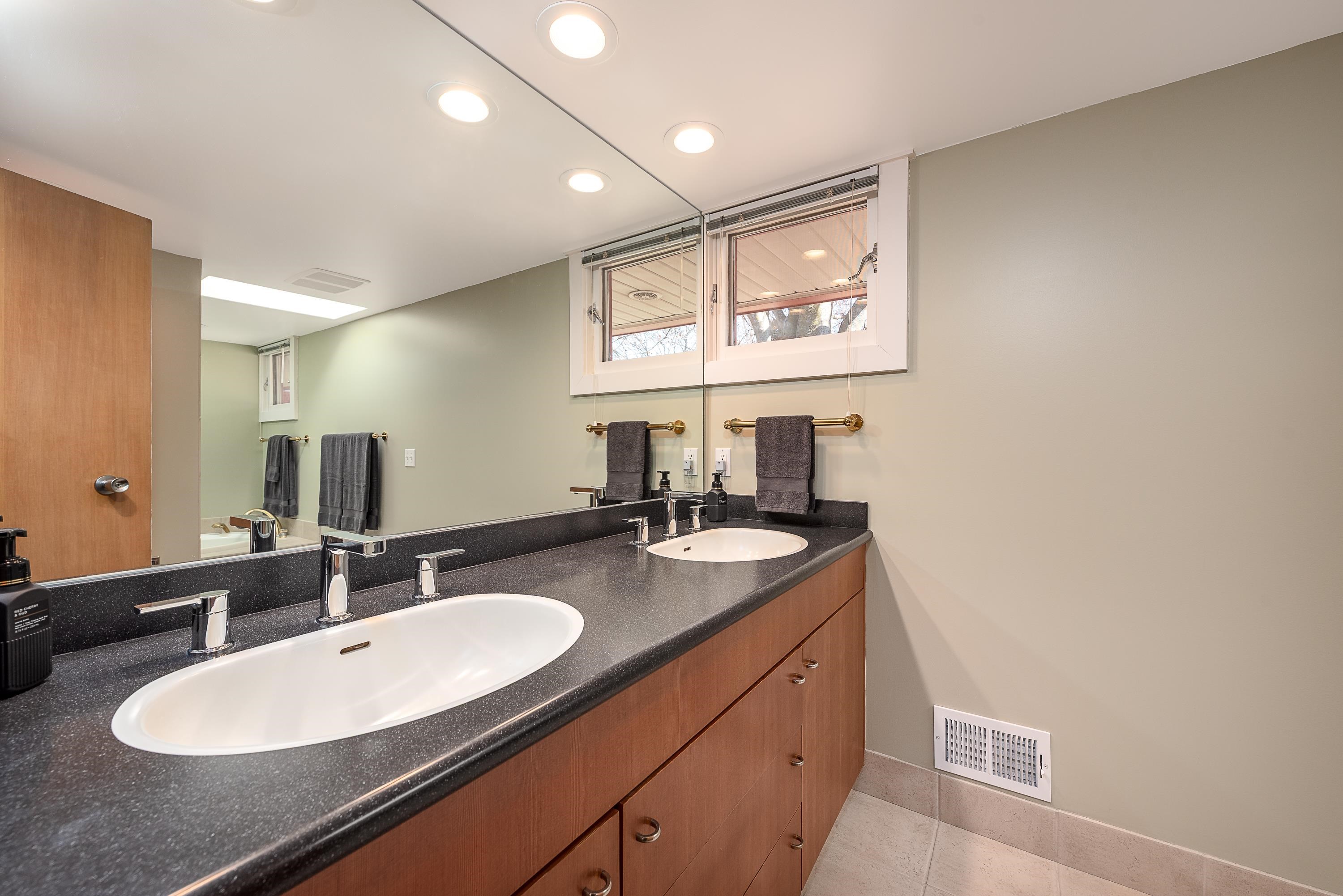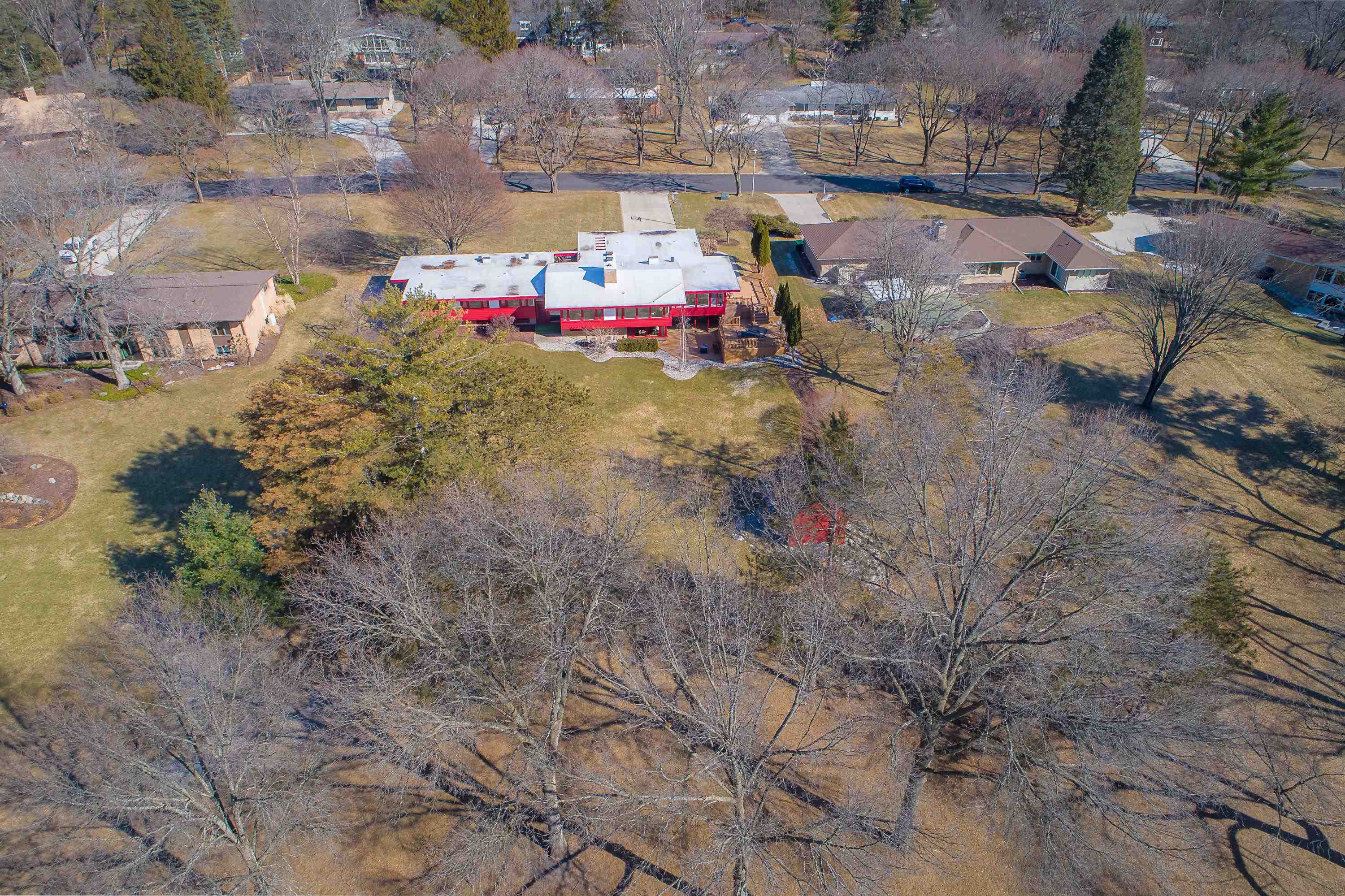 Introducing a true architectural statement in one of Midland's most sought-after neighborhoods, a stunning Mid-Century Modern masterpiece designed by Glenn Beach. Offering over 4,200 square feet of beautifully finished living space, this 4-bedroom, 3 full-bath home is Mid-Century Modern at its absolute finest. Impeccably maintained and thoughtfully updated, the home showcases walls of windows lining the back of the property, filling the interior with natural light and offering serene views overlooking Valley Park. Clean lines, timeless design, and beautifully crafted built-in wardrobes in every bedroom highlight the authenticity and character that make this style so iconic. The upper level features both a spacious living room with a statement fireplace and a separate family room, offering multiple gathering spaces designed for comfort and entertaining. The expansive primary ensuite is a true retreat, complete with a large dressing area with built-in wardrobes. Heated floors in the kitchen, dining area, and entryway blend modern comfort with classic design. The finished lower level provides exceptional additional living space, including a large recreation room with its own fireplace and bar area, dedicated office/craft room, laundry area with convenient laundry chutes from the upstairs bathrooms, and abundant storage throughout. Outdoor living is just as impressive, with a massive multi-level wraparound deck and covered patio that seamlessly connect to both the upper and lower levels of the home, perfect for entertaining or enjoying peaceful evenings on your large (.67 acre) private lot overlooking the park. Completing the package is a spacious attached 2.5-car garage with additional workshop space. Conveniently located near the library, Center for the Arts, hospital, and many of the wonderful amenities Midland has to offer. A rare opportunity to own a true mid-century modern showpiece in the heart of Midland.