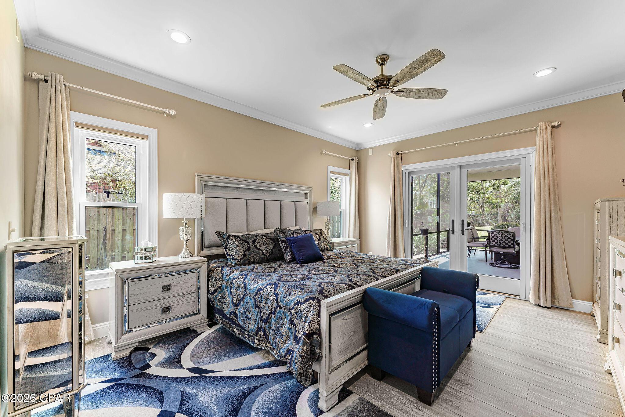 STUNNING CUSTOM HOME IN COLLEGE POINT. This spacious home offers 6 bedrooms, 4 full bathrooms, and over 3,600 square feet of living space, with main living areas that are both inviting and functional. The family room, living room, and formal dining area flow seamlessly into a beautifully updated kitchen with a breakfast nook. The kitchen has been recently renovated with granite countertops, an updated sink and faucet, new tile flooring and backsplash, along with modern lighting and a ceiling fan. Additional highlights include high ceilings, detailed trim work, fresh paint throughout, and a custom feature wall with a gas fireplace and built-ins. An interior laundry room offers added convenience with a sink, cabinetry, and counter space. The private master suite is located on the main level and features French doors that open to the back patio. The master bath includes a jetted tub, separate shower, double vanity, abundant natural light, and a large closet with a custom system. A guest bedroom and full bath are also located on the first floor. Upstairs includes 4 additional bedrooms, 2 bathrooms, new carpet, a central multi-use area (media/office/living area), and multiple attic spaces that provide excellent storage. Situated on a .46 acre lot, the property is surrounded by meticulous landscaping that includes lemon trees, blueberry bushes, crepe myrtles, and a variety of native plants. The backyard is designed for both relaxation and entertaining, featuring a large 20x30 covered and screened patio accessible through French doors from the living room. The welcoming covered front porch adds charm and is perfect for seasonal d?cor. This home also includes a fenced backyard, an oversized garage with a workbench, an extended driveway with space for up to six vehicles, room to park an RV or boat, a two-room storage shed, a fire pit, and raised garden beds. In addition to kitchen and bath updates, upgrades include updated lighting and ceiling fans throughout the home (inside and out), updated Hardie board siding, fresh paint, a new water heater, and more. Tucked away on a quiet cul-de-sac in College Point, this property offers privacy and space with the added benefit of no HOA, while still being conveniently located near local amenities. Call today for your private preview. Measurements approximate.