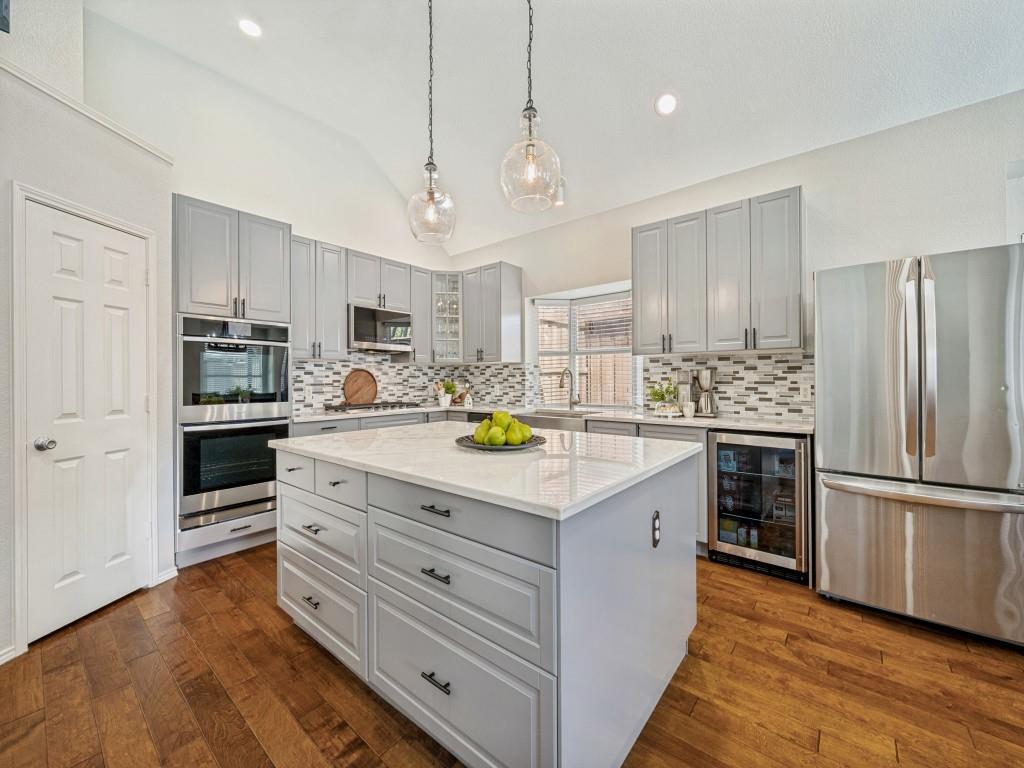 Stunning 4 bedroom, 2 bath pool home in Riverside offering the perfect blend of modern upgrades, smart home features, and a backyard built for entertaining. From the moment you enter, you’ll notice the stylish upgrades throughout including luxury vinyl flooring, upgraded baseboards, recessed lighting, and elegant French doors that fill the home with natural light and create a warm, inviting atmosphere. The beautifully updated kitchen features modern cabinetry, sleek quartz countertops, and a matching quartz backsplash, making it the perfect space for cooking, entertaining, and gathering with family and friends. Both bathrooms have been tastefully updated, including improvements to the primary bathroom, while the hallway bathroom includes a reglazed tub and updated vanity for a fresh, modern look. Additional upgrades such as dual pane windows, smart thermostat, and upgraded AC system add comfort and energy efficiency. Step outside to your private resort-style backyard where you can relax or entertain year-round. Enjoy the sparkling pool with Pebble Tec finish and upgraded pool filter, surrounded by plenty of space to host gatherings. The backyard also features an aluminum patio cover, gazebo, and stucco privacy walls, creating the perfect outdoor retreat. A removable pool safety fence adds peace of mind for families. Additional improvements include a smart irrigation system and upgraded water heater, making this home both functional and move-in ready. This is a fantastic opportunity for buyers looking for a turn-key home with modern upgrades and a resort-style backyard.