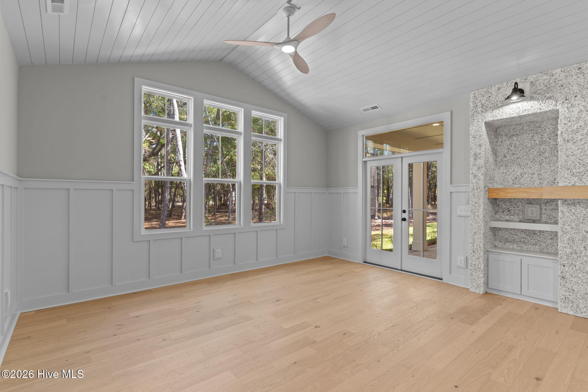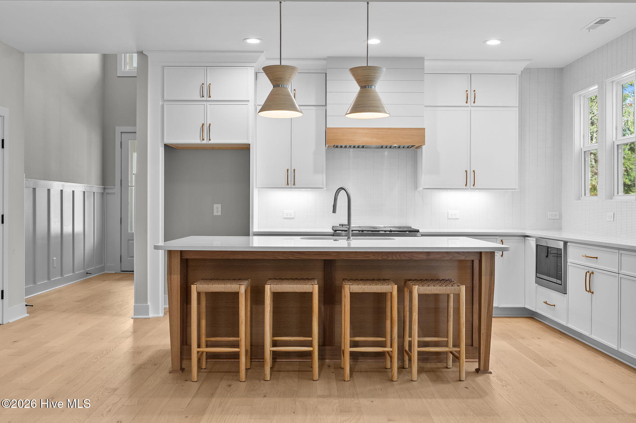 Set within the gated coastal community of Oyster Harbour, this stunning new construction home by local builder Airlie Homes offers 4 bedrooms, 3 full baths, and multiple flex spaces with elevated finishes throughout. Situated on a spacious .43-acre homesite, this 3,094 sq ft home provides room to spread out both indoors and out. A striking two-story foyer with board-and-batten wainscoting opens to a light-filled open floor plan. The living room features a dramatic shiplap vaulted ceiling and a beautiful shell tabby fireplace with dogwood mantel and custom built-ins. The premier kitchen showcases quartz countertops, slow-close white shaker cabinetry with stacked uppers, a large island, a 6-burner gas range topped with a custom wood hood, plus premium Frigidaire stainless steel appliances. The first-floor primary suite is tucked at the back of the home and features a tray ceiling, custom walk-in closet, and spa-inspired en suite with dual quartz vanities and a zero-entry fully tiled shower with dual shower heads. Two additional main-level bedrooms share a full bath, while a sunlit study with picture-frame molding offers the perfect home office or cozy retreat. Upstairs includes a private bedroom and full bath, a large bonus room with access to a covered porch, and an expansive flex room ideal for a home gym, playroom, media room, or secondary office. Additional highlights include hardwood floors, plush carpeting in secondary bedrooms, a laundry room w/ built-ins, rear-entry two-car garage, & a covered back porch perfect for grilling or relaxing. Residents of Oyster Harbour enjoy exceptional amenities including a boat ramp and day dock on the ICWW, fishing pier, kayak launch, clubhouse with fitness center, tennis and pickleball courts, walking trails, picnic areas, and secure boat/RV storage—all surrounded by scenic ponds and coastal forest. A rare opportunity to own a beautifully crafted home in a coastal community. Schedule your private showing today!