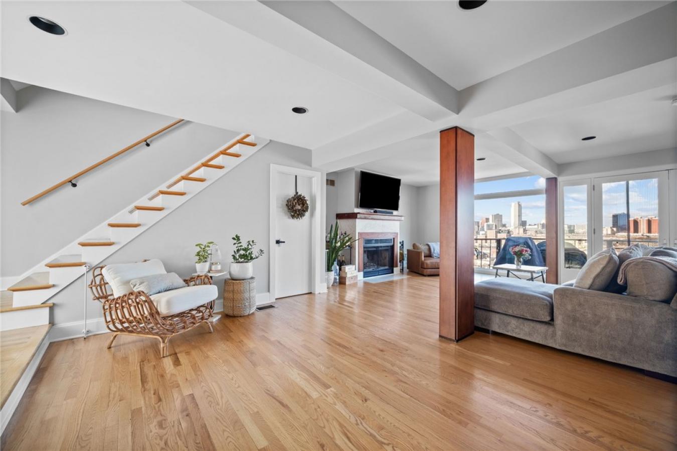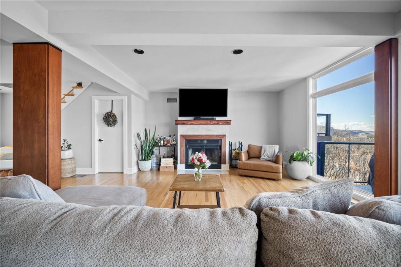 This newer construction home is perched on the South Side slopes to capture some of the most dramatic panoramic views of the city skyline. Whether you are hosting friends for the July 4th fireworks or enjoying a quiet evening looking over the city, this property delivers a rare combination of style and comfort. From the full front porch, you step into an expansive open floor plan where a wall of windows frames the city like a piece of art. Gleaming hardwood floors stretch across the main level, anchored by a fireplace that adds warmth and a focal point to the sophisticated living space. The kitchen brings a whimsical personality to a highly functional design, equipped with stainless steel appliances and an intuitive layout. It is a space built for those who love to cook and host guests. On the second level, you will find three spacious bedrooms featuring brand-new carpeting. The primary suite is a true retreat, offering a large owners bath and the incredible convenience of an integrated laundry area. The third floor expands the living space further with a fourth bedroom and a dedicated den or office, providing an ideal environment for a home workspace or guest area. The lower level is a massive, usable space with high ceilings, perfect for a home gym or climate-controlled storage. Modern essentials are already in place, including a newly installed furnace and a Tesla charging station. This home is just a short walk to a local park and the citys best restaurants, including the renowned Dish.