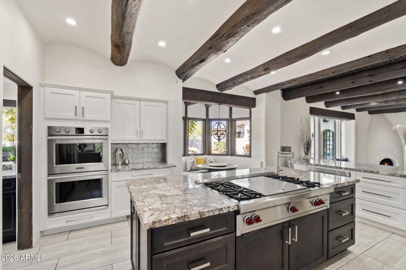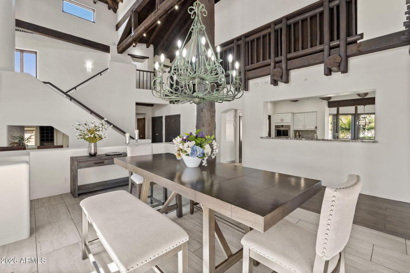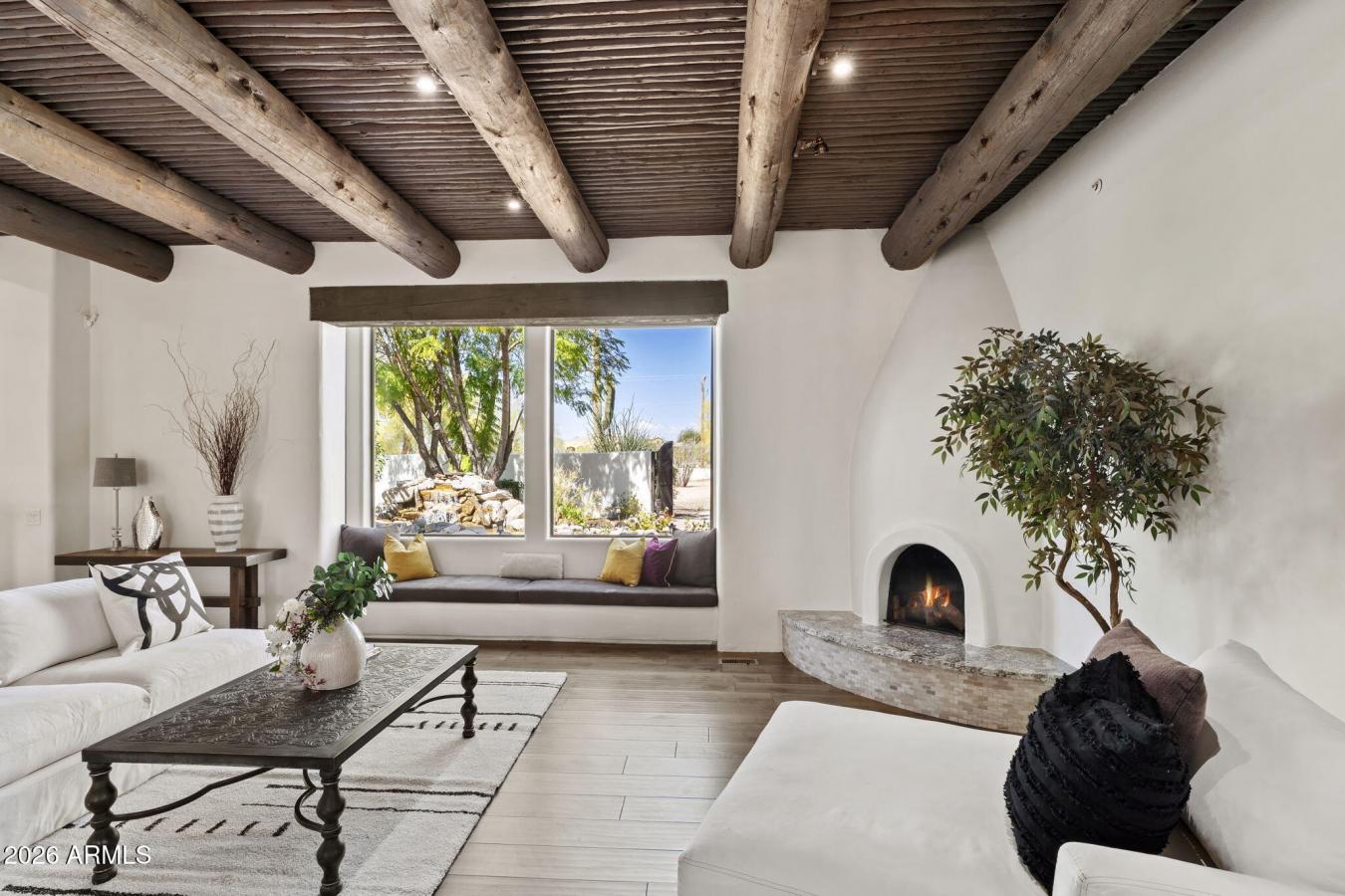 Welcome to a privately gated desert estate set on nearly two pristine acres in the heart of North Scottsdale, where timeless architecture meets exceptional privacy and space. This impressive 6,000 square-foot residence offers 5 bedrooms and 5 bathrooms, thoughtfully designed with expansive living spaces, soaring ceilings, and an effortless flow ideal for both elegant entertaining and everyday living. The heart of the home features a spacious chefs kitchen that opens to multiple gathering areas, creating an inviting setting for hosting and relaxing alike. Generous bedroom suites provide comfort and privacy, while large windows frame views of the surrounding desert landscape. Outdoors, the estate transforms into a true Arizona retreat. The resort-inspired backyard showcases a sparkling diving pool, lush lawn areas, and a fully equipped outdoor kitchen, perfect for unforgettable gatherings under the desert sky. A private gated entrance, long drive, and 3-car garage complete the sense of arrival and exclusivity. Ideally located near Scottsdale Road and Pinnacle Peak, this remarkable property offers the rare opportunity to enjoy space, privacy, and luxury living in one of North Scottsdales most desirable settings.