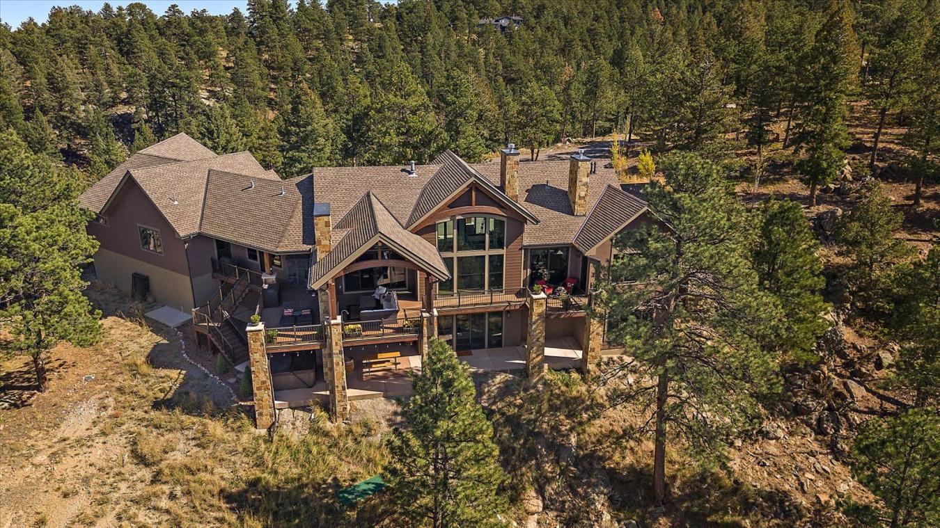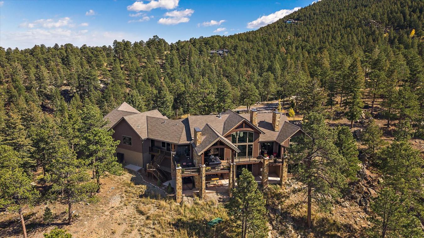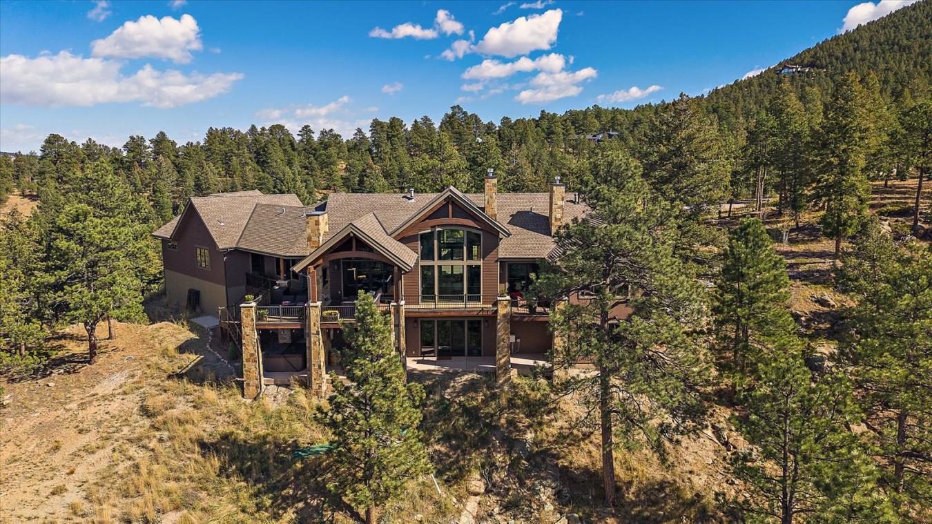 This is the ultimate estate with a blend of convenience, privacy & perhaps the best snow-capped views in Evergreen. This custom home offers luxurious, yet comfortable, mountain living with stunning architectural touches. There is a harmonious blend of rustic and modern finishes. As you enter the foyer, Mt. Blue Sky is optimally framed in the windows beyond. The great room offers a large entertaining area with a warm wood-paneled ceiling & over-sized fireplace. This area flows seamlessly into the dining area that has been designed for gatherings large or small & open to the gourmet kitchen w/ the epicurean in mind. From the gas range to enormous pantry and island, you will love cooking and engaging with family. Thoughtfully constructed with aging in place in mind, the home offers true main level living. A sumptuous primary suite captures the expansive views and a fireplace while the bath is magazine-worthy. Enjoy the huge closet that conveniently connects to the stunning laundry room. The main level office might be difficult to work in given the snow-capped vistas, but it is worth a try. The lower level is the ideal space for entertainment. A game room/family room welcomes you where the pub-like bar will become the hub of the space island & brick surround. A media room makes the perfect space for movie watching & there are two generously-sized bedroom (one has its own en-suite bath). The home gym means less trips leaving your private oasis. A huge bonus is the 2300 sqft unfinished space w/separate garage door. This is a blank slate for your storage, living expansion, hobbies. The attached 3 car garage is heated, and offers a shower and entrance into a mud room that was designed with 4-legged friends in mind. As astonishing as the interior is, the exterior is awesome w/ upper level deck offering an outdoor living room w/ gas fireplace, TV space and multiple seating areas. The lower patio has a private hot tub. Enjoy a real yard, & gentle driveway.