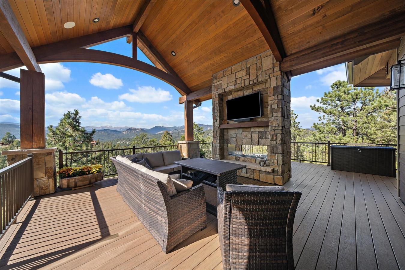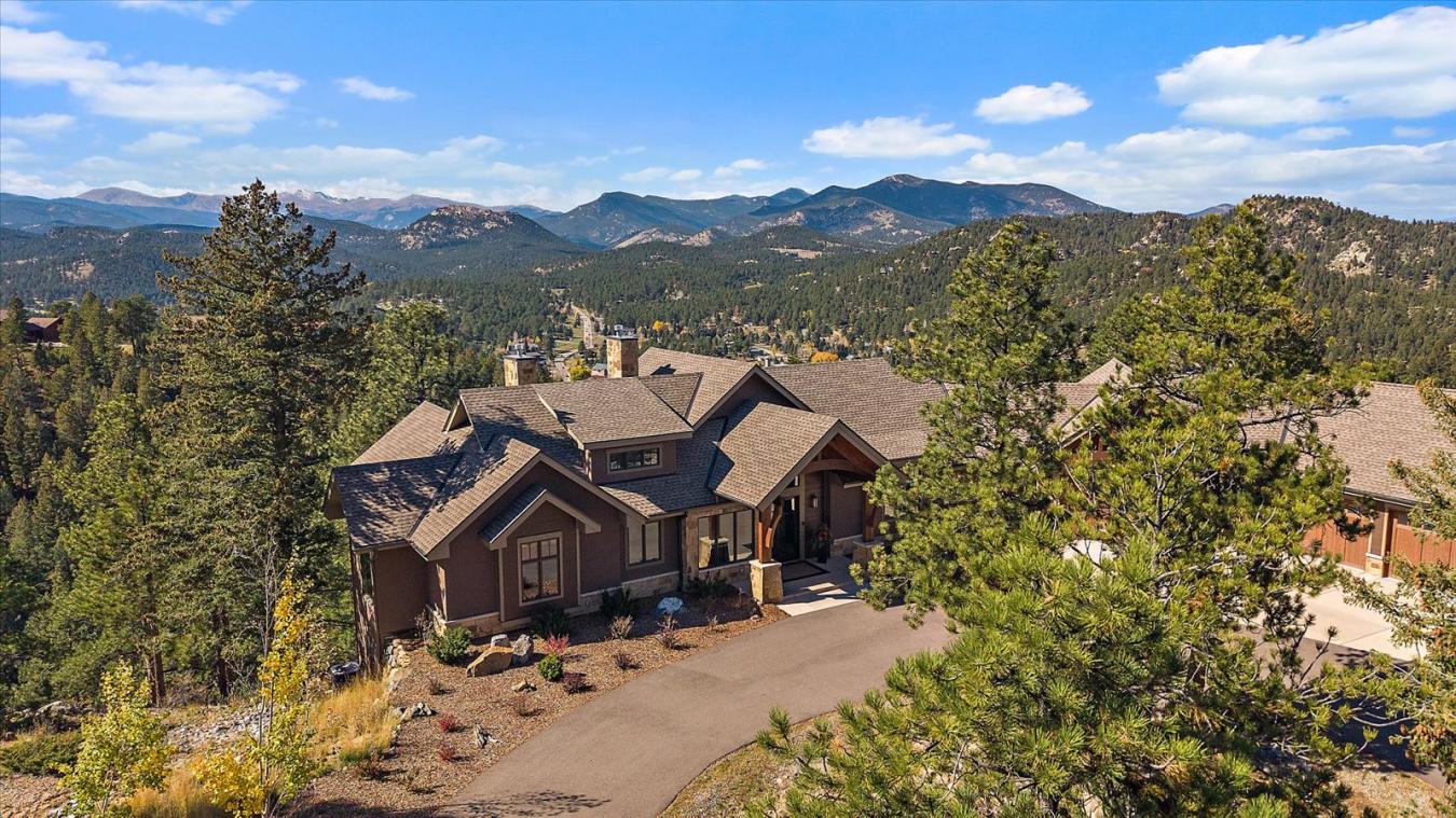This is the ultimate estate with a blend of convenience, privacy & perhaps the best snow-capped views in Evergreen. This custom home offers luxurious, yet comfortable, mountain living with stunning architectural touches. There is a harmonious blend of rustic and modern finishes. As you enter the foyer, Mt. Blue Sky is optimally framed in the windows beyond.