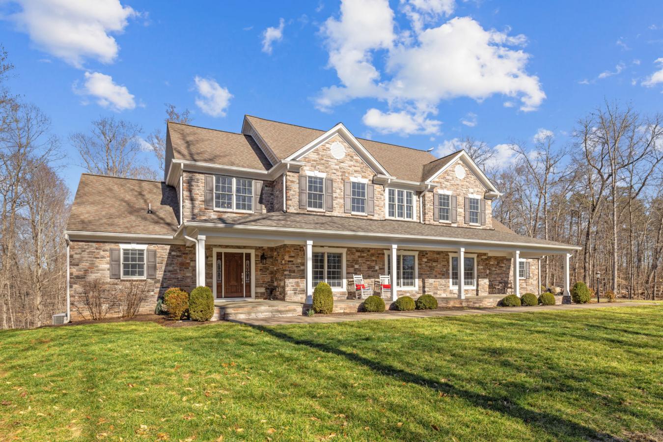 This substantial country estate offers the most supreme privacy in an area of thousands of acres of protected conservation land. If your first choice is privacy, it doesnt get any better than this. Situated on 78 acres, one drives through the impressive stone entrance, and a long, paved driveway takes you through your very own open countryside, through a row of trees, and again to open pasture. After passing the impressive stable the drive winds up to a parklike setting and, completing the long-drive approach, to a particularly fine country house built to exacting specifications. Built of stone and Hardie Plank, and approximately 6,500 sq. ft., the home features 10 ceilings. Enter the manor-sized entry reception hall and your first glance features an elegant "good-morning" staircase. Off the reception hall is a den with bookshelves, a full bath, and a bright sunroom. It also leads into a large gathering room with massive pub beams and fireplace and then on into a sizeable, formal dining room. A fully-fitted kitchen and a light-filled breakfast room looks out into the forest. Beyond the oversized pantry, there is a spacious laundry room, a place for boots and coats, that leads to garaging for three cars equipped with automatic doors. Up the "good-morning" staircase leads to a comfortable sitting/piano room looking down into the entrance. Follow an extra-wide hallway and one finds the primary suite with well-proportioned accommodations that include a lounge, bath, bed chamber, sunny sitting spaces and a king-sized walk-in closet. Two other bedrooms, with 2 double closets each and a Jack and Jill bath complete this level. Down the staircase to the lower level, one finds a TV area, a bedroom, full bath, and a first class, very spacious media/recreation room with lots of windows with remote control shades and a bar arrangement. It opens to a stone patio. From here it is a short walk to the stable with double doors at both ends, two stalls with space for others, a wash rack, 1/2 bath and laundry area. Upstairs there is a multi-purpose area possibly for an exercise room, farm office, home business or lounge area, with full bath and features a deck with lovely views. If you like a leisurely stroll or morning ride, there are what seems to be endless lovely, wooded trails for exercise or relaxation. You can almost walk all day without leaving your own property, and the emphasis here is on privacy. Its own little world with wildlife, bird watching and fresh country air.
