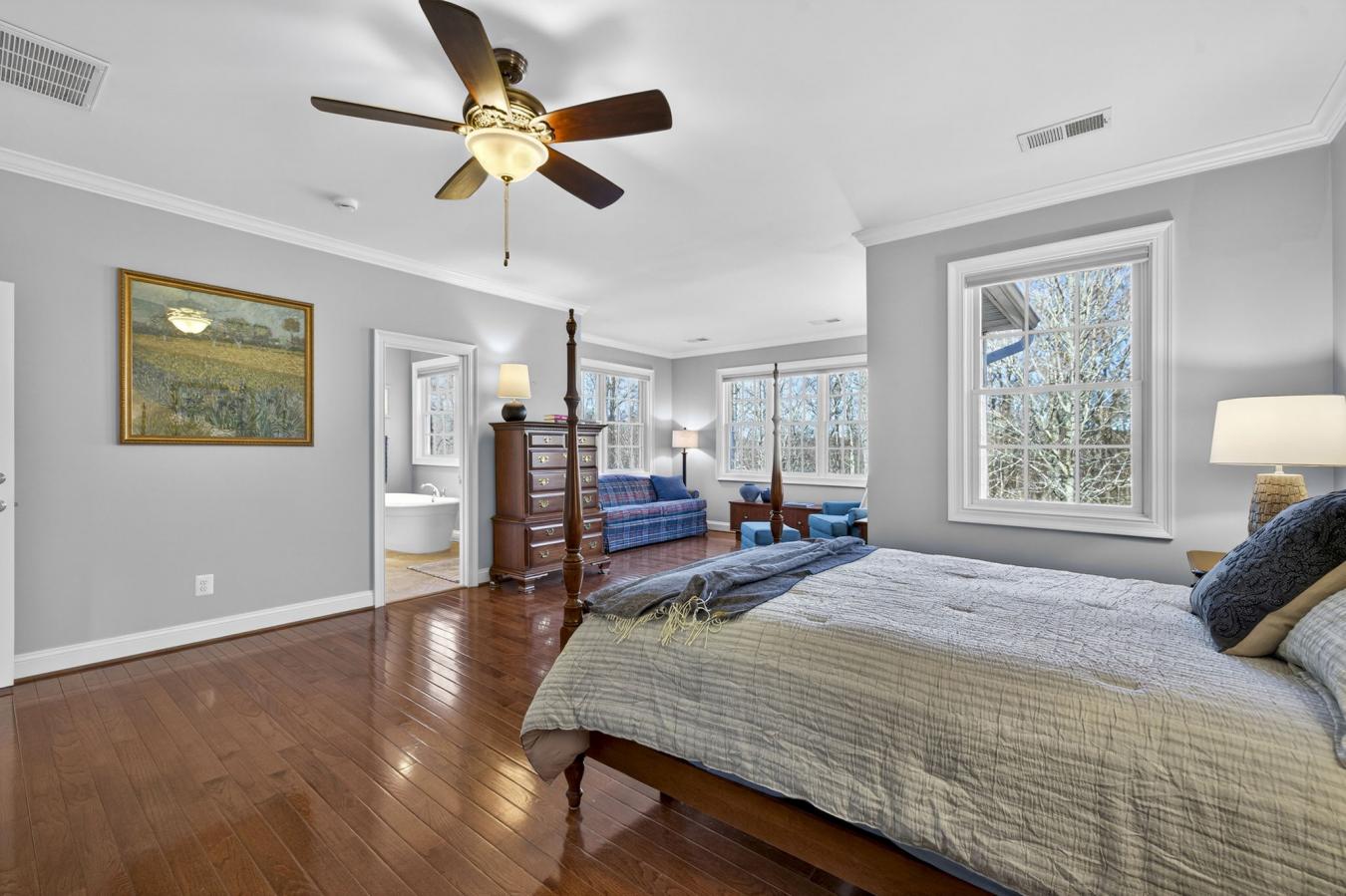 Discover an exquisite residence that embodies luxury and sophistication, nestled on a sprawling 2-acre lot, offering unparalleled privacy and serene views of lush gardens and towering trees. This stunning, like-new masterpiece, built in 2021, boasts 6 spacious bedrooms and 7.5 bathrooms, meticulously designed for both comfort and elegance. Step inside to find an inviting grand foyer, leading to an open floor plan that seamlessly connects the gourmet kitchen and family room. The kitchen is a culinary dream, featuring upgraded countertops, a large island, and top-of-the-line stainless steel appliances, including double wall ovens, double dishwashers, a gas cooktop and a custom pantry that includes a warming drawer. Enjoy quick snack in the breakfast nook, casual meals in the dining area or host lavish dinners in the formal dining room. Retreat to the primary suite, complete with a luxurious spa-like ensuite bath, with a soaking tub located in the walk-in shower plus a custom walk-in dressing room, while additional bedrooms offer en-suite baths for ultimate convenience. The home is enhanced by a cozy propane fireplace, automated blinds, hardwood floors, whole house audio, three wet/dry bars, perfect for entertaining and a whole house battery backup system so you are never out of power. Outside, indulge in the tranquility of your private oasis with beautifully landscaped grounds, a back deck and stone patio with fire pit plus a rooftop deck that invites you to unwind under the stars. The attached side-entry garage features an two electric vehicle charging stations, ensuring modern convenience. This exceptional property is not just a home; its a lifestyle of luxury, comfort, and exclusivity. Experience the perfect blend of elegance and functionality in this remarkable residence.