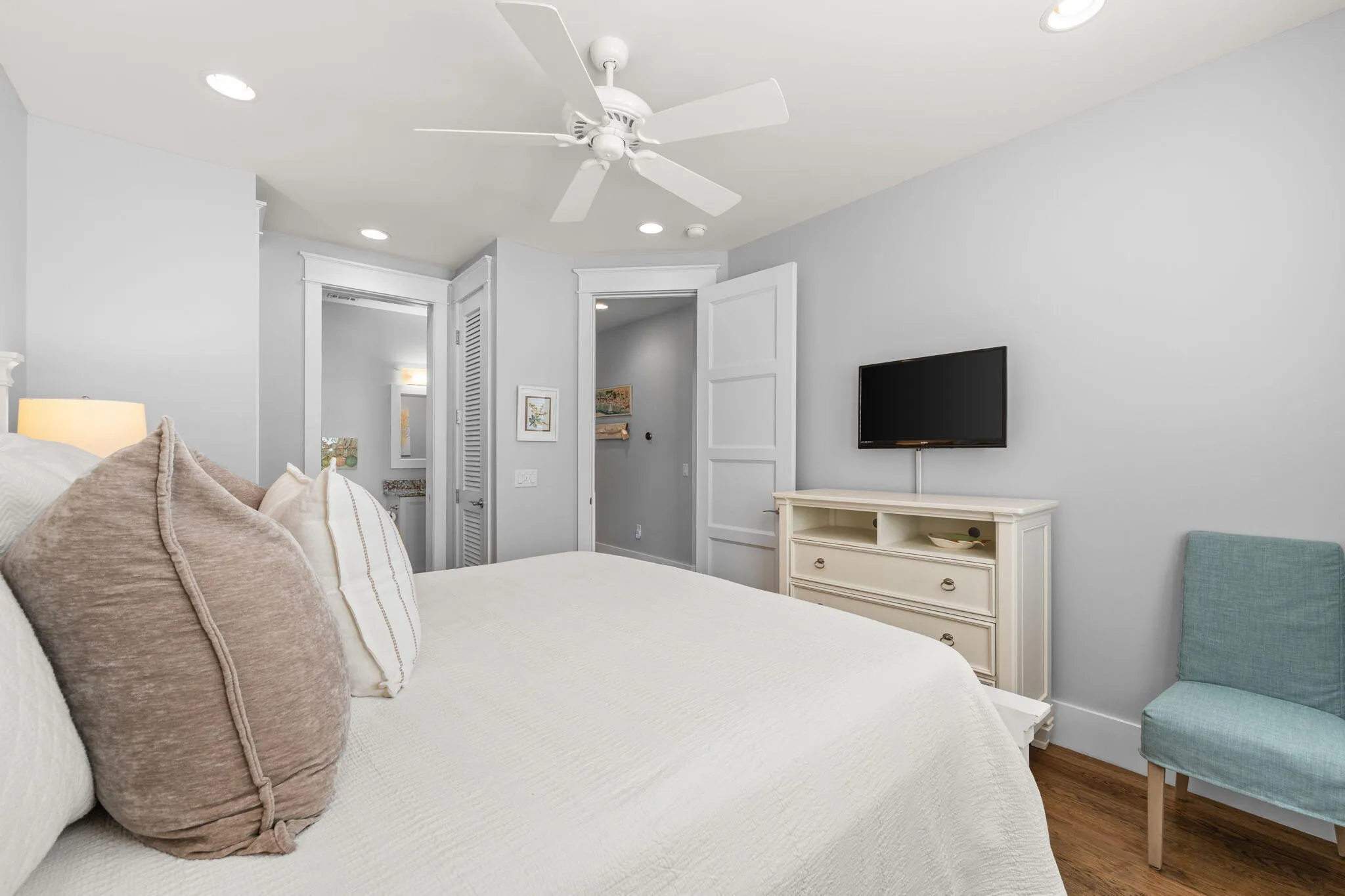 Positioned on a coveted corner homesite in Phase 2 of WaterColor, just moments from Camp WaterColor, this private residence backs to a serene preserve and pond, offering a rare opportunity to own a WaterColor home with room for a large private pool, a feature increasingly difficult to find. A highly desirable first-floor primary suite and over 1,200 square feet of covered screened porch space create seamless indoor-outdoor living, perfectly suited to the WaterColor lifestyle. Designed by Geoff Chick, & Associates the home blends timeless coastal architecture with a functional, open-concept layout. The chefs kitchen features a premium Thermador appliance package, quartz countertops, and a marble backsplash, ideal for both entertaining and everyday living. All four bedrooms are ensuite, complemented by an additional powder room, while the first level primary suite offers both convenience and privacy. A meticulously maintained nonrental, the home presents in exceptional, like-new condition. The corner homesite with only one adjacent neighbor enhances privacy, while the backyard offers a rare opportunity to create a custom pool and outdoor retreat without compromising peaceful preserve and pond views. For buyers seeking both lifestyle and investment, the property offers strong rental potential, with its Phase 2 location near Camp WaterColor, functional layout, and indoor-outdoor living well-suited for short-term rental income. Complete with a two-car garage--ideal for golf cart storage, beach gear, and everyday convenience the home balances lifestyle and functionality in one of WaterColors most sought-after settings. A rare opportunity to own a design-forward home in WaterColor, Florida--where privacy, location, and long-term value align.