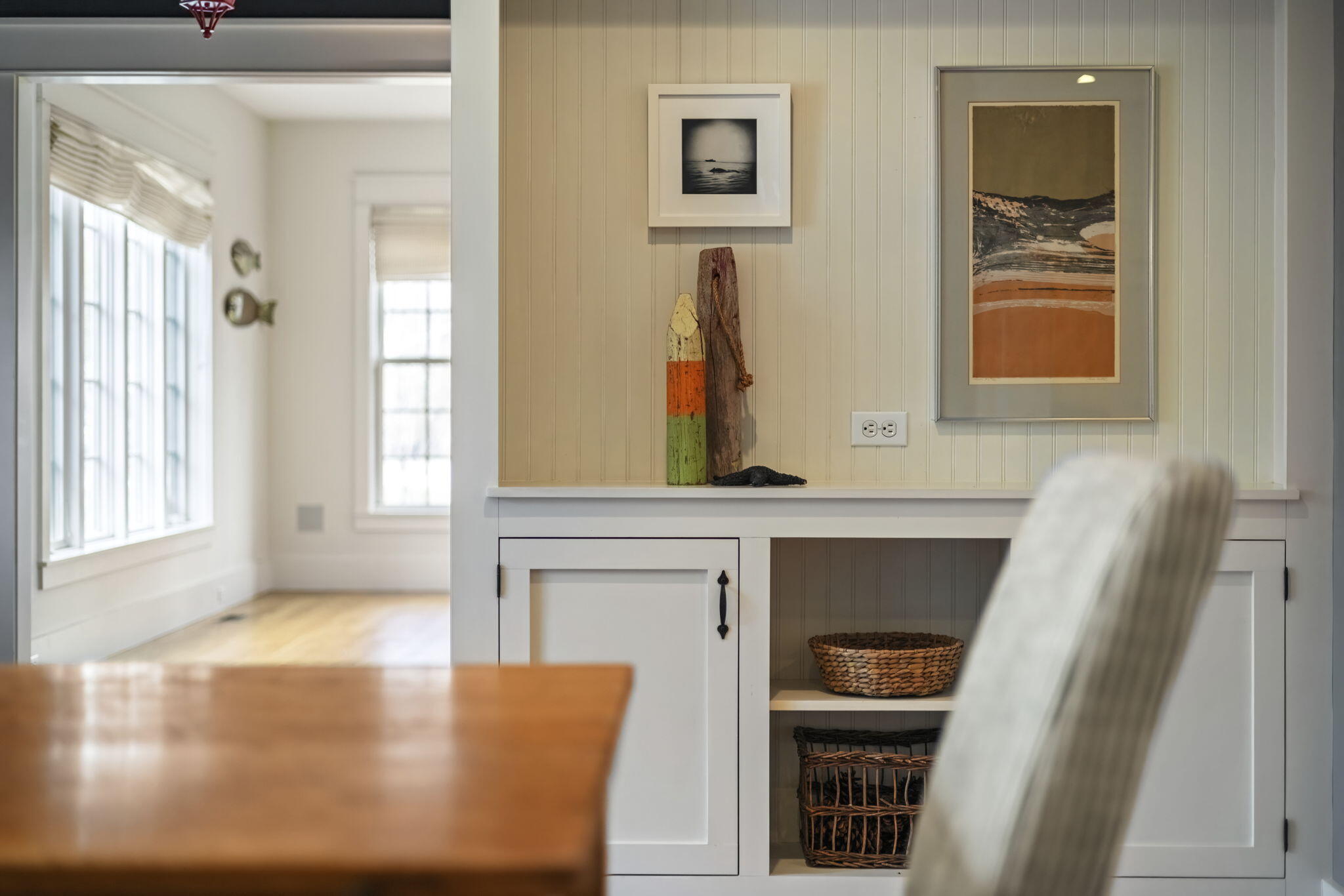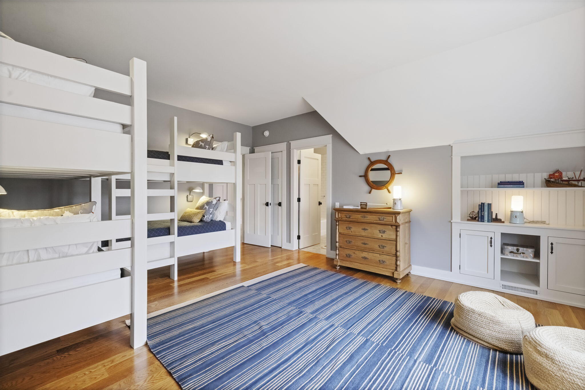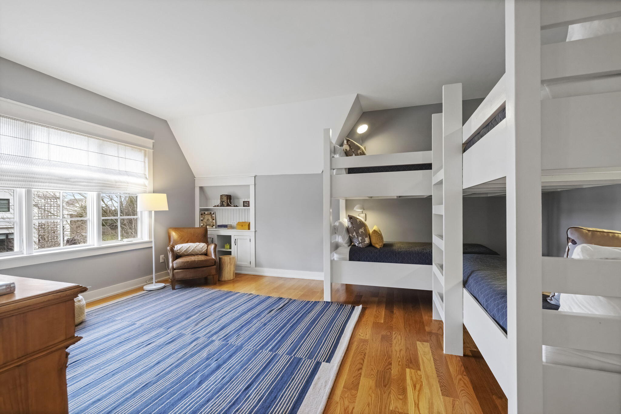 Located off Marquette Drive in the coveted Riviera neighborhood, sits a beautiful Nantucket shingle-style home, ready for your Michigan memories. The heart of the home is a custom central kitchen, designed for gathering and entertaining, featuring Wood-Mode Brookhaven cabinetry, Wolf range, Sub-Zero refrigerator, Bosch appliances, and a wine cooler. A generous center island and southern-facing windows overlook the serene backyard, offering space and sunlight. Built-in vintage cabinetry, custom millwork, wainscoting, and white oak flooring throughout, elevate every space with quiet sophistication.Multiple living areas invite year-round enjoyment, anchored by three fireplaces in the living room, family room, and the show-stopping three-season screened porch overlooking the pool--a favorite space for dining, relaxing, and enjoying peaceful backyard views.