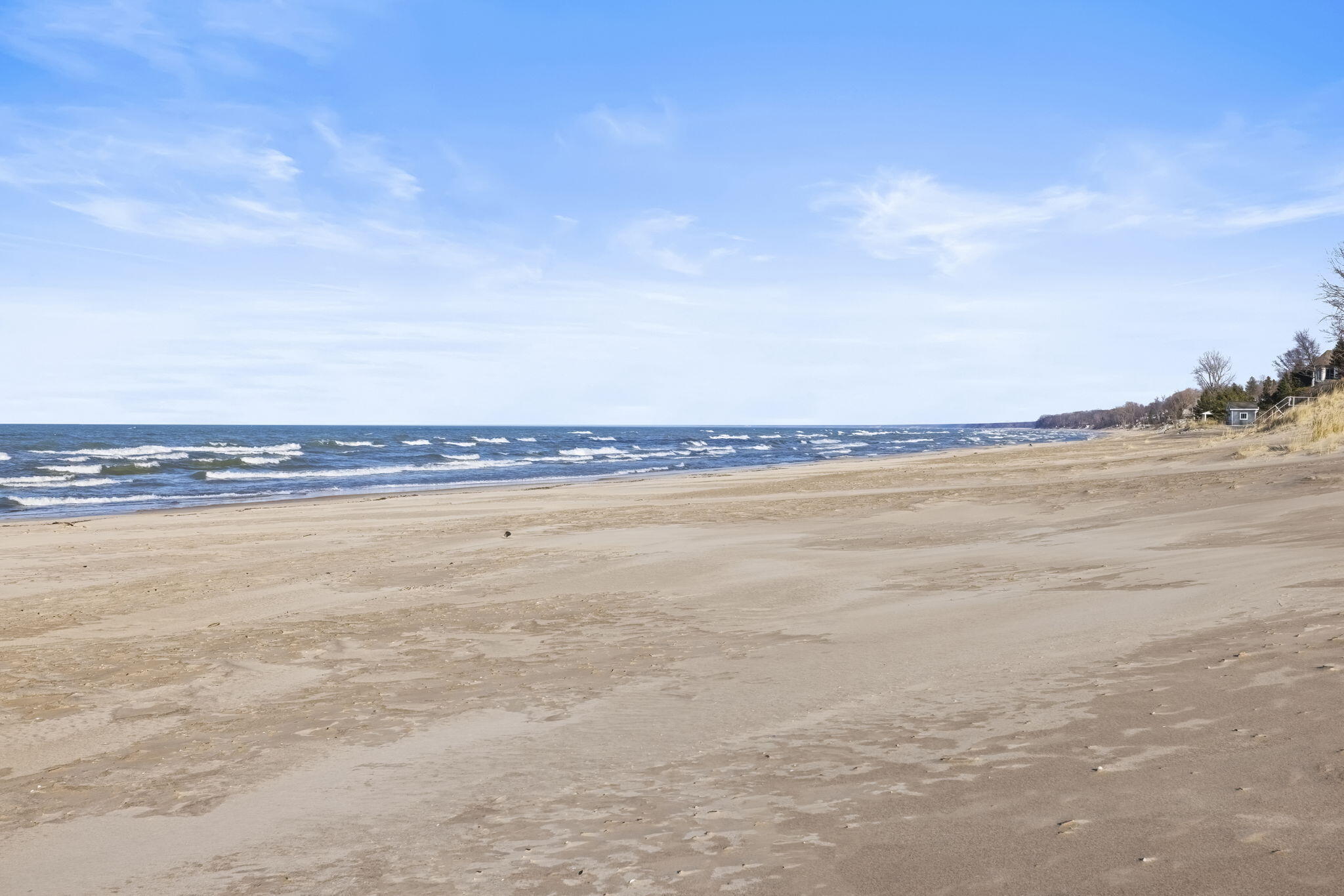 Located off Marquette Drive in the coveted Riviera neighborhood, sits a beautiful Nantucket shingle-style home, ready for your Michigan memories. The heart of the home is a custom central kitchen, designed for gathering and entertaining, featuring Wood-Mode Brookhaven cabinetry, Wolf range, Sub-Zero refrigerator, Bosch appliances, and a wine cooler.