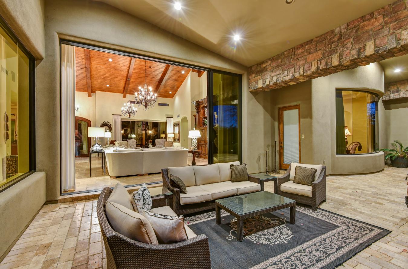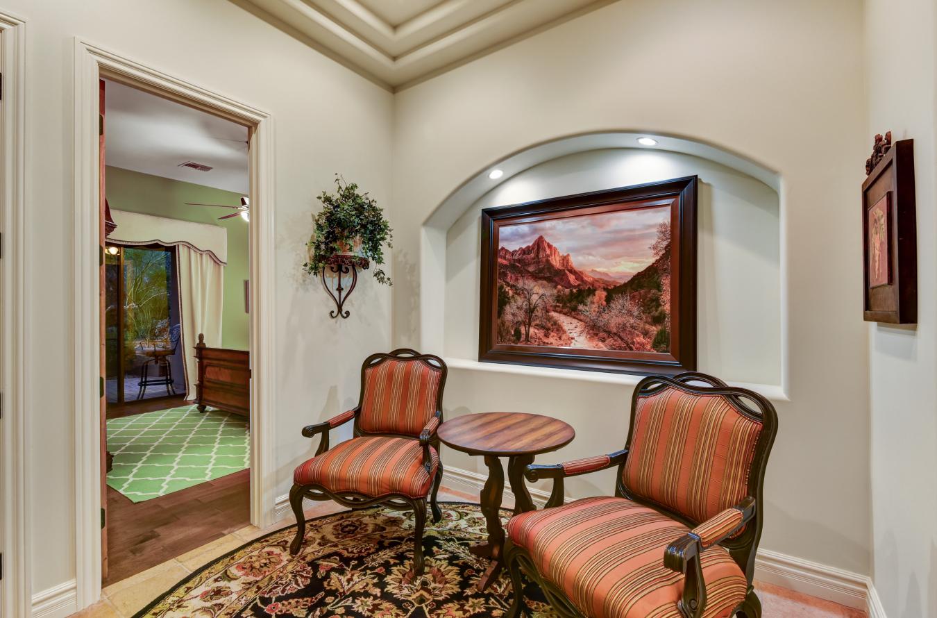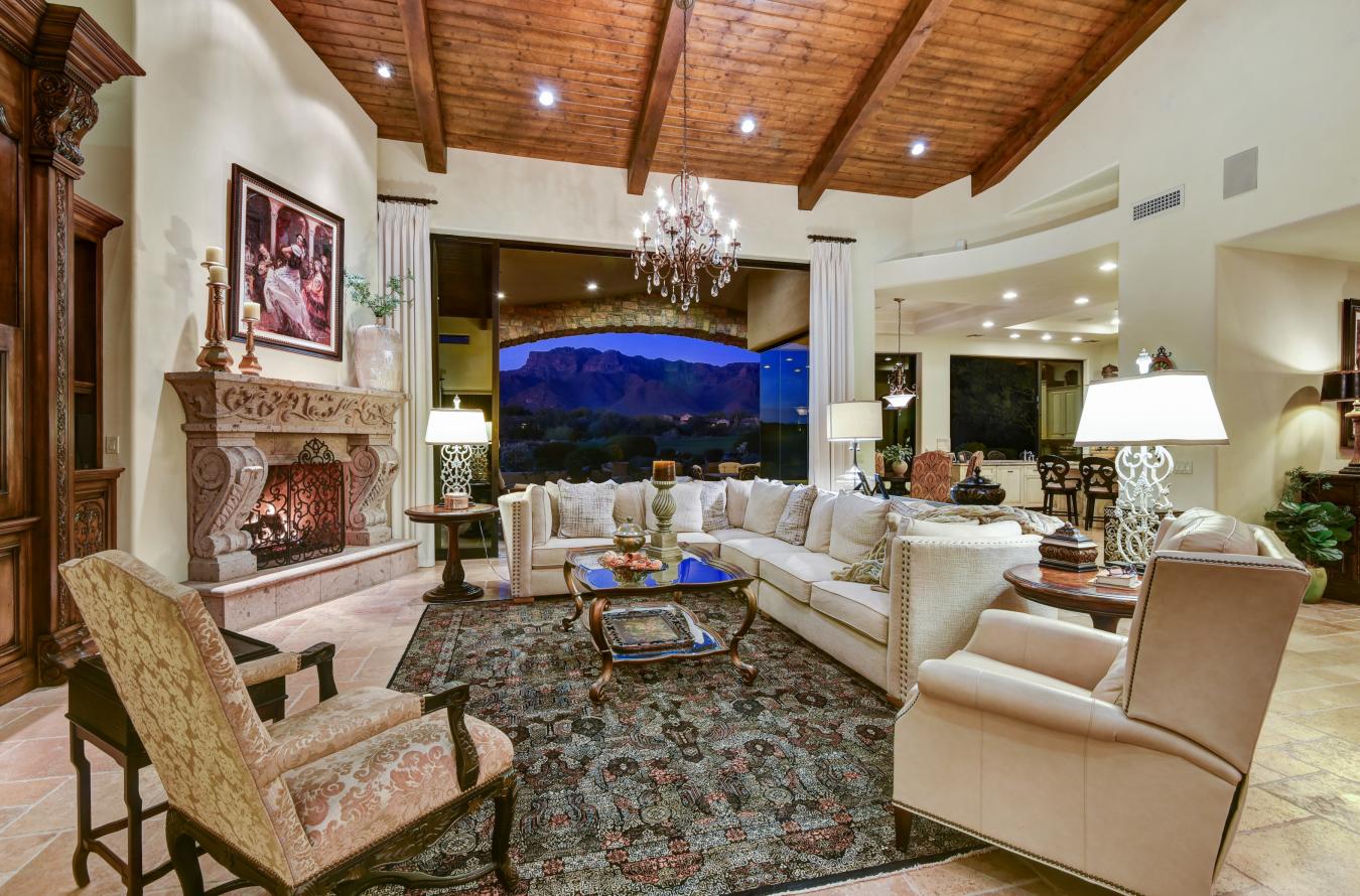 Experience luxury desert living in this stunning Cactus Corridor estate, ideally situated on a premium corner lot with mountain views and a large circular drive. This spacious home features a split open floor plan with 5 bedrooms, 4.5 bathrooms, and an additional bonus room-perfect for flexible living. Vaulted ceilings and expansive windows welcome you with abundant natural light and picturesque views of the resort-style backyard. The large designer kitchen opens seamlessly to the family room, creating an inviting space ideal for gatherings and everyday living. Step outside to your private retreat, complete with a sport court, putting green, sparkling heated pool, and hot tub-designed for relaxation and entertainment. No HOA