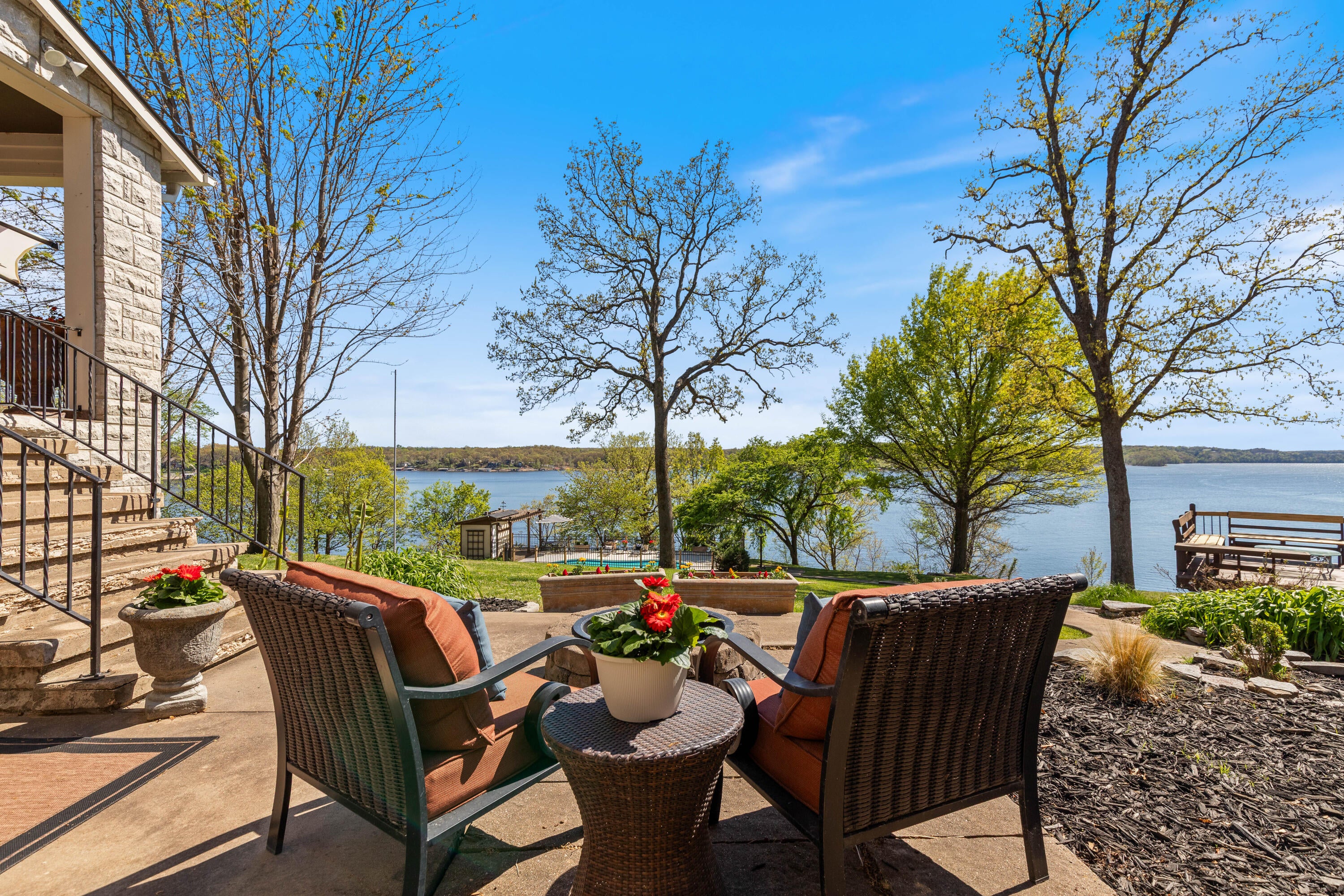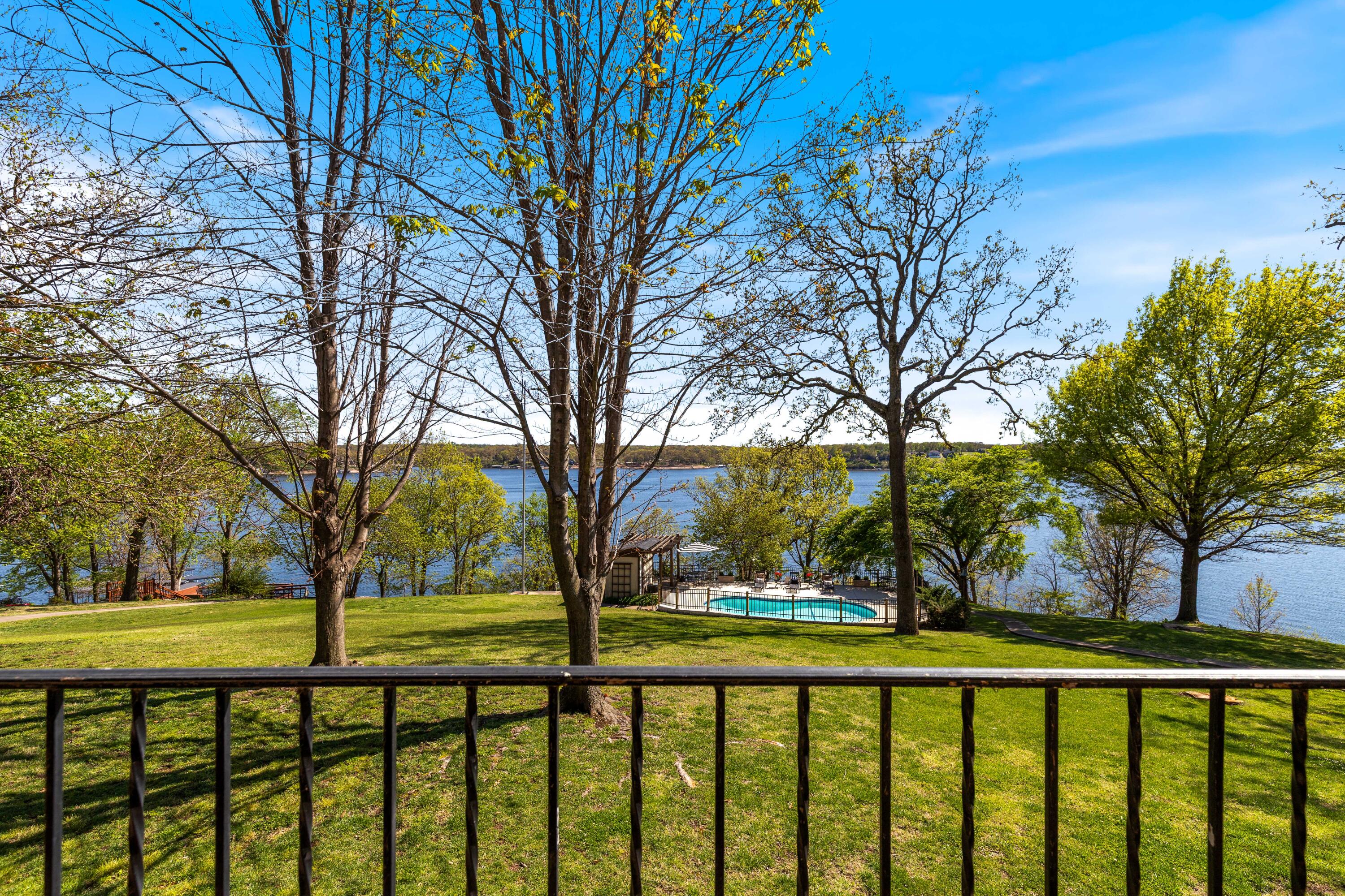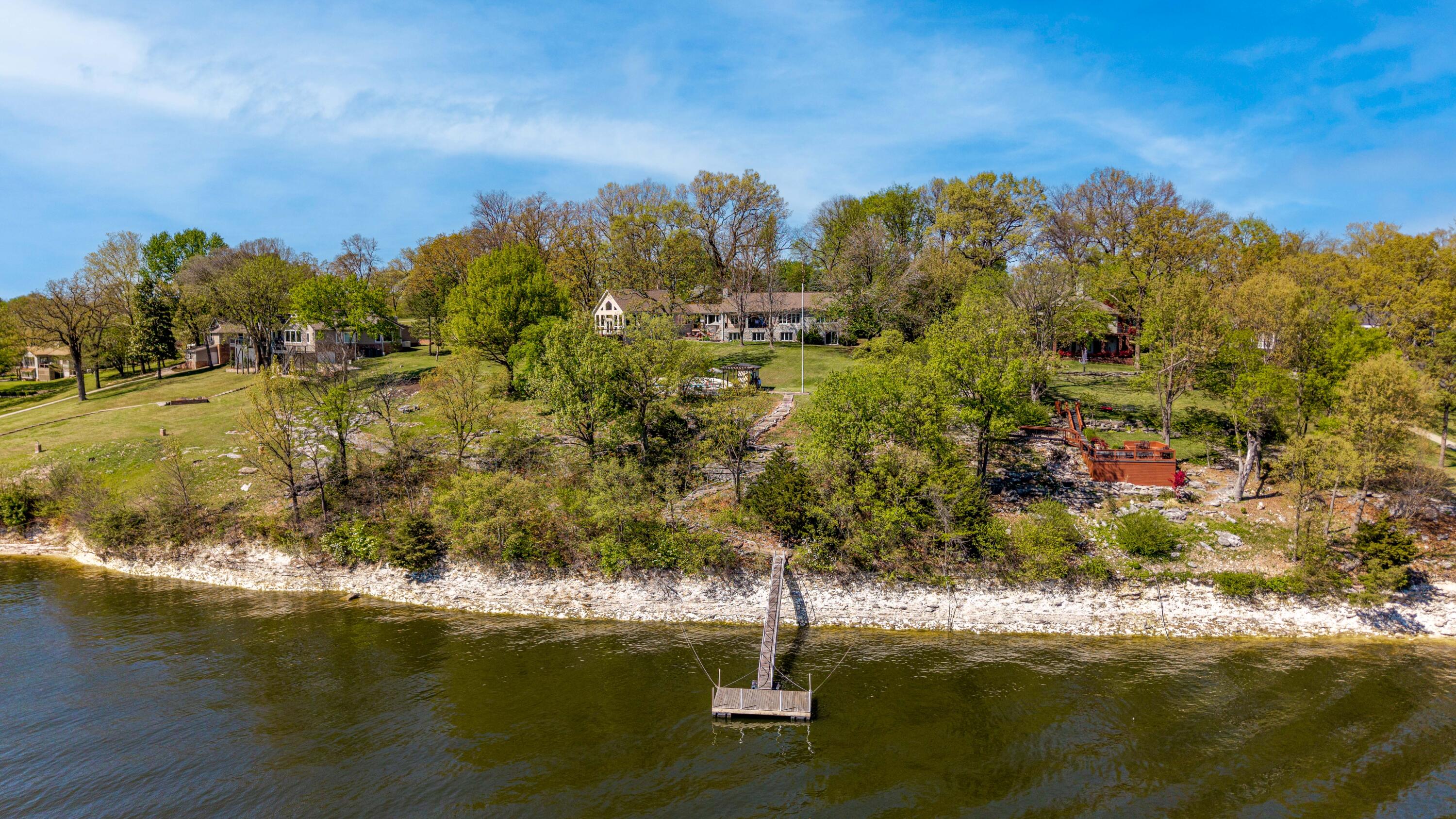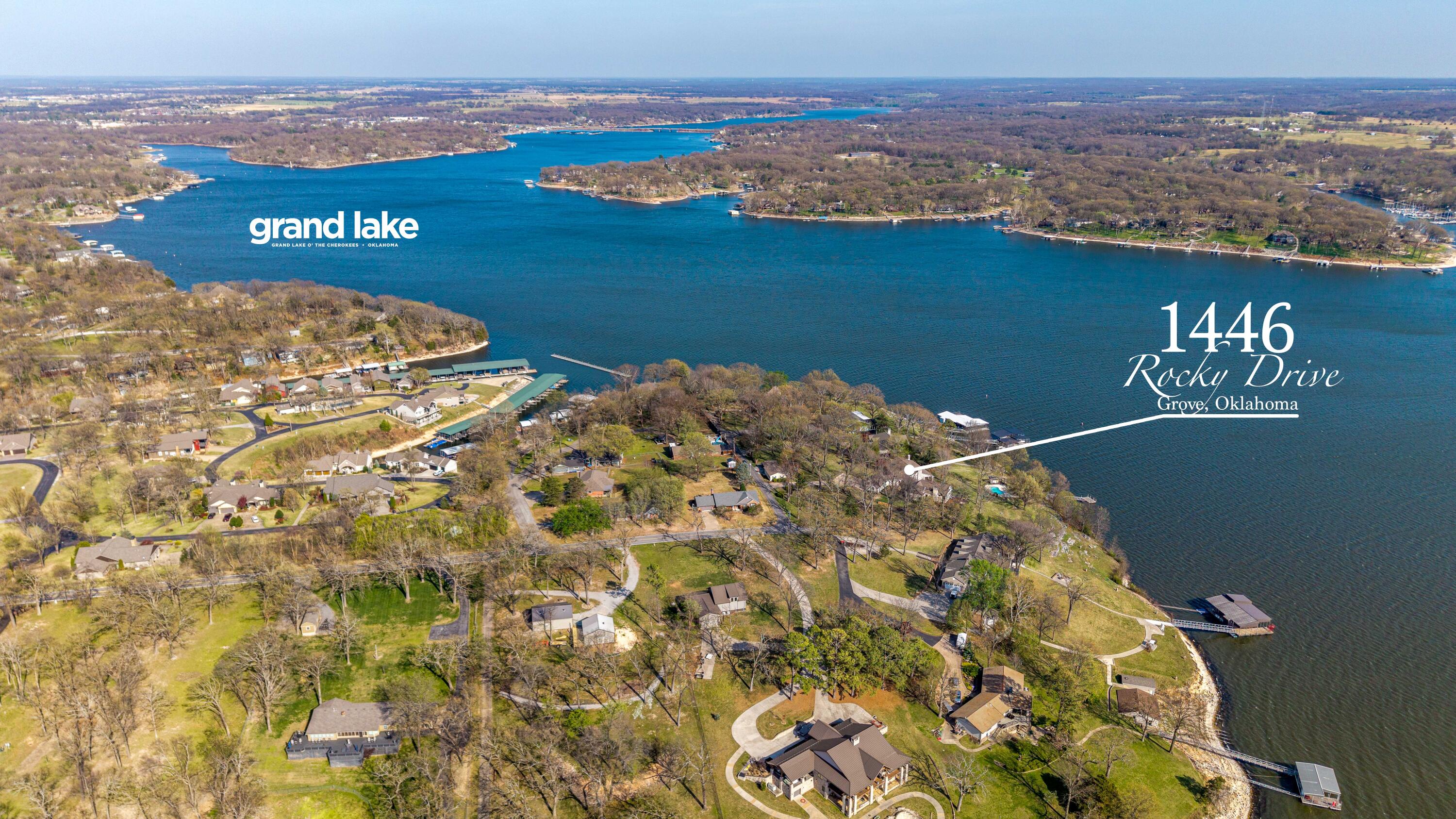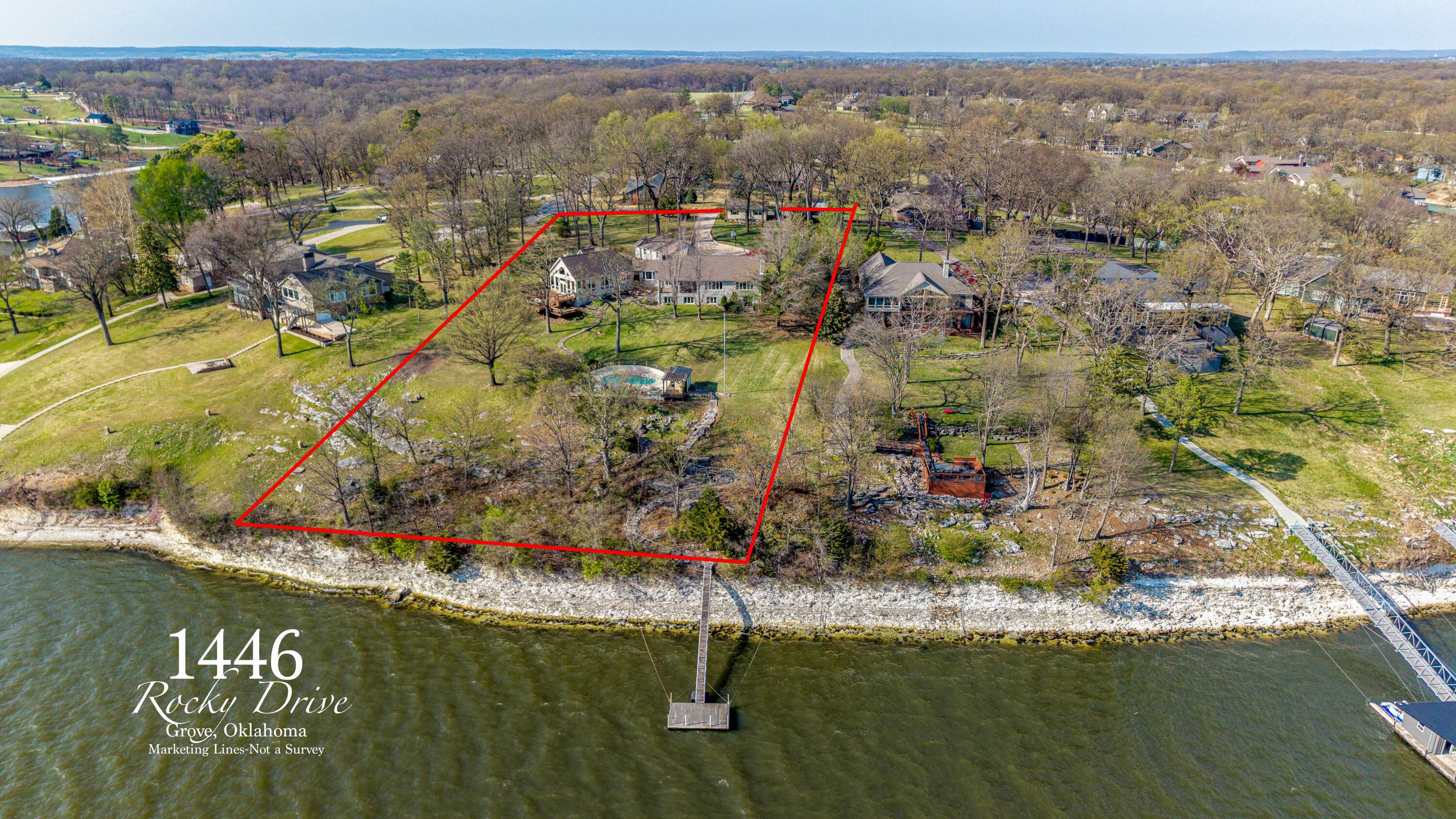 EXCEPTIONAL LAKEFRONT ESTATE on the Honey Creek arm of Grand Lake, offering premier setting, privacy, and resort-style living in Grove, Ok. Situated on 2.3 acres with 227 feet of shoreline,. This stunning 7,500 sq ft walkout style home features a charming natural stone exterior, 5 bedrooms, 6 baths, multiple living areas, media room, and wine room. The newly added Great Room opens to a spacious wood deck with sweeping lake views, complemented by a gourmet kitchen designed for entertaining. Outdoor amenities include an inground pool and private day dock. A 680 sq ft guest house offers 2 bedrooms, 1 bath, and a 2-car carport--perfect for guests. Two additional flex rooms, perfect for providing endless possibilities, whether used as a home office, fitness space, or playroom. Walls of windows capture sweeping lake views, while outdoor living takes center stage with a resort-style pool overlooking the water--ideal for relaxing or hosting unforgettable gatherings.Guests will feel right at home in the charming 2-bedroom, 1-bath guest house, offering comfort and privacy for extended stays.With deep water access in one of Honey Creeks most sought-after locations, this estate is a rare opportunity to own a true lakefront retreat where luxury meets lifestyle.