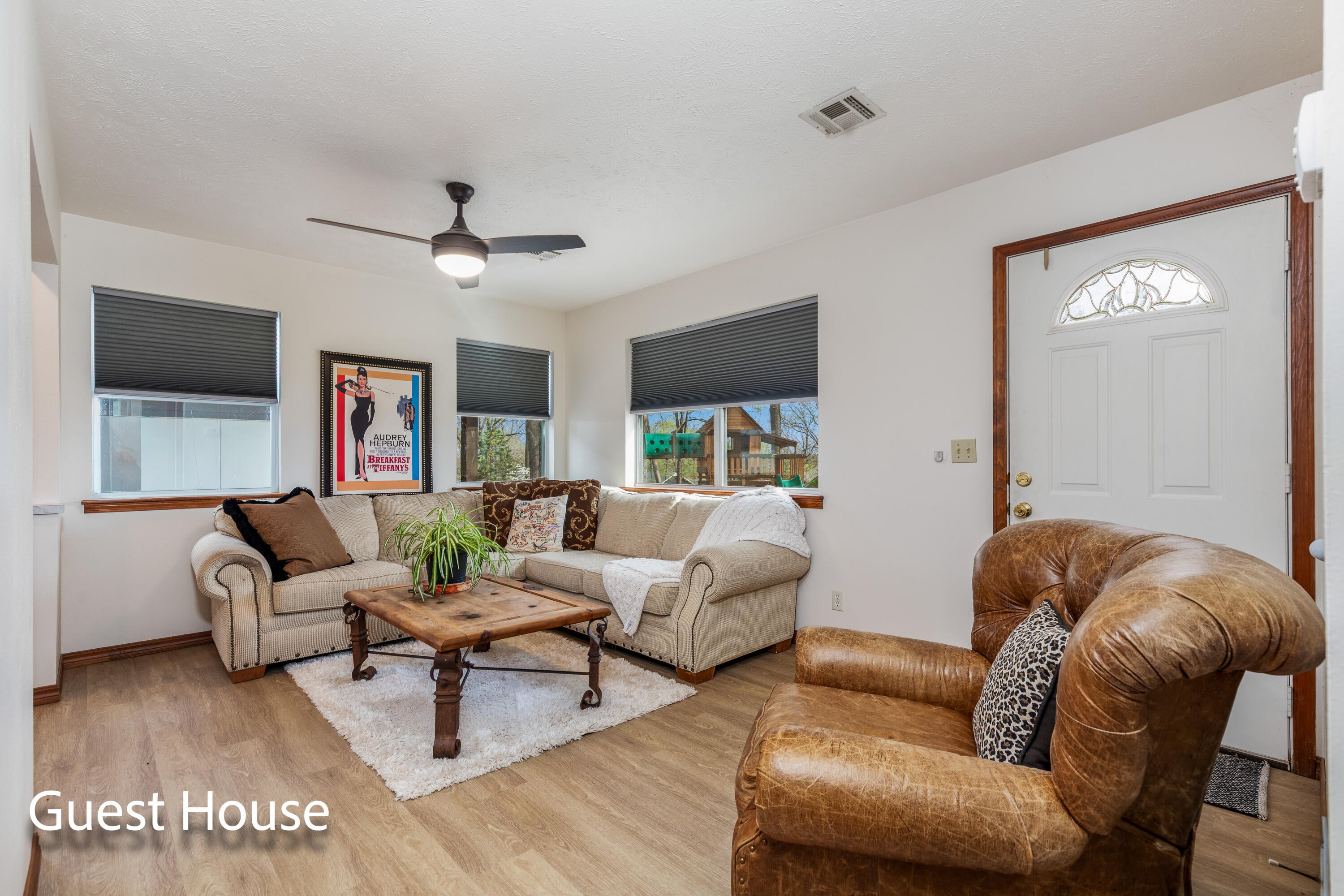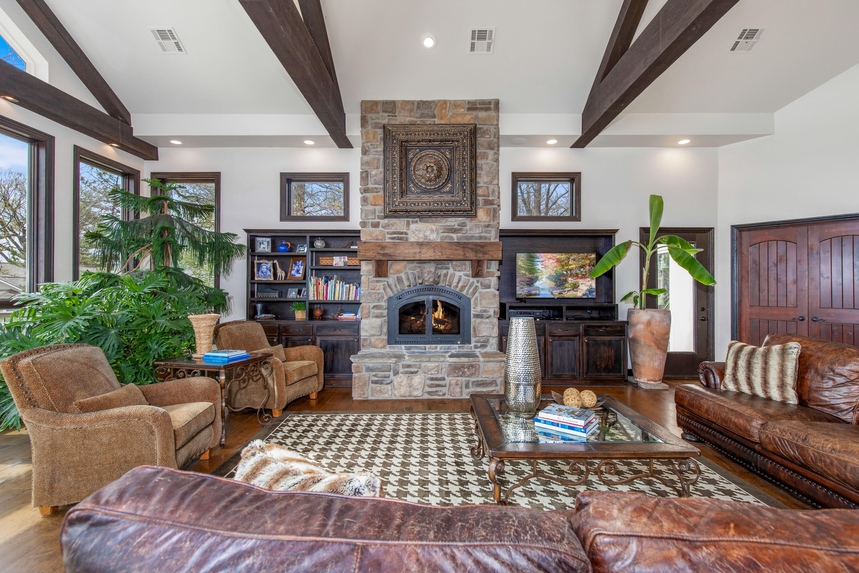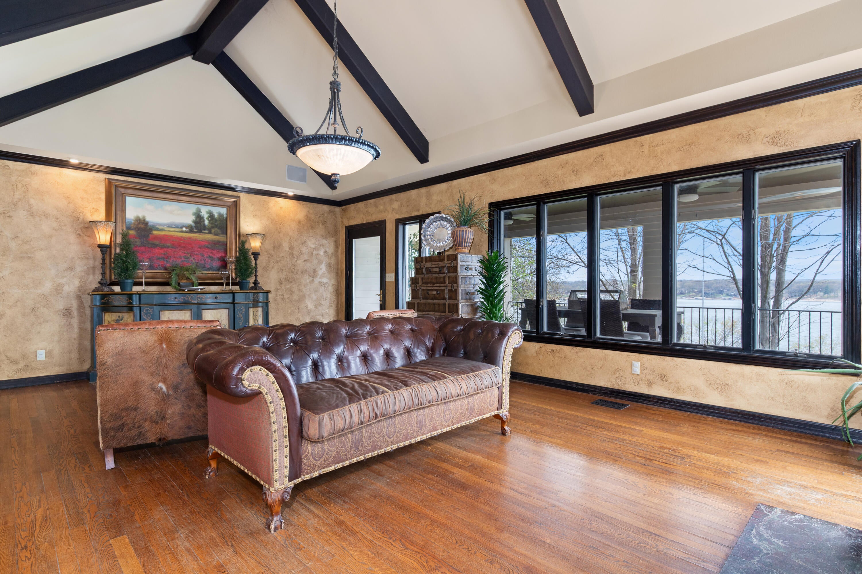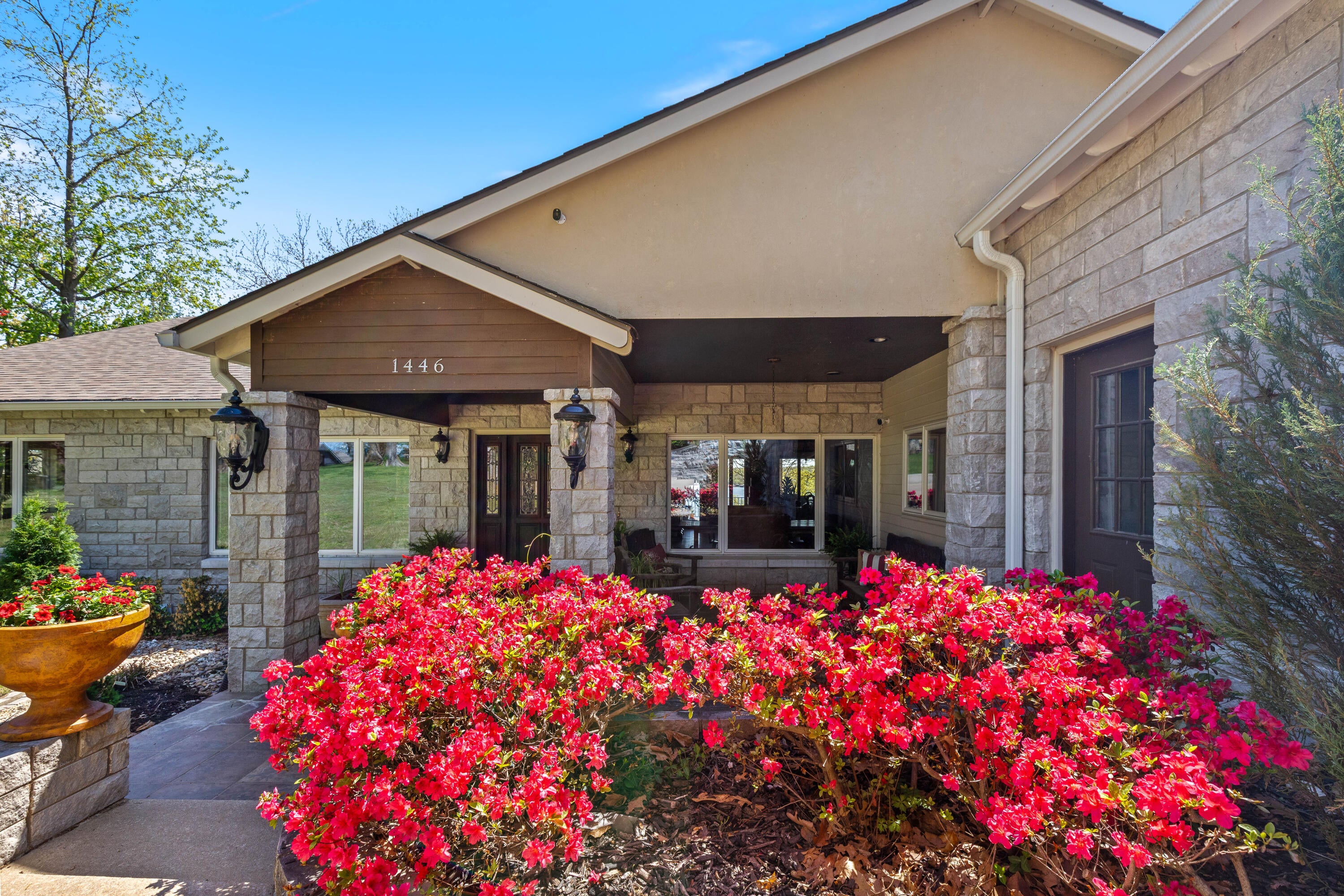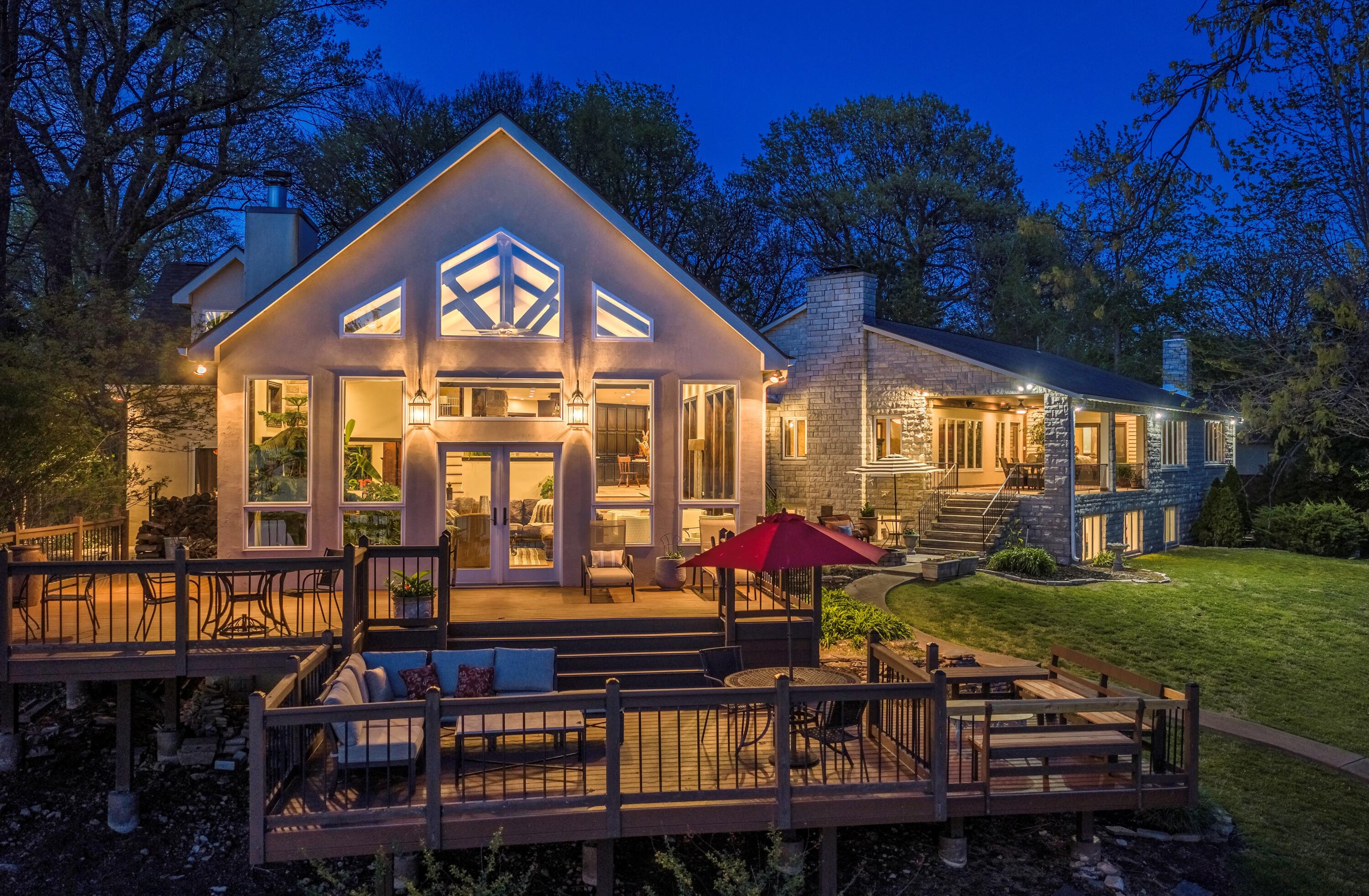 EXCEPTIONAL LAKEFRONT ESTATE on the Honey Creek arm of Grand Lake, offering premier setting, privacy, and resort-style living in Grove, Ok. Situated on 2.3 acres with 227 feet of shoreline,. This stunning 7,500 sq ft walkout style home features a charming natural stone exterior, 5 bedrooms, 6 baths, multiple living areas, media room, and wine room. The newly added Great Room opens to a spacious wood deck with sweeping lake views, complemented by a gourmet kitchen designed for entertaining. Outdoor amenities include an inground pool and private day dock. A 680 sq ft guest house offers 2 bedrooms, 1 bath, and a 2-car carport--perfect for guests. Two additional flex rooms, perfect for providing endless possibilities, whether used as a home office, fitness space, or playroom. Walls of windows capture sweeping lake views, while outdoor living takes center stage with a resort-style pool overlooking the water--ideal for relaxing or hosting unforgettable gatherings.Guests will feel right at home in the charming 2-bedroom, 1-bath guest house, offering comfort and privacy for extended stays.With deep water access in one of Honey Creeks most sought-after locations, this estate is a rare opportunity to own a true lakefront retreat where luxury meets lifestyle.
