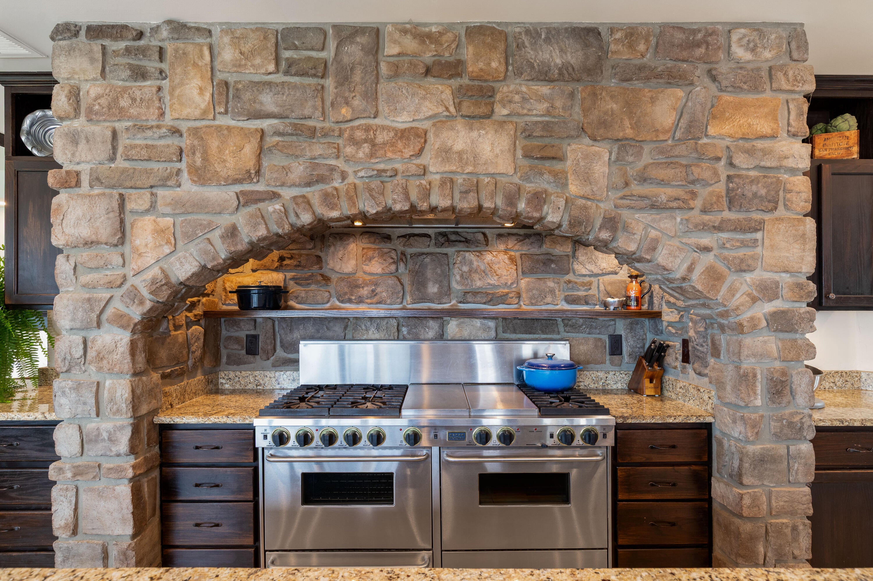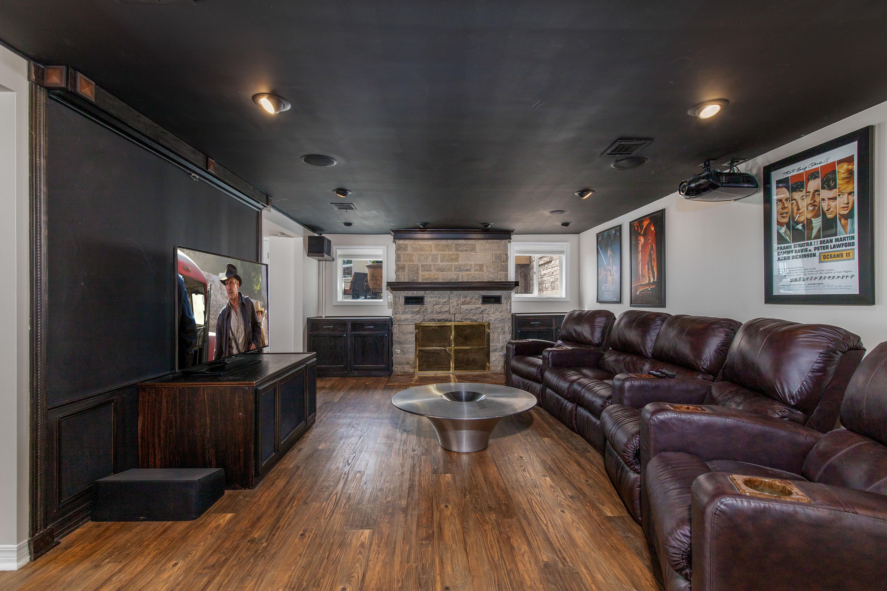Located within the coveted gated community of Vista Estancia, this beautifully renovated contemporary estate offers the perfect blend of luxury living and resort style outdoor amenities. The home features five bedrooms, four and a half bathrooms, a detached casita, and a spacious four car garage. A gated courtyard entry welcomes you with a stately stone fountain before leading into a sophisticated interior highlighted by Restoration Hardware lighting, a dramatic water vapor fireplace, and expansive living spaces designed for both relaxation and entertaining. The thoughtfully reimagined open concept floor plan centers around a stunning custom kitchen featuring an Aga Mercury gas range, a 66-inch built in refrigerator, and an oversized Black Pearl leathered granite island that anchors the space. Adjacent living areas include a large family room with a custom media wall, a stylish sitting room, and incredible entertainment spaces including a state of the art nine seat movie theater and a dedicated arcade game room. The luxurious primary suite offers a private sitting area and a spa inspired bathroom complete with a freestanding soaking tub. Expansive sixteen-foot sliding glass doors create seamless indoor and outdoor living and open to an exceptional backyard retreat. Designed for entertaining and recreation, the resort style grounds include a pool with spa and baja step, five hole putting green, bocce ball court, built in barbecue, lush orchard landscaping, and a custom fully enclosed dog run. The detached casita with a full bathroom provides ideal accommodations for guests, a private office, or a separate workspace.