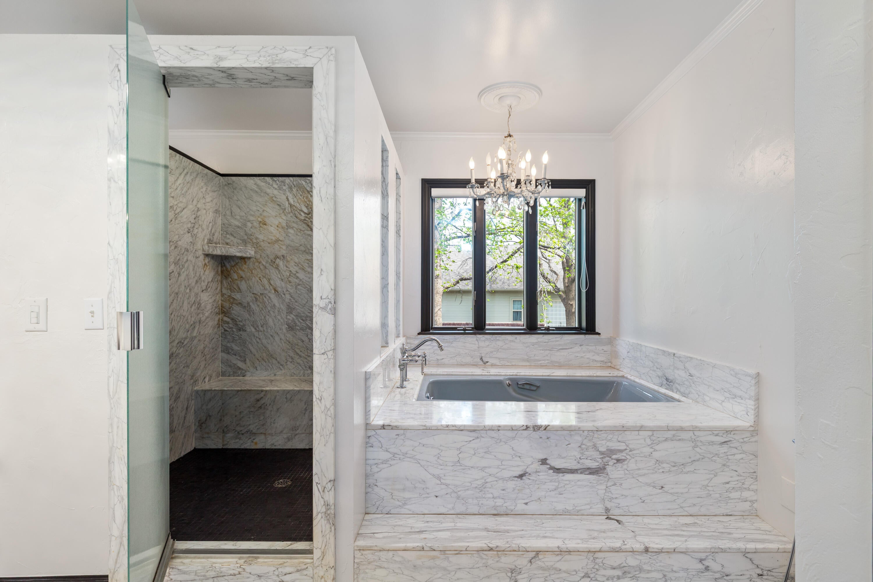 Spectacular contemporary masterpiece in the gated enclave of McDonald Estates! The climate-controlled 7-car capacity garage with 5 bays, 2 car lifts, and epoxy flooring will entice any car enthusiast, and a circular drive ensures plenty of parking.