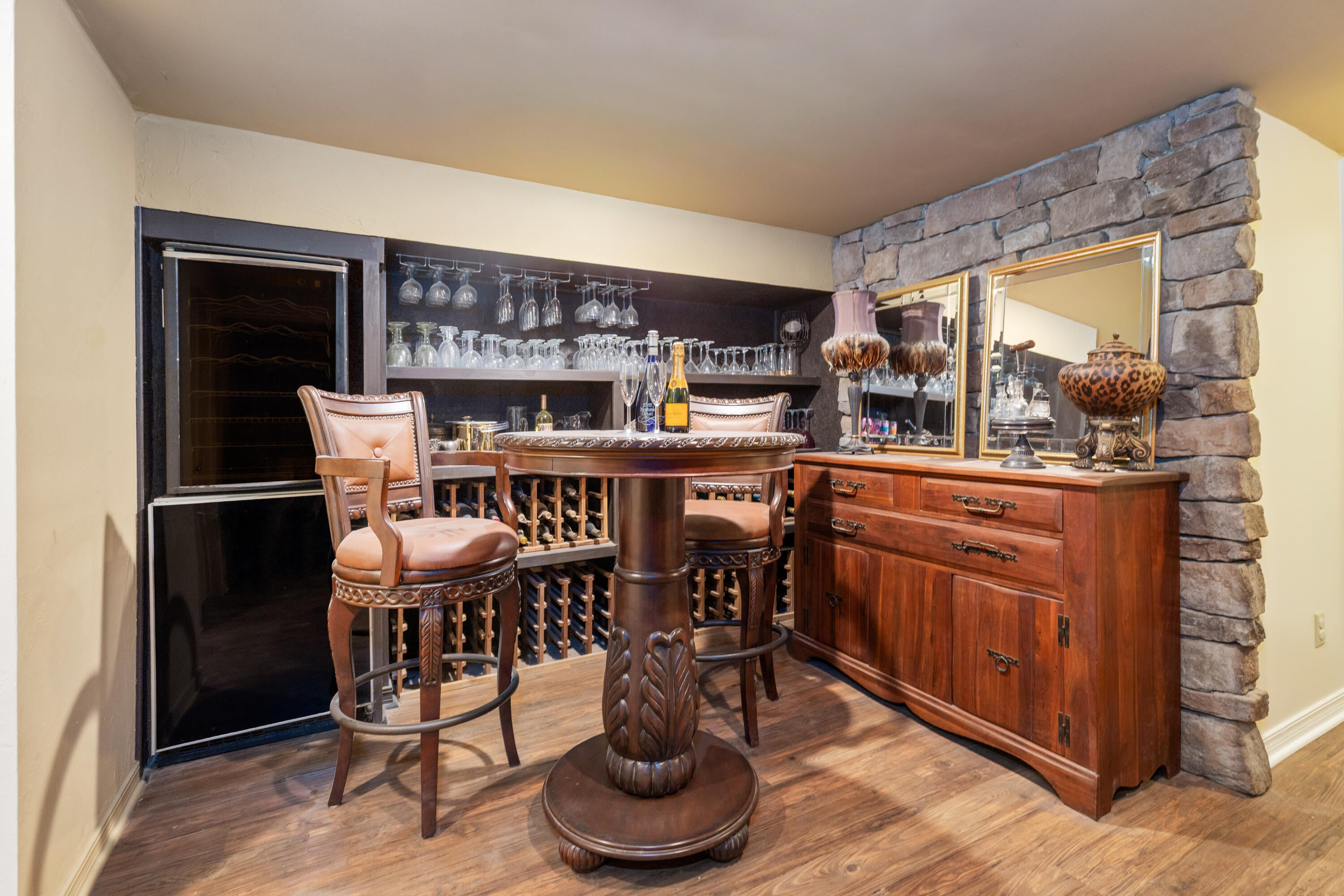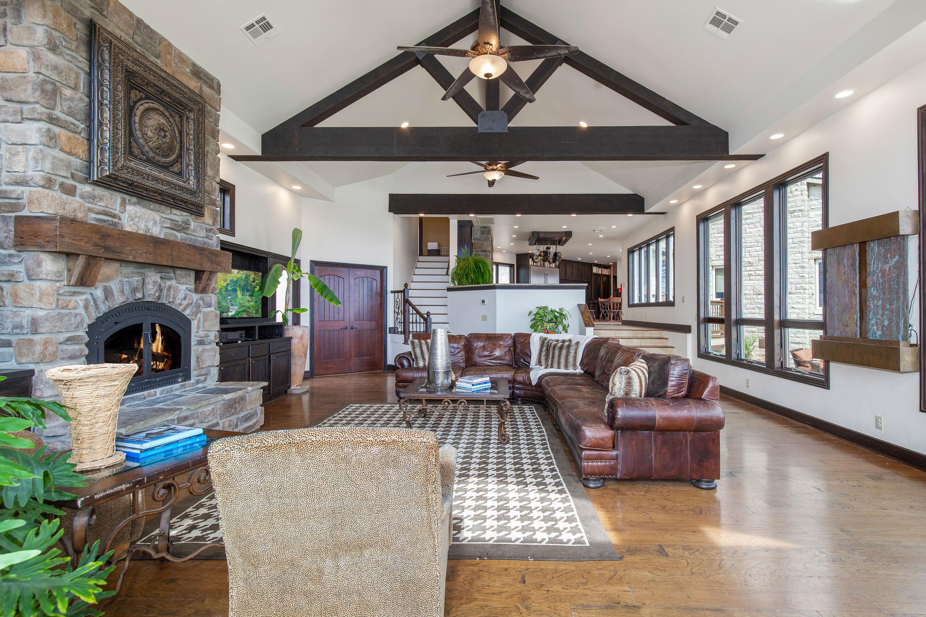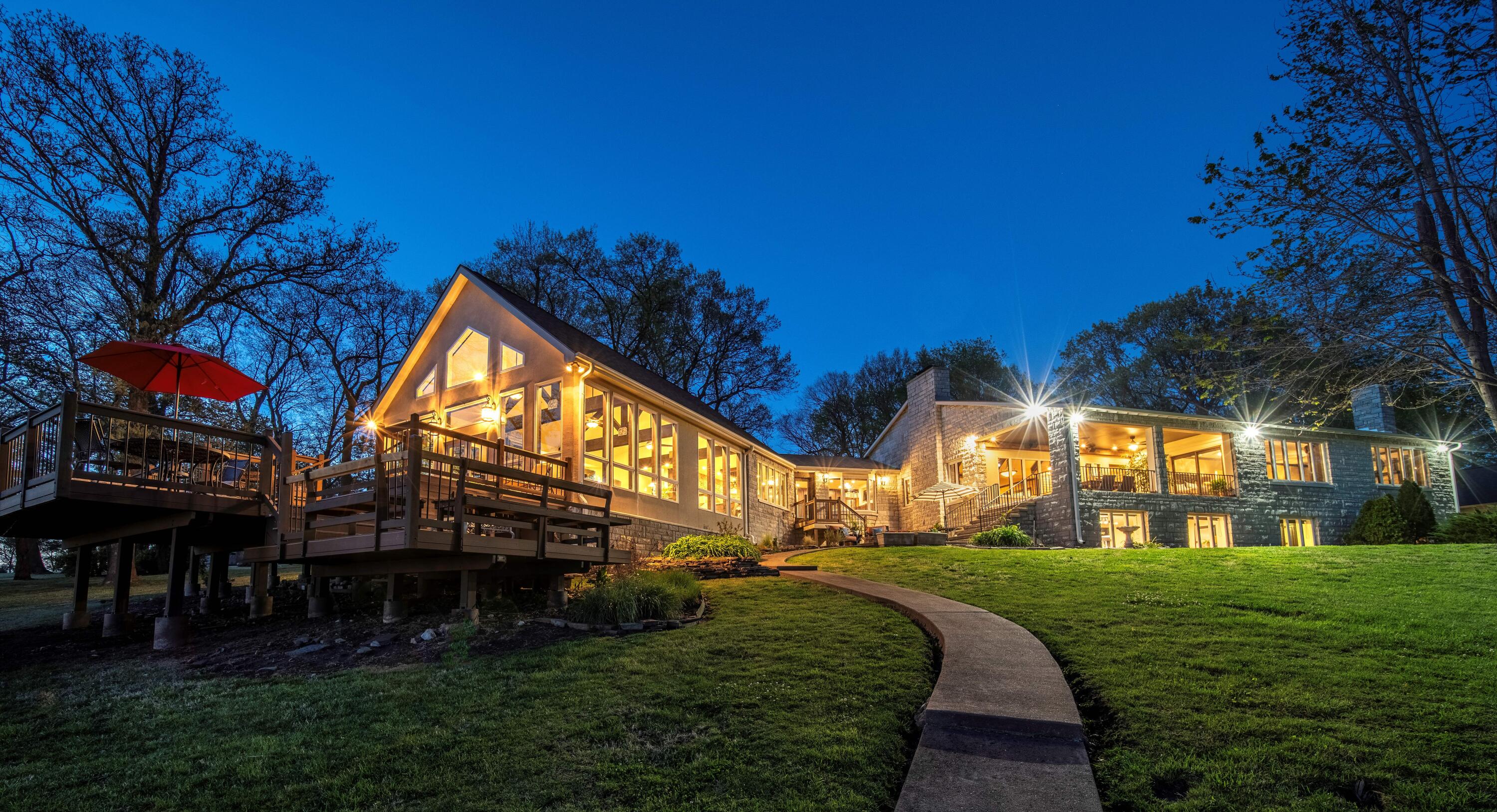 EXCEPTIONAL LAKEFRONT ESTATE on the Honey Creek arm of Grand Lake, offering premier setting, privacy, and resort-style living in Grove, Ok. Situated on 2.3 acres with 227 feet of shoreline,. This stunning 7,500 sq ft walkout style home features a charming natural stone exterior, 5 bedrooms, 6 baths, multiple living areas, media room, and wine room.
