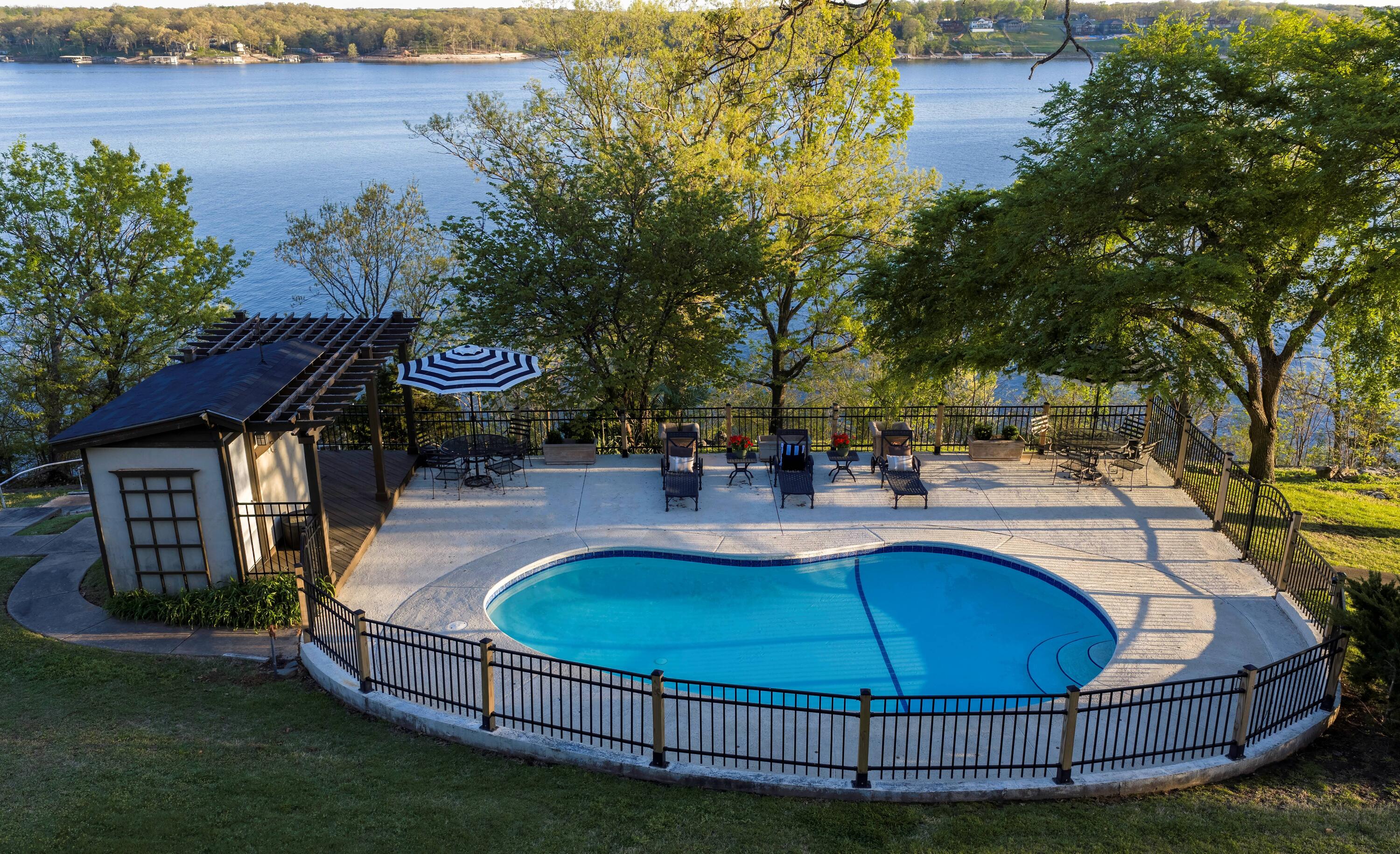 Lakefront, a large dock envelope, deep water, cove protection, and a rare compound-style layout designed for both everyday living and unforgettable entertaining this property delivers a truly exceptional lake lifestyle. The completely flat driveway welcomes you in, setting the tone for easy access and effortless living. To the left sits the private main residence, thoughtfully designed to maximize lake views with an abundance of windows that flood the home with natural light. To the right of the main home, a resort-style pool and courtyard create the heart of the property perfect for entertaining, relaxing, or enjoying long summer days by the water. This central gathering space gives the home a true compound feel that is incredibly rare at the lake. Included with the property is an additional on-water lot offering approximately 130 feet of lake frontage, providing dock potential and exceptional flexibility for future waterfront expansion. This property truly has it all views, space, and versatility. Investors this is a rare opportunity and is an absolute must-see. Brand new 2 slip dock available for additional cost OR dock included in a full price contract for the month of March.