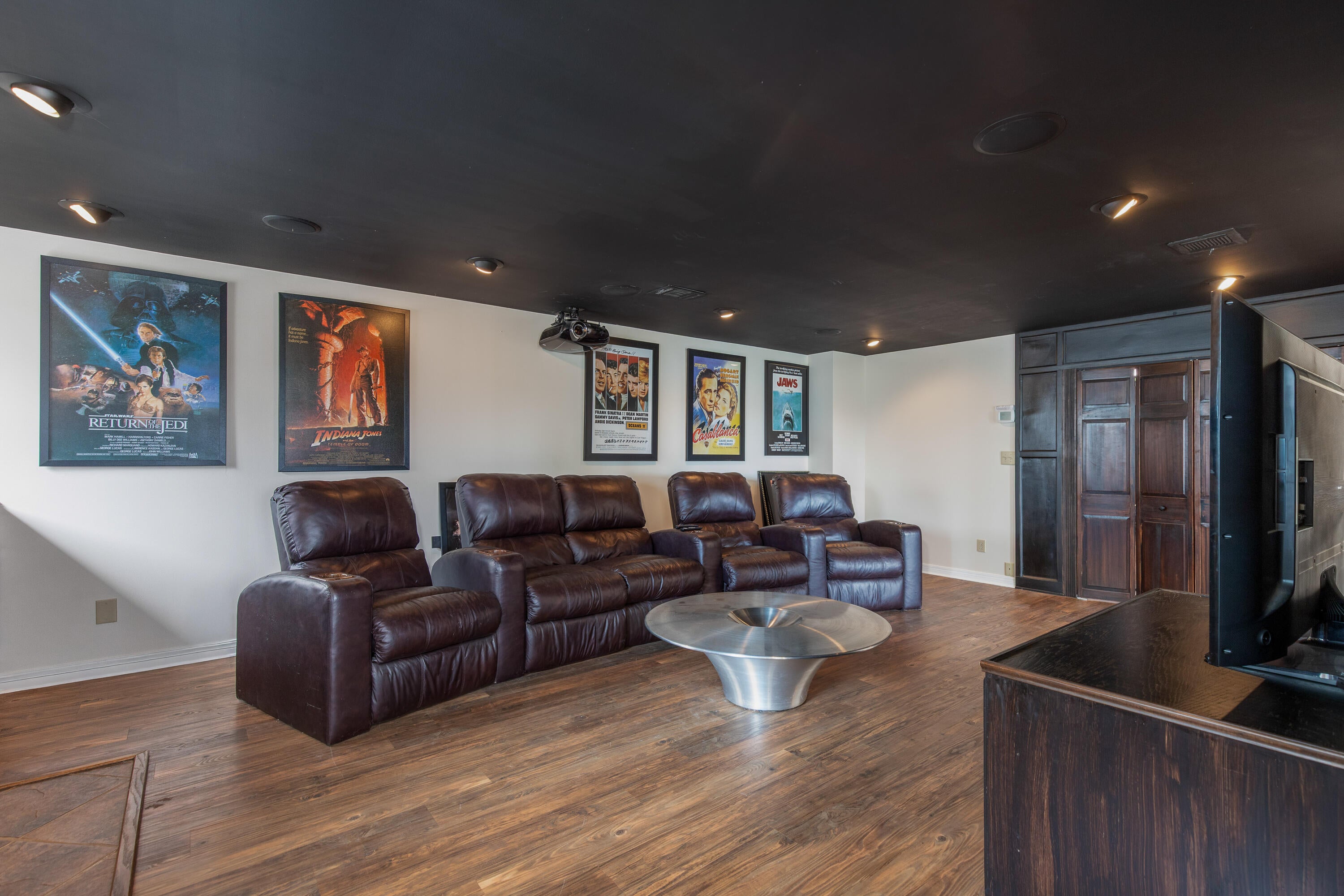 Spectacular contemporary masterpiece in the gated enclave of McDonald Estates! The climate-controlled 7-car capacity garage with 5 bays, 2 car lifts, and epoxy flooring will entice any car enthusiast, and a circular drive ensures plenty of parking. A covered portico leads you to the dramatic entry, where youll find a modern curved staircase, sky-high ceiling heights, enormous windows, a Control4 home automation system, hardwood and tile flooring, incredible light fixtures, and an open-concept space that lives like a 1-story. The sleek island kitchen with breakfast bar, Thermador gas cooktop, dual ovens, built-in fridge, and auxiliary prep space for catering overlooks the family room with floating shelves and views of the private backyard. Home theater with 120" screen and Sony projector, fully equipped gym, private study, owners retreat and 2nd bedroom suite downstairs, two bedrooms up, and backyard oasis featuring a stunning pool, spa, and outdoor kitchen with a canopy of trees as the backdrop.