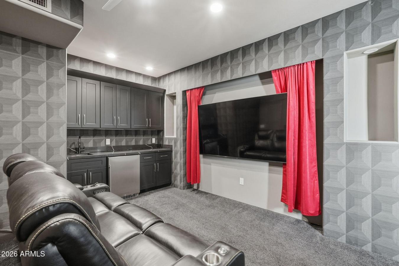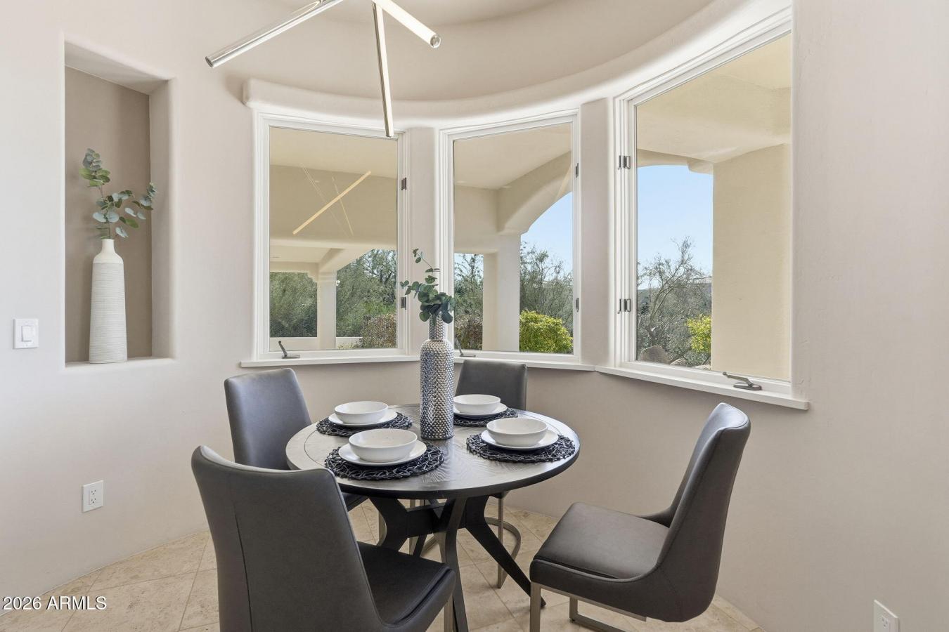 NO HOA! Amazing Pinnacle Peak Estate set on 1.6 private acres with sweeping, cinematic panoramic mountain views and not one but two rooftop decks to enjoy the views too! For your desert enjoyment, theres also 1800 SF of covered patio space and incredible water features in the front and back that exude elegance and enjoyment. This contemporary property has been refreshed in all of the right spaces and places. As you enter the home, youll immediately notice the custom entry glass that the sellers had especially designed for the home. The home has a split floor plan with three spacious bedrooms on one side of the home, one of which has a custom Murphy bed unit built in, which the sellers added. Opposite the guest bedroom wing on the other side of the home are the primary bedroom and laundry room, which have also been redone. The primary closet has new California Closet custom cabinetry along with a custom built-in bar area with a new beverage fridge. The dining room has a built-in pass-through bar area from the kitchen that sellers opened up and added two new wine fridges. The kitchen itself has upgraded top-of-the-line New Miele kitchen appliances, including an induction stovetop, convection oven, steam convection oven, built-in super automatic coffee station, and a warming drawer. Built-in Subzero fridge and freezer too. Cabinets in the kitchen and bar area have been refinished. Home automation was added throughout the home, including the lighting, locks, thermostats, pool, spa, pond, and garage doors. A number of the windows and seals are new too! Adjacent to the open living room, which flows to the kitchen and open breakfast nook, are stairs that take you up to the home theater that the sellers developed. In the theater, there is a door that takes you to a spacious outdoor patio deck with city views along with panoramic mountain views of the McDowells, Troon, Pinnacle Peak, and more. On the exterior, the sellers have added new landscaping and lighting, and you have an oversized outdoor kitchen area equipped with plenty of serving space, a sink, and even a professional-style pizza oven! The upper deck is new, along with new railings. New pool and fountain equipment along with pool automation. Putting green allows for your enjoyment and has some of the best overall views of the lot and the home too. The AC units have all been reconditioned, and AC has been added into the newly epoxied garage. The garage also has new door operators with cameras and power for two (2) EV car chargers in the garage. This home not only has upgrades for your enjoyment but also OWNED TESLA SOLAR too to help with cost savings on your electric! Moreover, for your safety, sellers have added a new alarm system too.