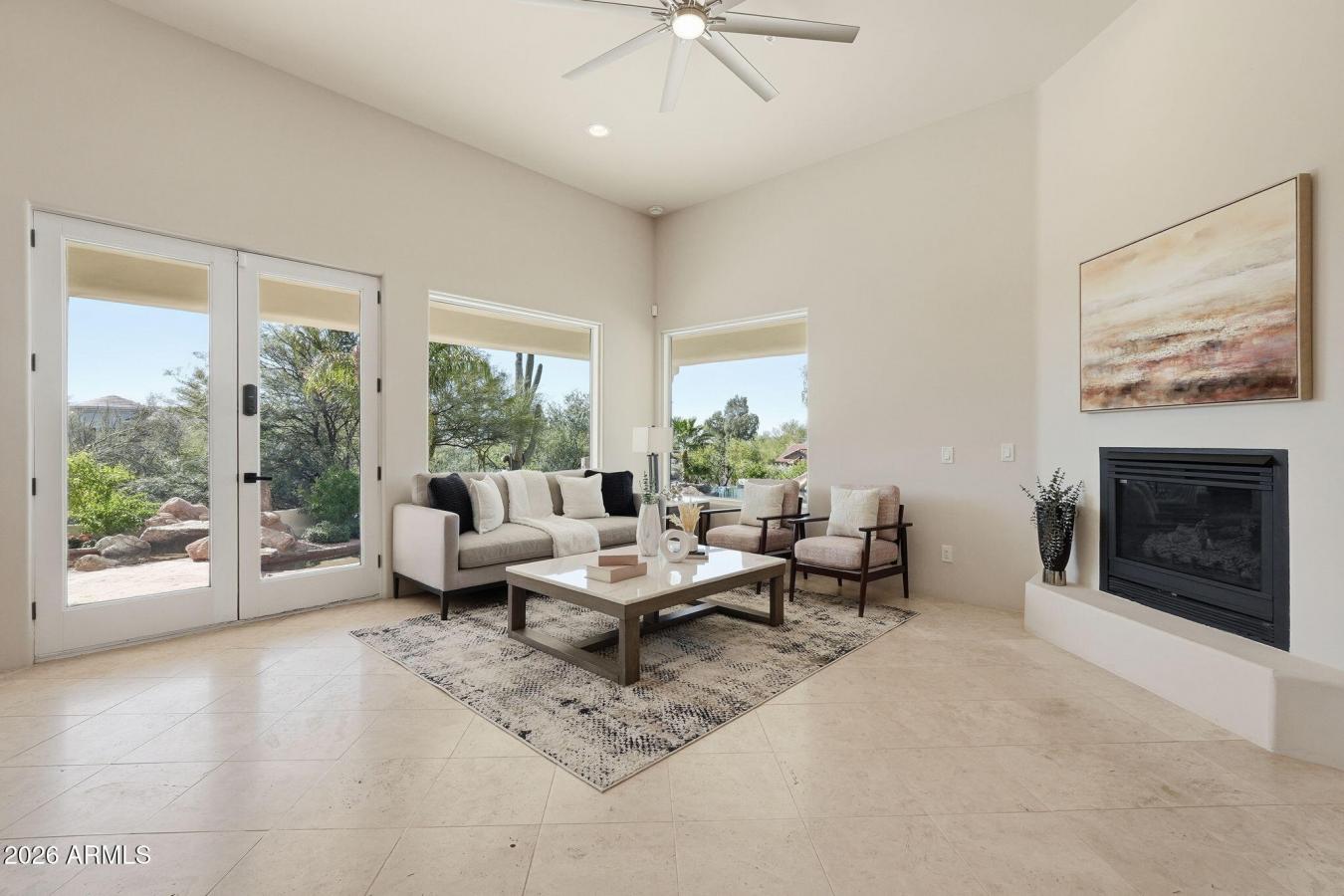 Just updated 5,300 sq.ft. luxury home in gated community on 2.6 acres! 5 bedroom, 5 bath estate situated in the community of Desert Summit. This exceptional Scottsdale home captures the beauty of the Sonoran Desert with timeless design and effortless indoor/outdoor flow. The spacious great room features high ceilings, custom finishes, and elegant stone and wood details.