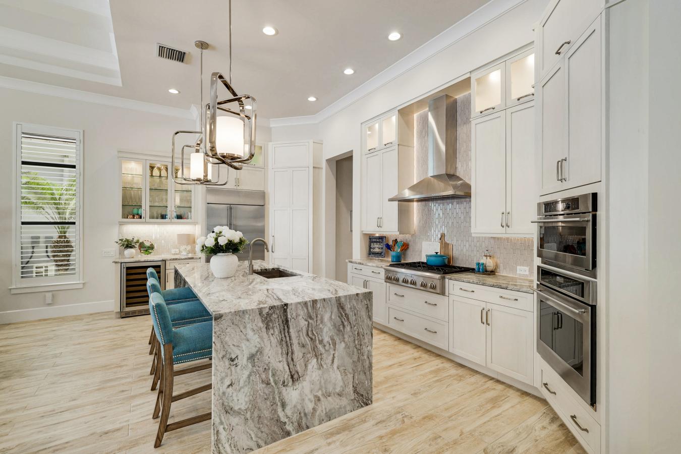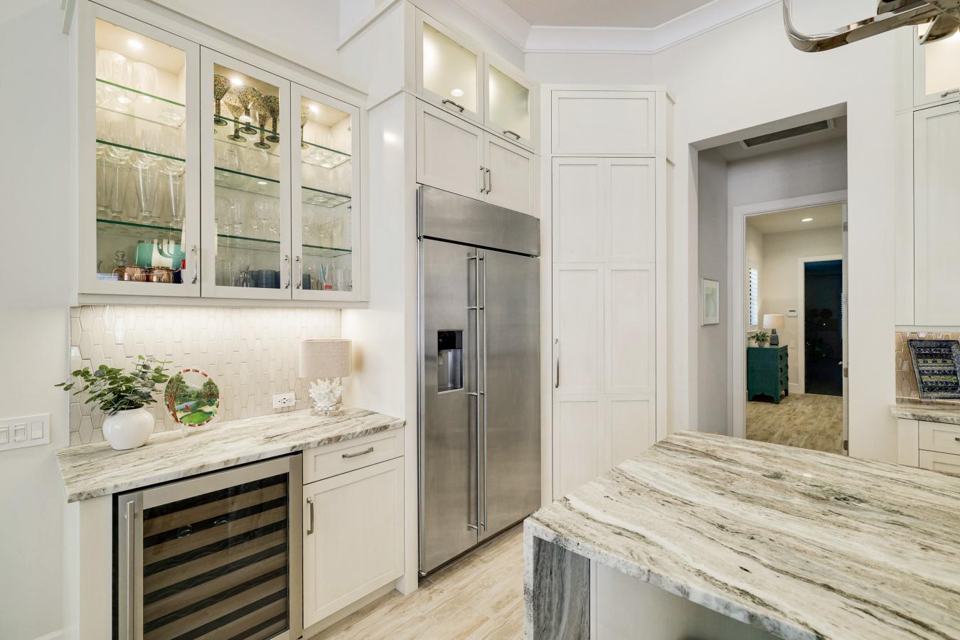 Where classic architecture meets modern artistry, this luxury custom home in Cory-Merrill embodies the perfect balance of tradition and innovation. Far surpassing the expectations of a typical spec build, this home showcases exceptional craftsmanship, curated materials, and a level of finish usually reserved for fully custom residences. An open, light-filled main level features lime-washed walls and an advanced lighting and control system that allows you to tailor ambiance and mood. Anchored by a professional-grade Viking range, the spectacular chefs kitchen showcases Matarazzo quartzite waterfall countertops, custom European white oak cabinetry, and luxury paneled SKS appliances. A sliding quartz backsplash cleverly conceals storage for spices, knives, and essentials, blending artistry with function. A main-floor office with en suite bath offers flexibility for guests or remote work, while a beautifully designed mudroom adds everyday convenience with built-in storage and drop zone, robot-vac housing rough-in, and powder bath with a stunning backlit onyx vanity. Upstairs, the serene primary suite feels like a private spa with heated floors, large zero-entry shower, sculptural stone soaking tub framed by imported hand-painted tile, and an expansive walk-in closet. The finished basement extends the living space with a swanky full bar, fitness or bonus room, and generous recreation area ideal for a media lounge or game room. Flush-mount Fittes outlets, kerfed door jambs, and ambient baseboard lighting enhance the homes clean lines and modern aesthetic. Together with the advanced lighting controls, these details create an interactive living experience where light and design adapt effortlessly to your lifestyle. Blending traditional warmth with contemporary minimalism, this home achieves a perfect balance of comfort, innovation, and timeless elegance.