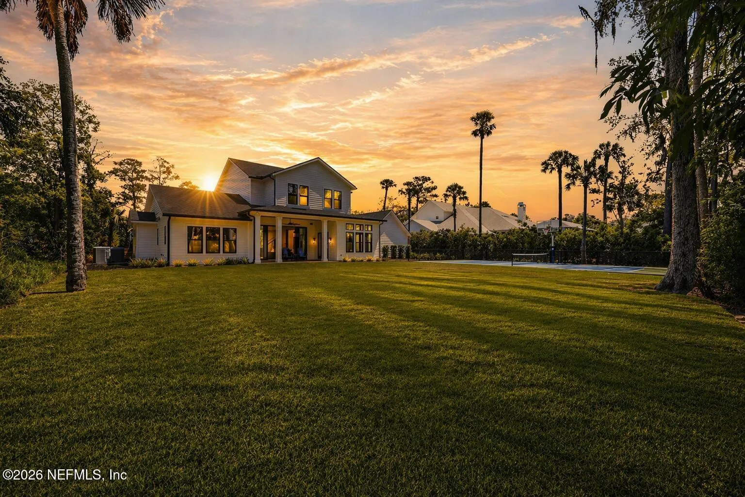 There is a different rhythm to this stretch of Palm Valley Road. More space. More privacy. A setting that feels removed, yet still connected to everything that defines Ponte Vedra Beach.** Set on more than 1.05 acres, this modern farmhouse, completed just last May, offers something increasingly rare, the feeling of new construction paired with land, privacy, and room to live beyond the walls of the home. A place where mornings feel quiet, evenings unfold naturally, and outdoor living becomes part of your everyday rhythm. From the moment you arrive, the setting defines the experience. Mature trees frame the property, creating a sense of seclusion, while the home itself opens with light, volume, and an effortless flow that feels both refined and livable. Inside, more than 3,800 square feet unfolds with wide plank wood floors, soaring ceilings, and a natural connection to the outdoors at every turn. At the center, the kitchen is designed as both a gathering place and a workspace, anchored by an oversized island, Thermador appliances, and a butler pantry tucked just beyond, allowing everything to function beautifully behind the scenes. Living and dining spaces move seamlessly together, extending toward the covered patio where mornings begin quietly and evenings settle in with ease. The layout is both thoughtful and highly functional. The primary suite is located on the main level, along with a second bedroom and a dedicated office, creating flexibility for guests, multigenerational living, or working from home. The primary suite itself is a retreat, with a spa like bath and a calm connection to the landscape beyond. A spacious laundry room supports the rhythm of daily life without interruption. Upstairs, three additional bedrooms, two full baths, and a loft come together to create a separate living space that feels ideal for family or guests. Whether used as a media room, playroom, or quiet retreat, the loft adds another dimension to the homes design. Outside, the experience shifts. The scale of the land allows for something rarely found in Ponte Vedra Beach, space not just to design, but to live. A newly installed pickleball and basketball court introduces a natural gathering place, where afternoons turn into evenings and time with friends and family unfolds with ease. And still, there is room for more. With no HOA, the property offers a level of flexibility that is increasingly hard to find. Whether you envision a detached garage, guest house, ADU, or a fully realized outdoor living environment, the space is here to bring that vision to life, all without compromise. And yet, for all of its space and privacy, you are only minutes from the beach, TPC Sawgrass, and the areas most sought after dining and shopping. Zoned for top rated St. Johns County schools, the location offers both convenience and long term value. A newer home, land to grow into, and a setting that allows you to live differently. This is where space, design, and lifestyle come together in a way that is no longer easy to find.