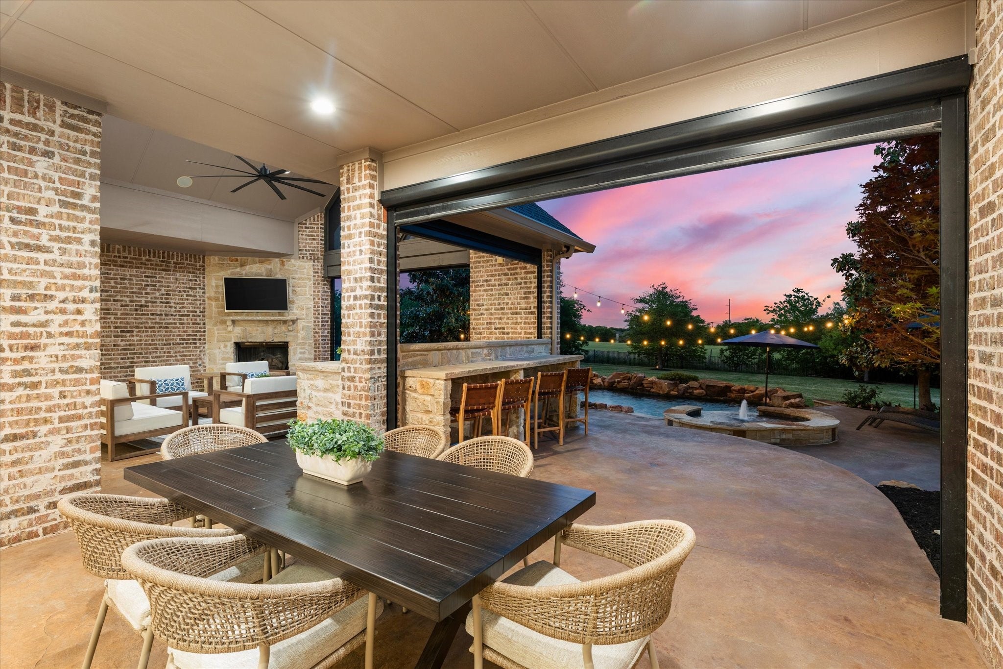 Welcome to a true unicorn in the heart of Prosperwhere luxury, privacy, & design come together on just under an acre in the prestigious community of Whispering Meadows. Perfectly positioned on a premium corner lot with no neighbors behind, this Dave R Williams stunning home offers breathtaking, uninterrupted views of lush green space. Step inside and prepare to be captivated. The expansive single-story floor plan is thoughtfully designed with 4 spacious bedrooms, 4 full baths, a game room, & a media room, offering the perfect blend of everyday comfort and elevated entertaining. At the heart of the home, a completely reimagined designer kitchen steals the showfeaturing all-new high-end appliances, Italian marble, stunning finishes, & a massive prep kitchen pantry you must see to believe. Every inch of this home has been meticulously updated with over 600K in top-to-bottom designer upgrades - truly a turnkey masterpiece. The living & dining spaces are nothing short of spectacular, highlighted by dual sliding glass doors spanning the back of the home, creating a seamless indoor-outdoor experience & overlooking the private backyard oasis. The primary suite is a retreat of its own, offering an oversized layout with a private attached study, a spa-inspired bathroom, & luxurious finishes throughout. Additional standout features include a dedicated craft room with private exterior access to a dog run, a wine room with built-in desk & a stylish wet bar & more - every detail thoughtfully curated. Step outside to your own resort-style escapecomplete with a sparkling pool and spa, oversized covered patio with fireplace, outdoor kitchen, bar & automated drop-down shades. You will also appreciate the rare 5-car garage & TEXAS BASEMENT space! All on an expansive lot with room to breathe- an incredibly rare find in Prosper. This is more than a homeits a fully transformed, designer showplace where no detail has been overlooked. Opportunities like this are few and far between.