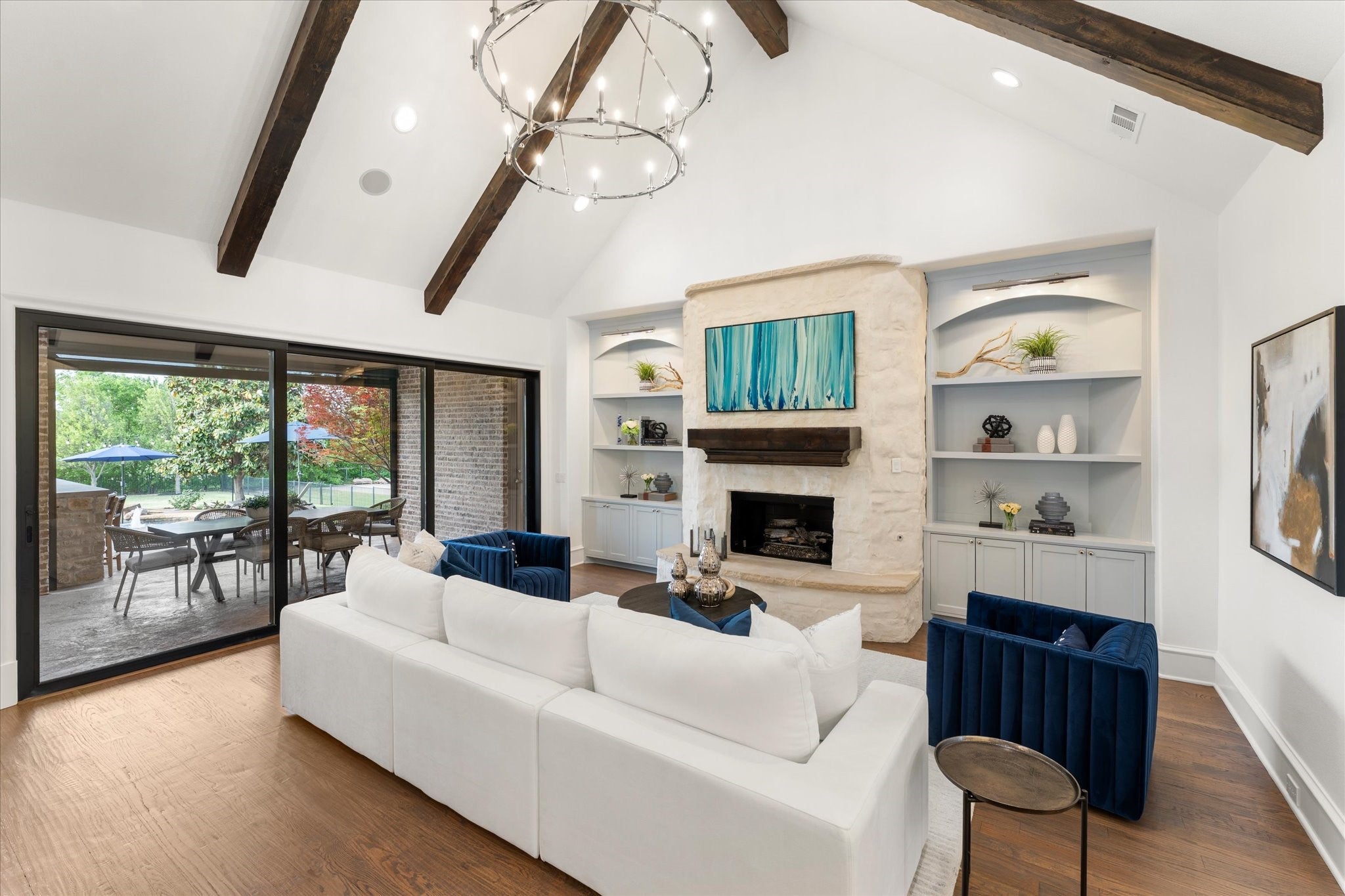 Welcome to this custom-built modern farmhouse in The Grove, one of Middle Tennessees most exclusive golf club communities just south of Nashville and minutes from downtown Franklin. The resort-style backyard is an entertainers dream with its saltwater pool, hot tub, outdoor kitchen and bar, professional outdoor lighting and sound system, and even a putting green with a chipping area. Inside you will find tons of natural light and warm hardwood flooring throughout. The main living space features magnificent, exposed wooden beams combined with a gourmet kitchen with a butlers pantry with sliding doors to the outdoor living area. The primary suite feels like its own private getaway, with a spa-like bathroom, expansive double vanities, a soaking tub, and a custom closet. Upstairs boasts 3 more bedrooms, each with their own private bathroom and custom closet, a bonus room, a rec room, and a movie theater. All of this is walking distance to one of the community pools, tennis/pickleball courts, playground, and casual dining restaurant. This home is move-in ready with fresh paint and brand new hardwood floors throughout. Schedule your showing before its gone.