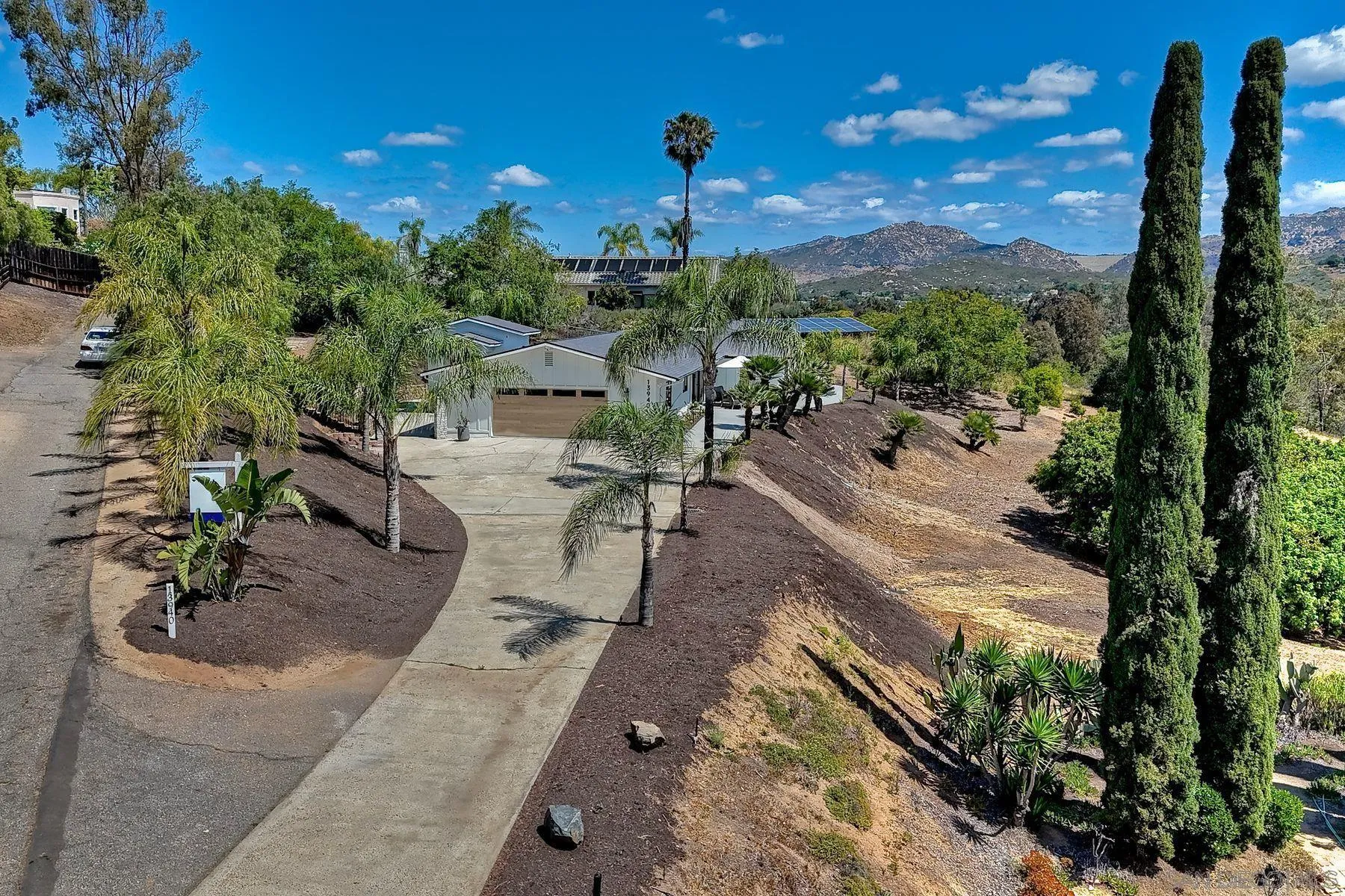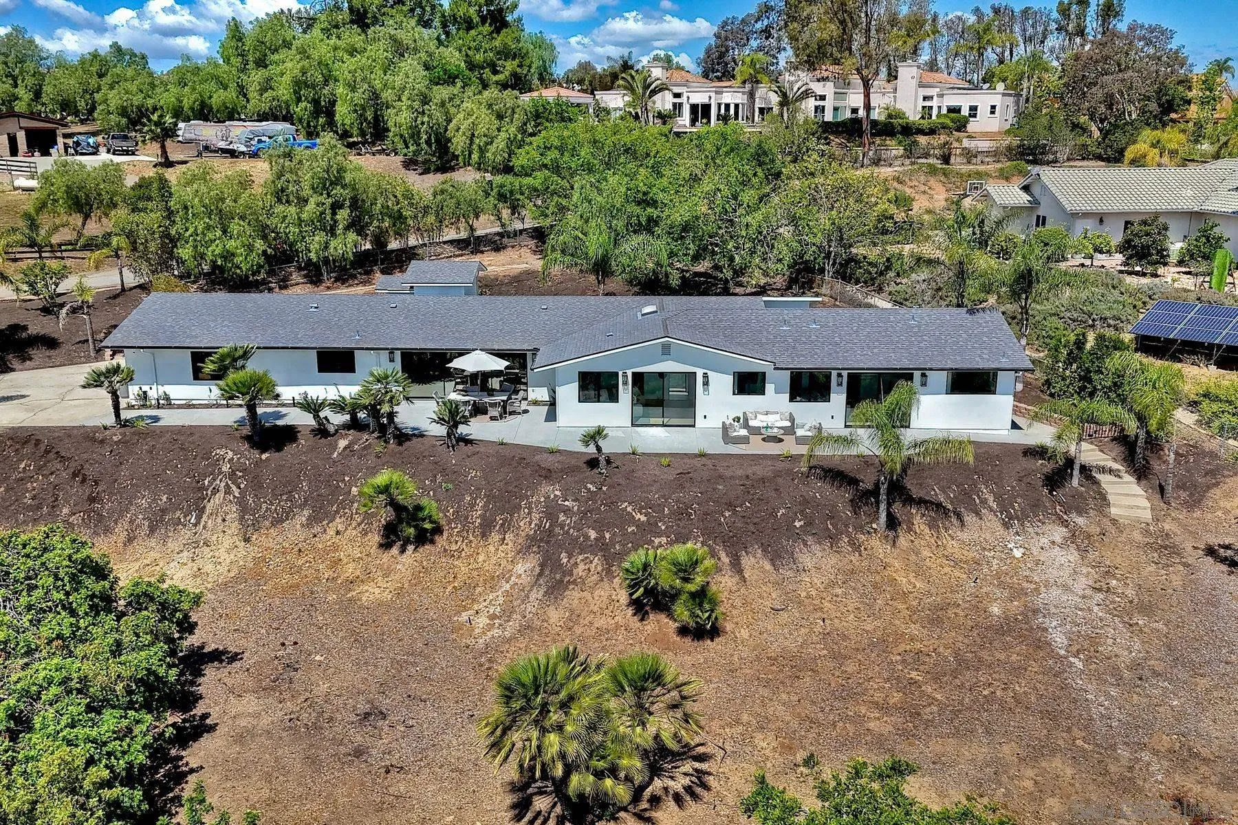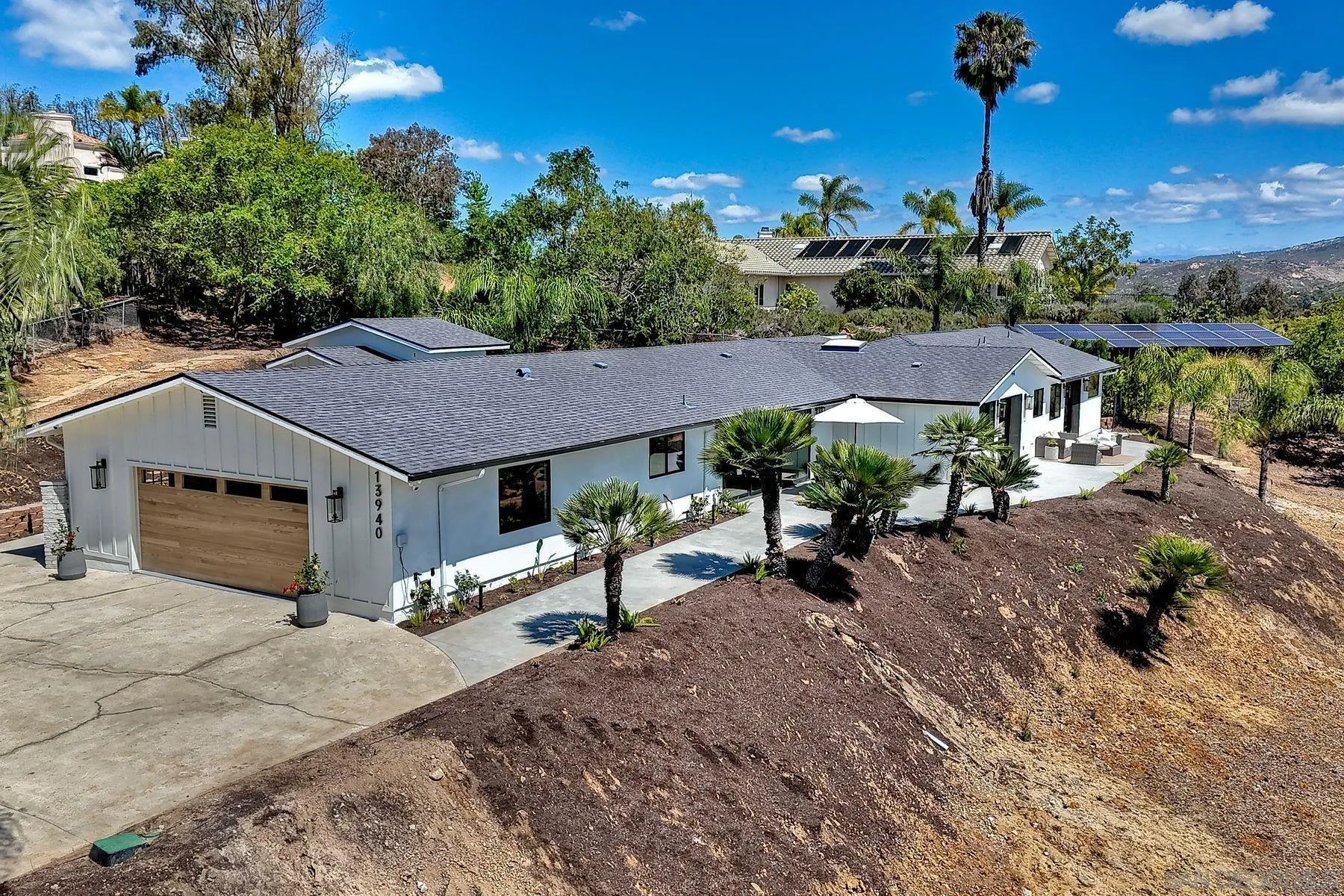 Welcome to 13940 Northcrest Lane, a beautifully renovated 3,000 sq. ft. luxury estate resting on nearly a private one-acre lot in the heart of Poway. Built by one of Californias premier luxury home builders, this exceptional four-bedroom residence seamlessly blends refined craftsmanship, modern upgrades, and a rare connection to the surrounding natural beauty. At the heart of the home is a chef-inspired gourmet kitchen, featuring commercial-grade Thermador appliances, custom cabinetry, and thoughtfully designed spaces perfect for both everyday living and entertaining. Elegant Mediterranean oak flooring flows throughout the home, creating warmth, sophistication, and timeless style. Three spacious ensuite bedrooms provide comfort and privacy for both homeowners and guests, while expansive living areas capture panoramic views from much of the home. A stunning 17 x 8 multi-slide glass wall creates a seamless indoor-outdoor living experience, opening to sweeping elevated views of the surrounding landscape. Set on a view-oriented lot, the property offers exceptional privacy, generous space, and a peaceful retreat while still being close to everyday conveniences. Sits on a private road with no HOA, the home enjoys tranquil surroundings and a welcoming neighborhood. Outdoor enthusiasts will appreciate being within walking distance to Lake Poway, with easy access to Blue Sky Reserve, Twin Peaks hiking trails, and nearby equestrian paths, offering endless opportunities to explore the natural beauty. In the heart of Poway Unified award winning schools!
