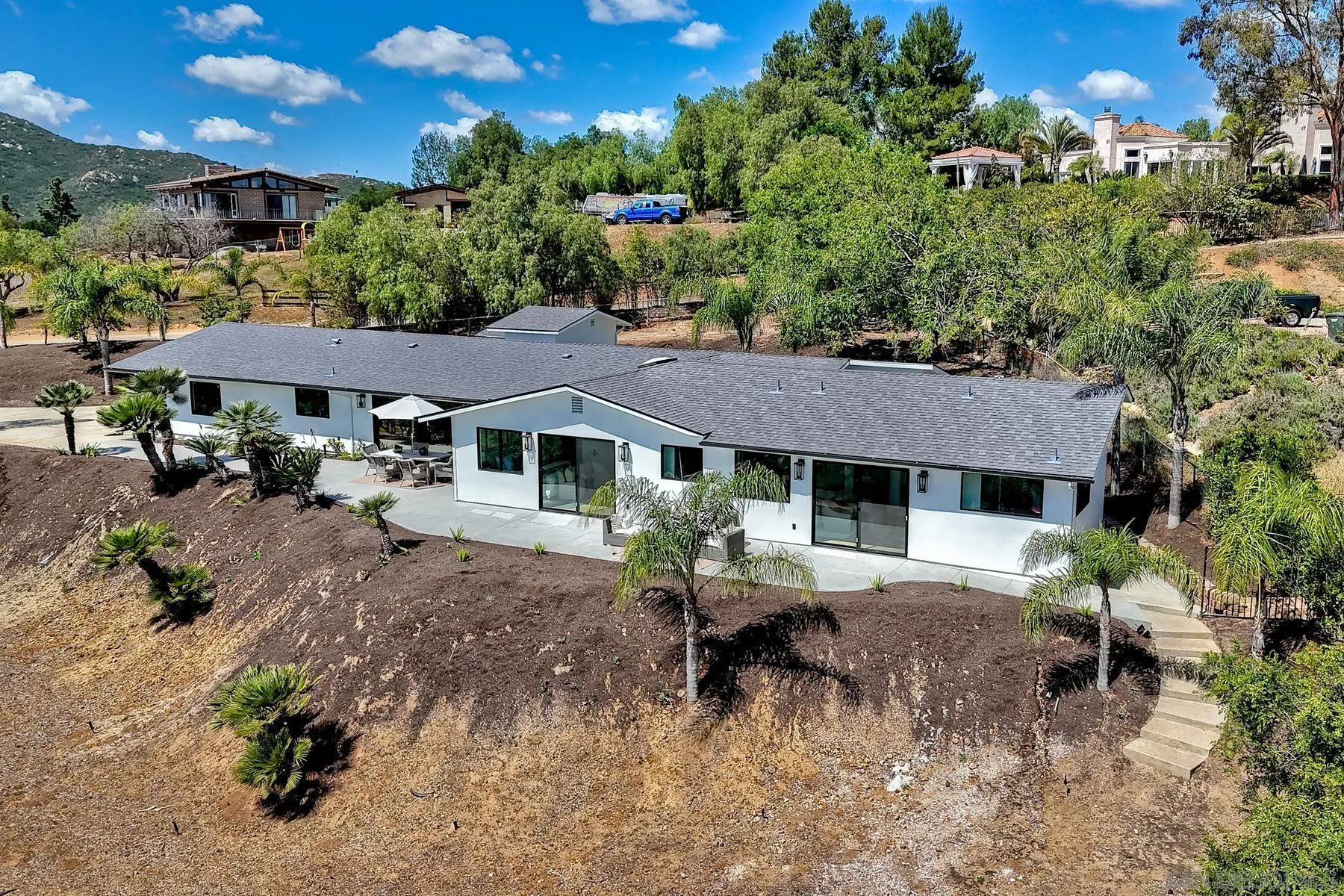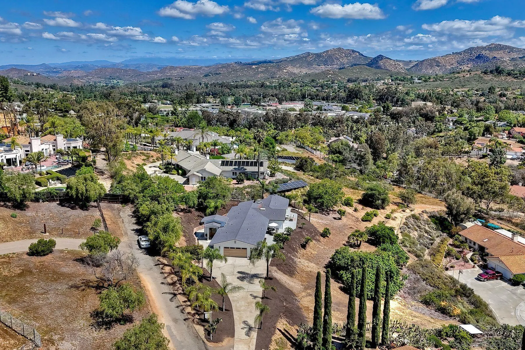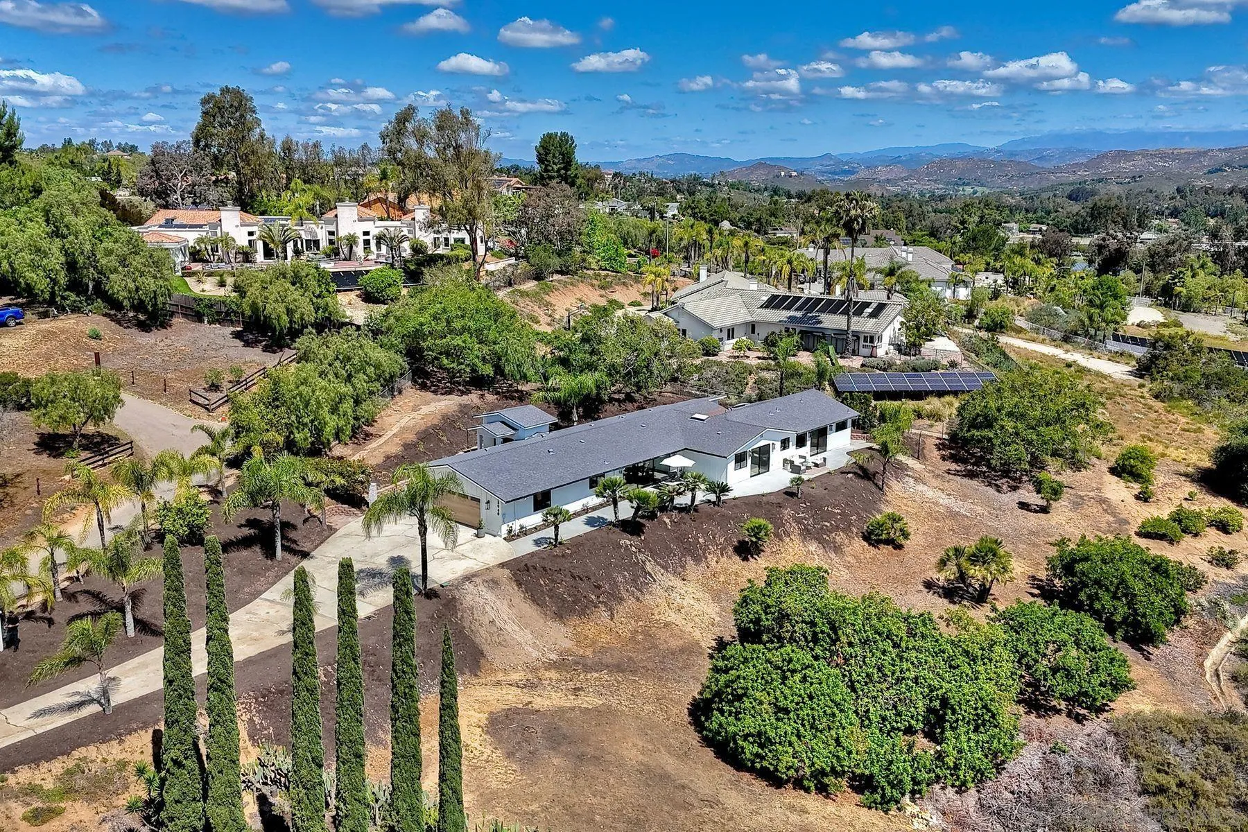 Welcome to 13940 Northcrest Lane, a beautifully renovated 3,000 sq. ft. luxury estate resting on nearly a private one-acre lot in the heart of Poway. Built by one of Californias premier luxury home builders, this exceptional four-bedroom residence seamlessly blends refined craftsmanship, modern upgrades, and a rare connection to the surrounding natural beauty. At the heart of the home is a chef-inspired gourmet kitchen, featuring commercial-grade Thermador appliances, custom cabinetry, and thoughtfully designed spaces perfect for both everyday living and entertaining. Elegant Mediterranean oak flooring flows throughout the home, creating warmth, sophistication, and timeless style. Three spacious ensuite bedrooms provide comfort and privacy for both homeowners and guests, while expansive living areas capture panoramic views from much of the home. A stunning 17 x 8 multi-slide glass wall creates a seamless indoor-outdoor living experience, opening to sweeping elevated views of the surrounding landscape. Set on a view-oriented lot, the property offers exceptional privacy, generous space, and a peaceful retreat while still being close to everyday conveniences. Sits on a private road with no HOA, the home enjoys tranquil surroundings and a welcoming neighborhood. Outdoor enthusiasts will appreciate being within walking distance to Lake Poway, with easy access to Blue Sky Reserve, Twin Peaks hiking trails, and nearby equestrian paths, offering endless opportunities to explore the natural beauty. In the heart of Poway Unified award winning schools!