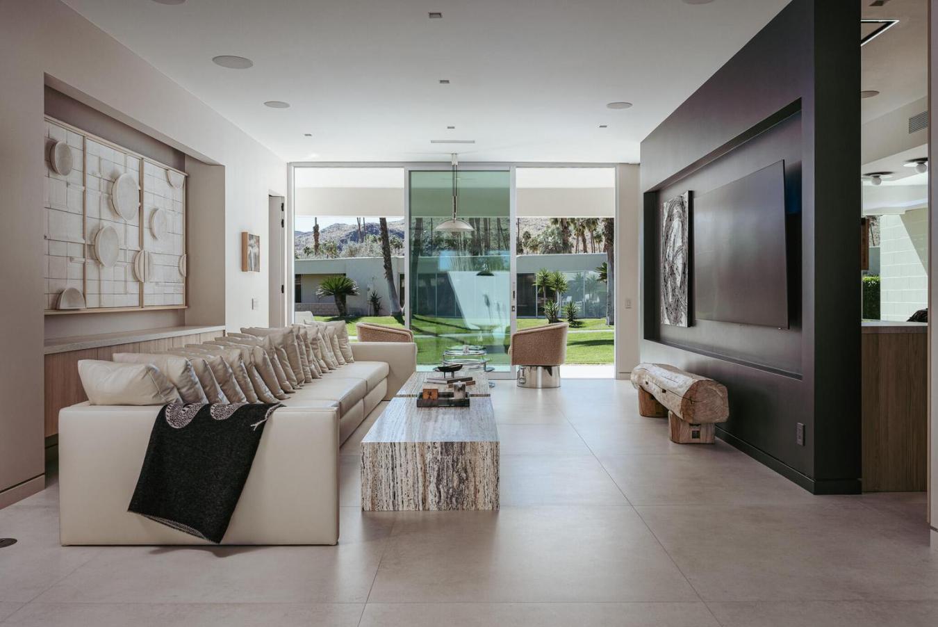 Welcome to 205 Desert Lakes Drive, an exceptional residence in the iconic Seven Lakes Golf & Country Club in South Palm Springs. Originally designed in 1967 by architect Richard E. Harrison, this home has been completely reimagined into a sophisticated 3-bedroom, 3.5-bath modern retreat by designer Andre Boughtwood of ADesignPS. This home has been rebuilt from the studs with an uncompromising commitment to quality, design, and modern luxury. Every element has been thoughtfully curated, creating a seamless blend of mid-century architecture and contemporary refinement. At its center, a custom Leicht kitchen features Gaggenau appliances, a dramatic 4-foot Galley sink, and curated lighting from Design Within Reach, all framed by Brazilian marble slab walls and warm Japanese pine paneling. Expansive pocketing sliders create effortless indoor-outdoor living, opening to a private resort-style setting with the largest private pool in Seven Lakes. The newly constructed 21 x 116 saltwater pool, finished in glass bead PebbleTec, includes tranquil fountains and an outdoor shower--perfect for relaxation and entertaining. The thoughtfully redesigned layout offers three private bedroom suites, each with its own spa-inspired bath featuring Leicht cabinetry, travertine sinks, and Toto toilets. The primary suite is a true sanctuary, complete with a Mr. Steam steam shower and aromatherapy system. Refined finishes include Level 5 smooth drywall, shadow-reveal detailing, Soss-hinged doors, and Italian 48x48 porcelain tile flowing seamlessly throughout. A custom ceramic installation by local artist Jim Abele is a delightful centerpiece of the main living area. Behind the scenes, all systems have been upgraded, including plumbing, sewer, electrical, HVAC, and dual-pane Monumental windows and sliders. Smart features include Lutron lighting, in-ceiling Sonos audio, and a Navien tankless water heater. The exterior boasts over 30,000 in curated landscape and hardscape improvements, including a Japanese-inspired patio and dedicated golf cart parking with charging. Located behind a 24-hour guard gate, near the Parker Hotel, Seven Lakes--known as The Gem of the Desert--offers an 18-hole Ted Robinson-designed golf course, 15 pools and spas, pickleball and tennis courts, and a vibrant William Cody-designed clubhouse with dining, lounge, and terrace. Hide