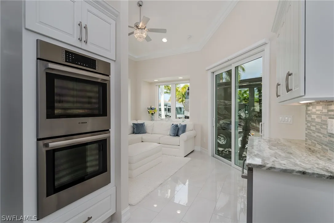 Mediterranean-style home offers an exquisite blend of elegance & panoramic views. Resort-style living with a sprawling half-acre lot, featuring a resort-style pool area adorned with cool to the feet travertine tiles & tasteful landscape lighting. Pool can be heated or cooled for use year-round. High ceilings throughout, a hallmark of Mediterranean architecture.