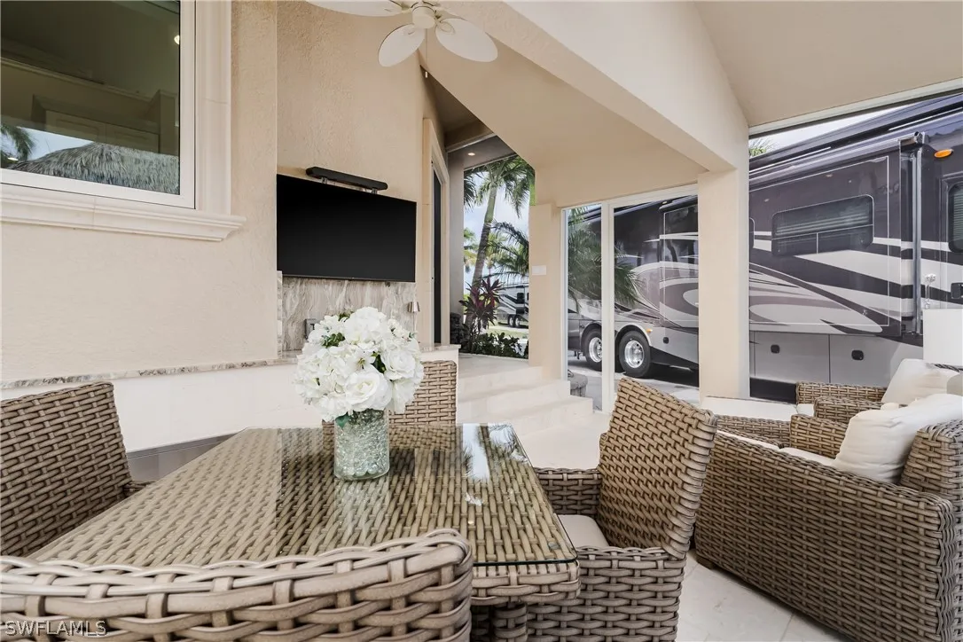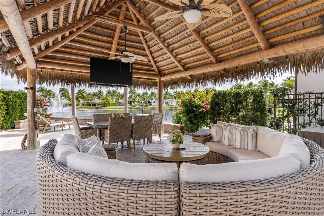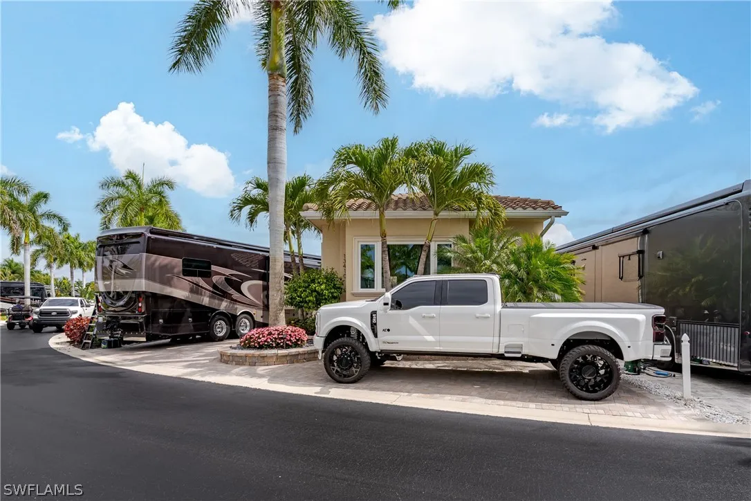 Lot 176 - Experience tropical luxury and effortless resort living at Naples Motorcoach Resort, one of Southwest Floridas most prestigious Class A motorcoach communities in beautiful Naples. This exceptional lakefront motorcoach property offers a front-row seat to one of the resorts most picturesque lakes, highlighted by a magnificent illuminated fountain that glows beautifully in the evening, creating a serene and unforgettable waterfront backdrop. Designed for both luxury and relaxation, the property features a spacious custom tiki hut that immediately transports you into a private tropical retreat. Rich textures, lush landscaping, and warm ambient lighting create the perfect setting for entertaining friends or enjoying peaceful sunset evenings by the water. Every detail evokes the feeling of a high-end island resort, blending elegance with the laid back charm of Southwest Florida living. The beautifully appointed casita elevates the property even further, offering a thoughtfully designed interior complete with a full kitchen, stylish living area, and private bathroom. Custom furnishings and tasteful d cor make this space both functional and luxurious, perfect for hosting guests or enjoying additional comfort while at the resort. Imagine yourself relaxing on the custom sofa in a living room that rivals million dollar homes. Just beyond, an expansive screened in porch (I dare you to even see the screens they are almost invisible) allows you to fully enjoy the breathtaking lake views while staying comfortable in a bug free environment. Whether sipping morning coffee as the fountain sparkles in the sun or enjoying evening cocktails as it illuminates the water, this space becomes an extension of your living area and a favorite gathering spot. Outdoor entertaining is effortless in this space thanks to the fully equipped outdoor kitchen, where no expense has been spared. From casual lunches to elegant evening gatherings the design of this property encourages a seamless indoor-outdoor lifestyle surrounded by tropical beauty. Ownership within Naples Motorcoach Resort includes access to world-class amenities such as three resort-style pools, spas, saunas, a clubhouse, fitness facilities, pickleball courts, dog park, and a private boat ramp providing Gulf access through the in resort waterway perfect for exploring the Ten Thousand Islands, visiting Marco Island, or boating to waterfront dining. This is more than just a motorcoach lot it is a luxurious lakefront retreat where tropical elegance, thoughtful design, and resort living come together beautifully. NIGHT TIME PICTURES COMING CASITA FEATURES: 2026 - New Air Conditioner, 2026 - Reverse Osmosis Water Treatment System, Hunter Douglas Electric Silhouette blinds throughout Casita