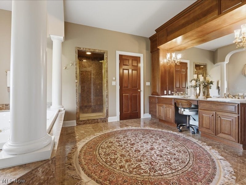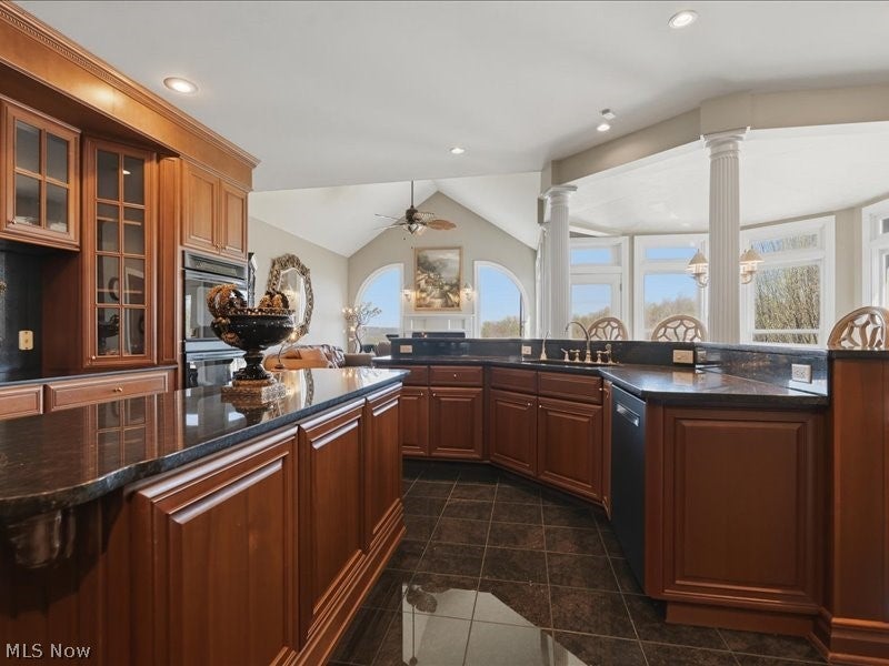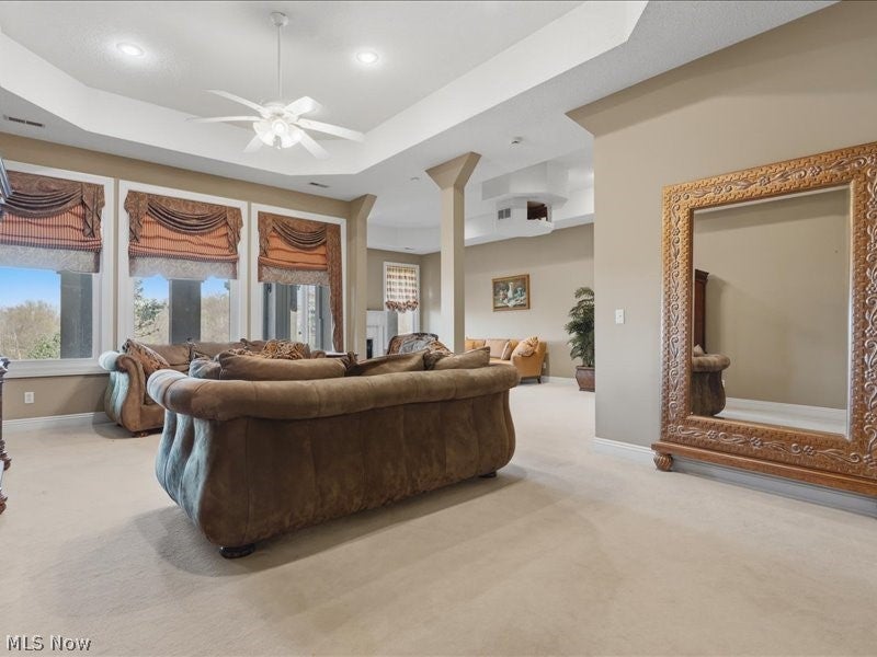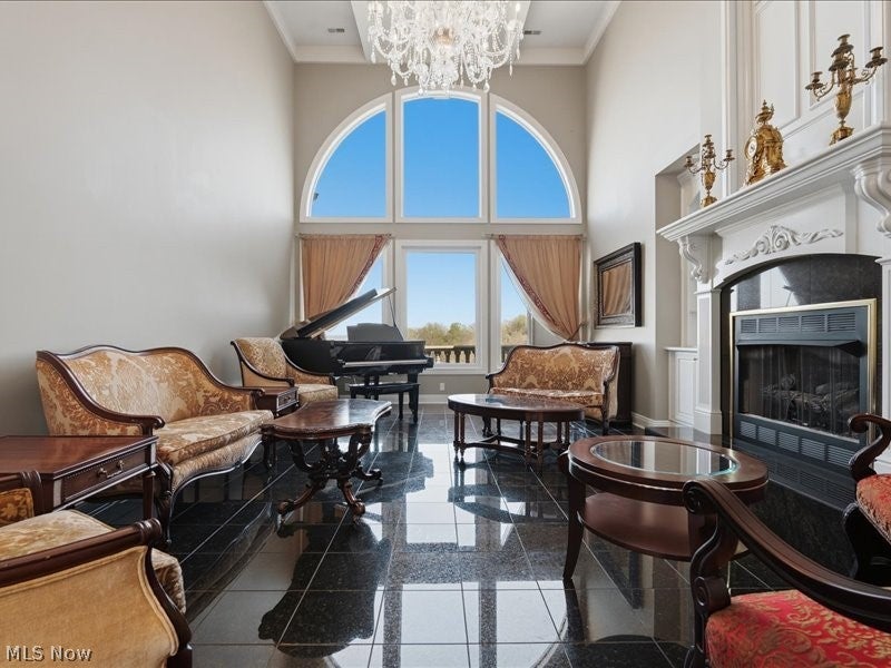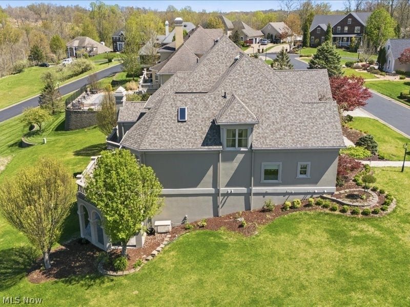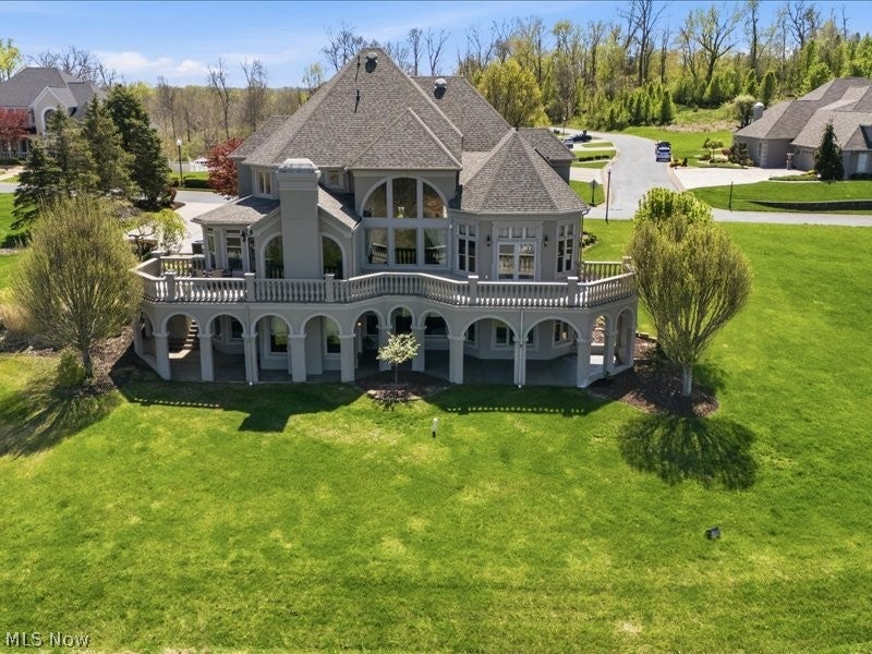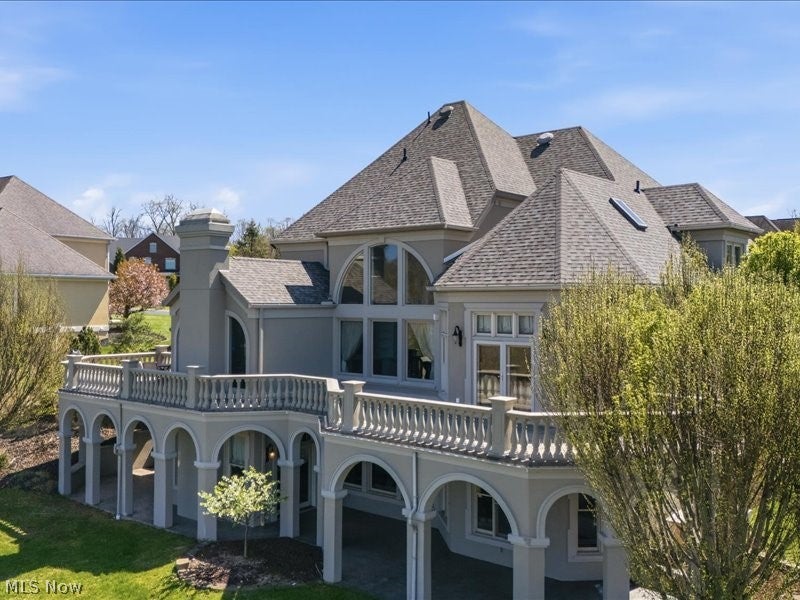 One of a kind architectural design with a presence! Artfully designed and custom built you have it all with six bedrooms, including a first floor ensuite, three fireplaces, and custom architectural accents that were well planned in this beautiful home. Your view is breathtaking with a large wrap around balcony and a lower stamped patio from the lower level living quarters. Beautiful marble floors, and coffered high ceilings in the grand entrance with stately marble floors extending through the formal living area providing large windows for natural light. The dining area windows are accented with totally custom handmade draperies. entering the kitchen, it opens into a family room with cathedral ceilings, gas fireplace and more light friendly large windows. A morning room awaits with open design more large windows and a unique circular textured ceiling. Need space for family members, there is over 2300 sq feet of finished completely private living in the lower level of home with exterior access. Additional amenities include two custom motorized chandeliers one in grand entry foyer, one in formal living, 2 separate laundry areas, central vac, multiple HVAC systems, custom designed window treatments throughout, and new roof Sept 2025, Home sits on 2 parcels, totaling .98 acres. The community is gated. Nearby accommodations include schools, houses of worship, shopping, hospitals, grocery, restaurants and easy access to major highways.