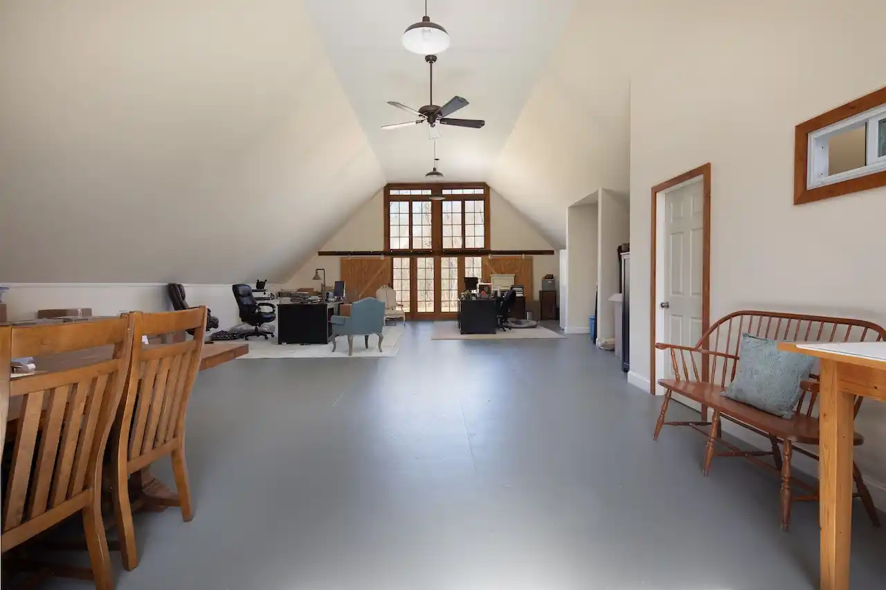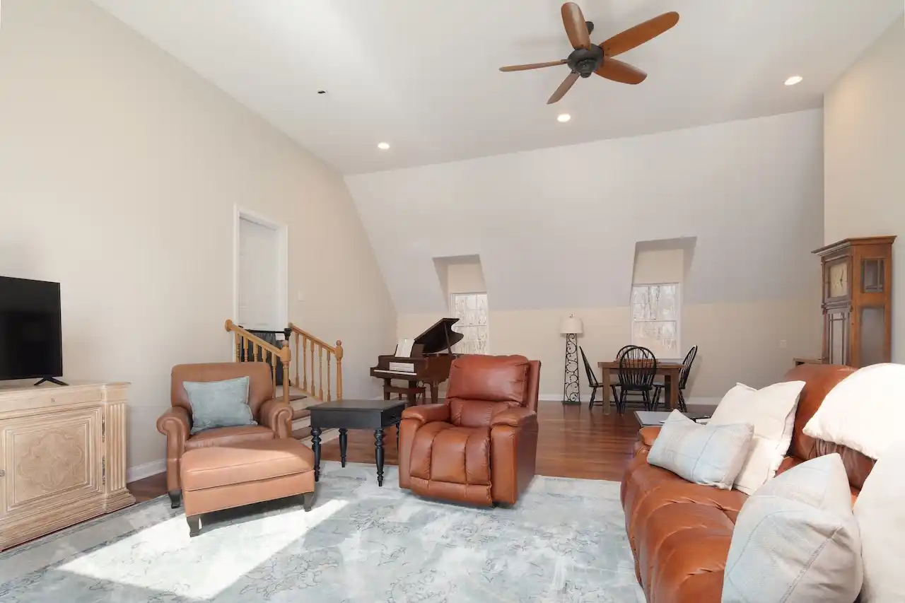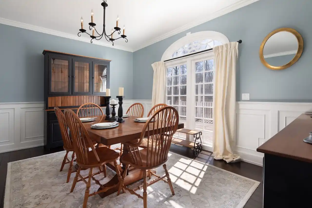 Luxurious Craftsman Retreat in Blue Ridge Set on 2.62 acres of beautifully landscaped grounds, this stunning 5,000 sq. ft. Craftsman-style home blends timeless sophistication with modern comfort, offering an unrivaled mountain retreat. Step into refined living, where every detail is thoughtfully curated. The gourmet kitchen stands as the heart of the home, showcasing leathered granite countertops, a massive island, custom cabinetry, and premium appliances, all complemented by a striking glass tile backsplash. The dining area is perfect for intimate meals or grand gatherings. The great room exudes warmth and style, offering ample seating for relaxation and a private office tucked behind a charming sliding barn door. Step onto the expansive deck, where a grilling station, cozy seating, and an elegant outdoor fireplace create the perfect setting for enjoying crisp autumn evenings under a starlit sky. Escape to the primary suite, an indulgent retreat featuring a spa-like ensuite with a slipper tub, dual vanities, a spacious walk-in shower, and custom closets. Thoughtful details like a wooden trey ceiling and slat accent wall add charm to the space. Designed for entertainment, the finished basement is a true showstopper—complete with a second kitchen and bar, dedicated game space with billiards, air hockey and foosball, and a charming bunkroom. Beyond the home, a stone pathway leads to a tranquil creekside fire pit, where you can gather with loved ones, roast marshmallows, or simply unwind by the reflecting pond. This property is more than just a home—it's a lifestyle of elegance, comfort, and mountain serenity. Your dream retreat awaits!