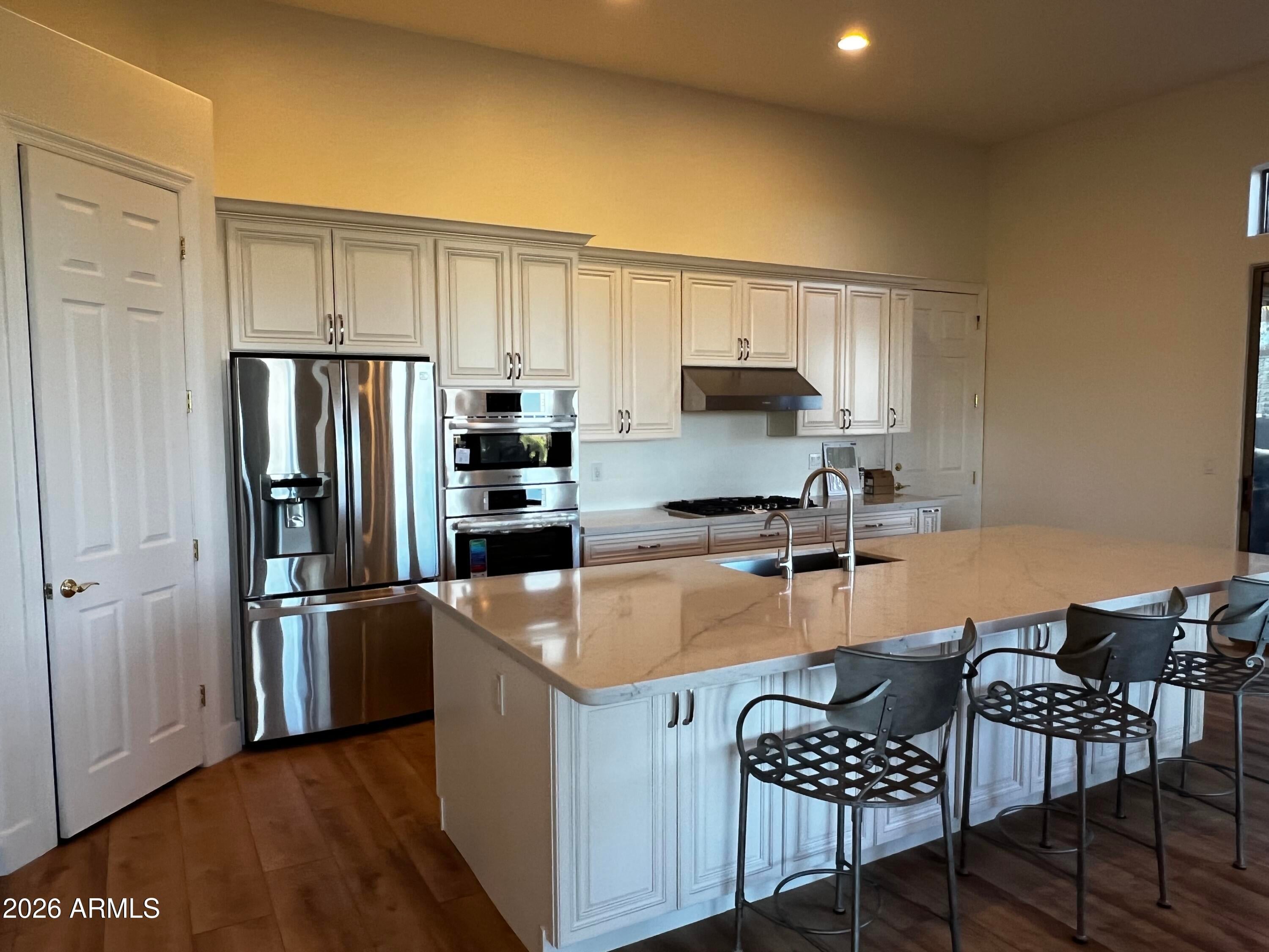 Nestled within the Ahwatukee Foothills in the gated community of Tuscan Hills, this exceptional custom home sits on a coveted oversized lot and captures breathtaking city lights and mountain views from nearly every window, creating a setting that feels both elevated and serene. Designed as a true retreat, the home offers six bedrooms and four bathrooms, with expansive living spaces that balance comfort, privacy, and effortless entertaining. The thoughtful layout provides flexibility for guests, multigenerational living, or work-from-home needs while maintaining a warm and inviting flow throughout the home. At the center of the home, the gourmet kitchen is designed to perform as beautifully as it looks. It features granite countertops, a large island, a walk-in pantry, and a fully equipped butlers pantry with a small prep sink and built-in ice maker tucked beneath the cabinetry. The kitchen is outfitted with double ovens, including a top oven with convection cooking, a microwave that also functions as a convection oven, and an electric cooktop with a full warming drawer below, creating a space that is equally suited for everyday meals or large-scale entertaining. The primary suite serves as its own private sanctuary, complete with a separate sitting area or office space ideal for quiet mornings or working from home. A private balcony frames stunning mountain views, while the spacious bath offers dual vanities, a soaking tub positioned to capture city views, and dual walk-in closets, creating a luxurious and functional retreat. Step outside and the property transforms into a private resort. The backyard is anchored by a spectacular waterfall pool complete with a slide, grotto, and spa, creating a setting that feels like a luxury getaway. A swim-up bar connects to a large sunken outdoor kitchen, designed for effortless entertaining and resort-style living. The outdoor kitchen is fully equipped with a built-in BBQ with side burners, a built-in smoker, a full sink, and multiple coolers, making it ideal for hosting gatherings while enjoying the incredible Arizona weather and surrounding views. The grounds continue to impress with a raised grass yard overlooking the valley, mature fruit trees, and a private basketball court, offering both recreation and relaxation across the expansive homesite. Completing the property is a three-car garage and the privacy and prestige of a gated neighborhood, all while being just minutes from shopping, dining, and freeway access. With its rare lot, sweeping city and mountain views, and resort-style amenities, this home delivers a lifestyle with a vibe that makes every day feel like a getaway... the kind of place you arrive at and never want to leave!