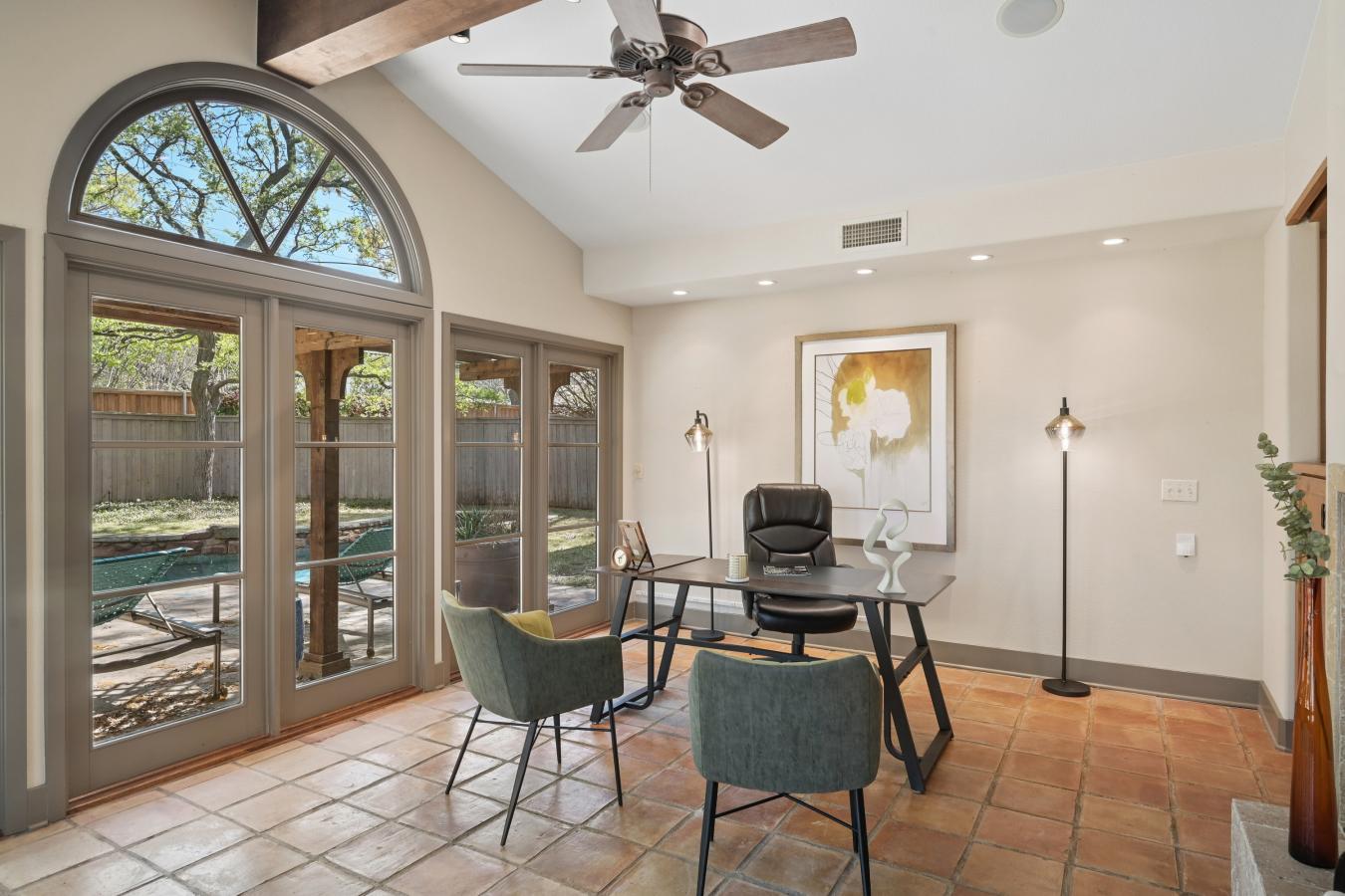 Searching for a 4-bed home in the prestigious neighborhood of Les Jardins that offers privacy, character, and modern entertaining space? This beautifully remodeled Southwestern-inspired residence sits on a quiet cul-de-sac with mature trees and a lap pool. Featuring dual primary bathrooms and open-concept living, it delivers both lifestyle appeal and location convenience. Own a piece of baseball broadcasting history at 10612 De Bercy Ct, a distinctive single-family home offering 3,362 square feet on a generous .4093 acre lot. Originally built in 1965 and fully remodeled in 2007 by Jeannie and Eric Nadel, the Texas Rangers broadcasting legend, the home blends warm Southwestern design elements with modern functionality. The open layout creates seamless flow between living, dining, and outdoor entertaining areas, ideal for gatherings or relaxed daily living. The primary suite stands out with separate his-and-hers bathrooms and closets, a rare and truly unique feature. Outdoors, mature trees provide shade and privacy while a dedicated lap pool enhances both recreation and wellness. Positioned in the established Les Jardins neighborhood, this residence enjoys a private cul-de-sac setting with no through traffic. Commuters will appreciate quick access to I-635, the Dallas North Tollway, I-35, and North Central Expressway, connecting you efficiently to major employment centers, shopping, and dining throughout Dallas.