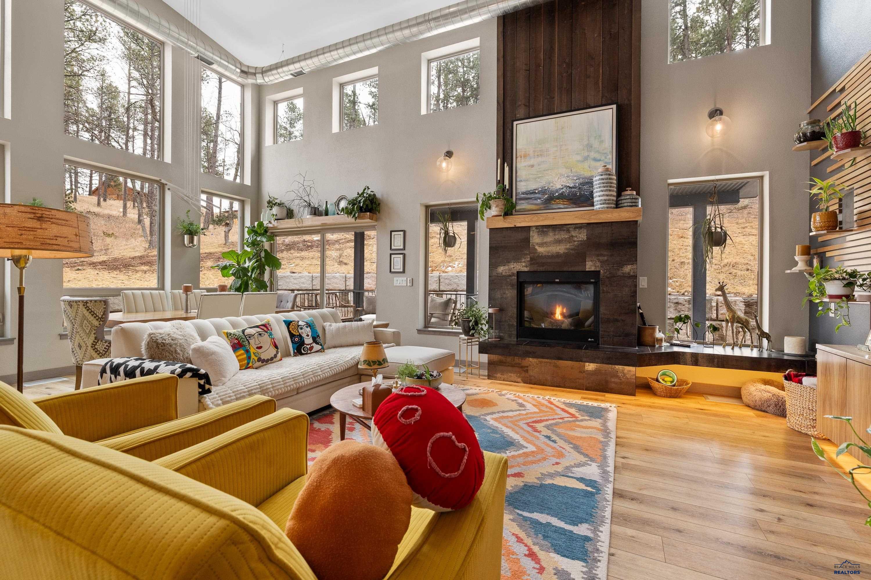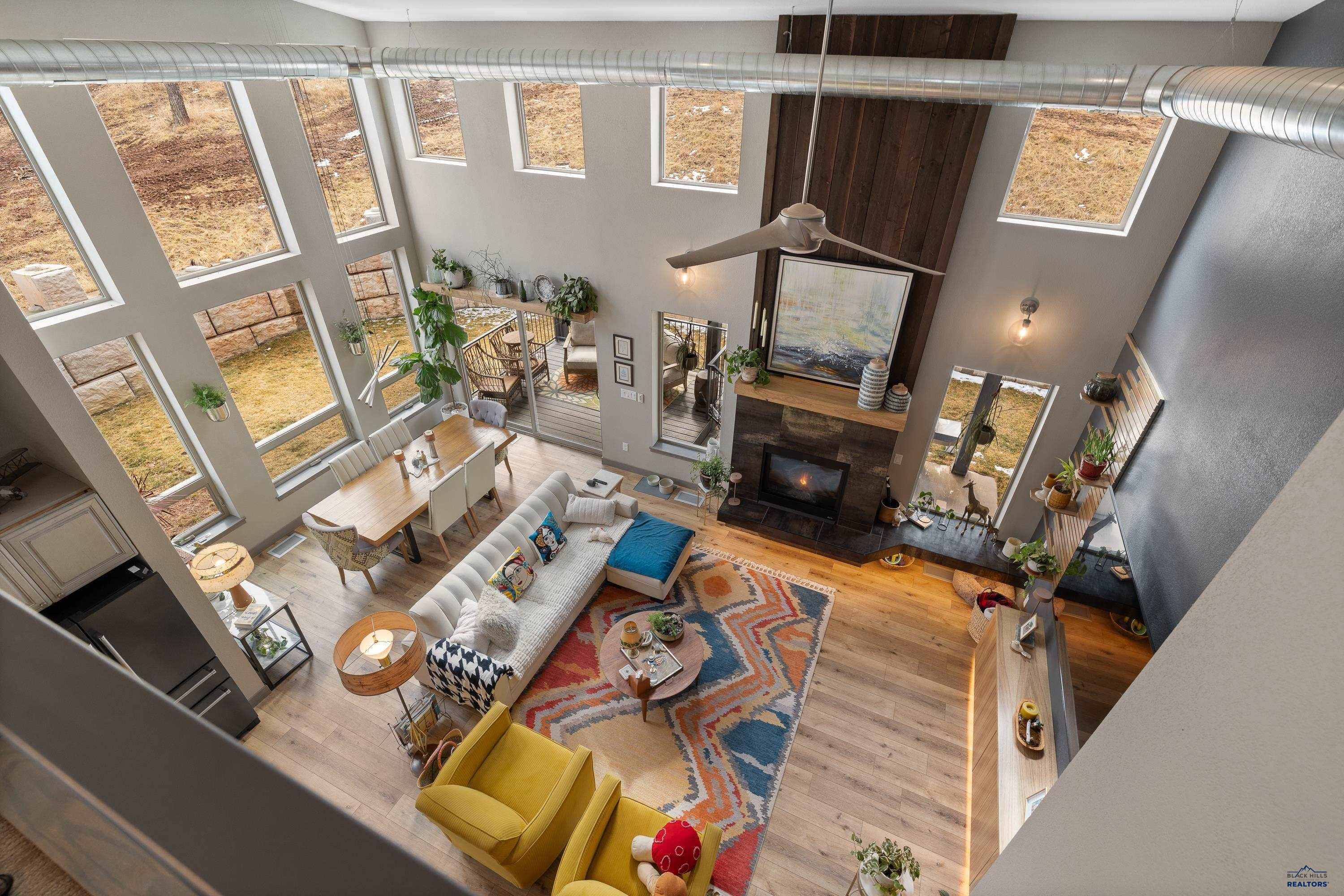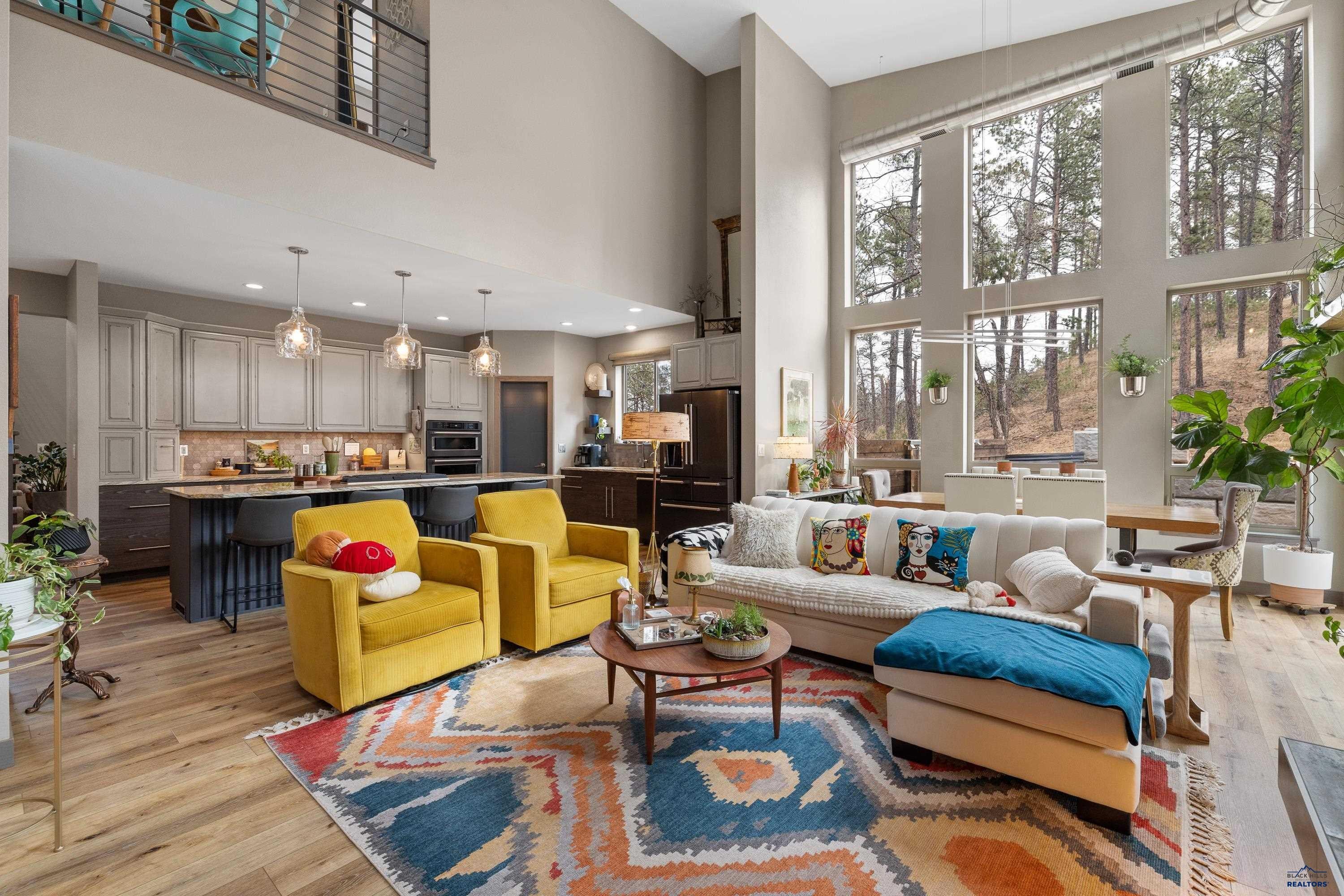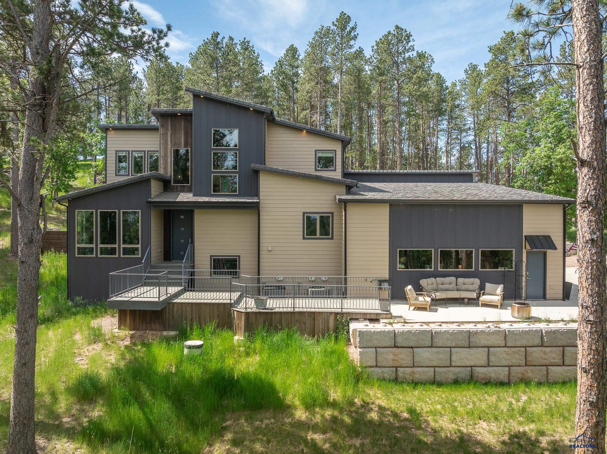 Lets start with the showstopper: a MASSIVE 51x31 attached oversized heated garage/shop with in-floor heat, its own half bath, and dog wash station. If you need serious space for vehicles, hobbies, projects, or outdoor gear, this is it. Two 9 overhead doors with 710 clearance plus a 12 door offer excellent height for trucks, trailers, and toys. Set on 1.97 acres surrounded by mature pines in the paved Copper Oaks Subdivision, just 10 minutes from Rapid City, this striking 1.5-story home is designed to capture the setting. Walls of windows frame pine views and flood the home with natural light, while exposed ductwork and modern architectural detail give the space a distinctive edge. The kitchen is anchored by a statement island with a gas cooktop that keeps you at the center of it all, along with double wall ovens and stainless steel appliances. Its built to perform and designed to gather, flowing seamlessly into the living and dining areas. The dining area is bright, open, and positioned to take in the views, with direct access to the covered patio for effortless indoor-outdoor living. The primary suite is a true retreat with soaring ceilings, a large window that brings the outdoors in, and a layout that easily accommodates a king bed plus seating. The ensuite bath delivers spa-like comfort with a walk-in tiled shower with glass surround, deep soaking tub and heated floors. Also on the main: a dedicated office with killer views, and a functional mudroom and laundry area. Upstairs, an open loft overlooks the main level, along with two bedrooms and a full bath. Step outside to a covered patio tucked into the pines with a natural hillside backdrop. The finished basement adds flexibility with a 2nd kitchen, large family room, two bedrooms, and a full bath. An additional 25x16 shed provides extra storage for tools, gear, or seasonal items. You have to see this one for yourself: Call for your private tour!