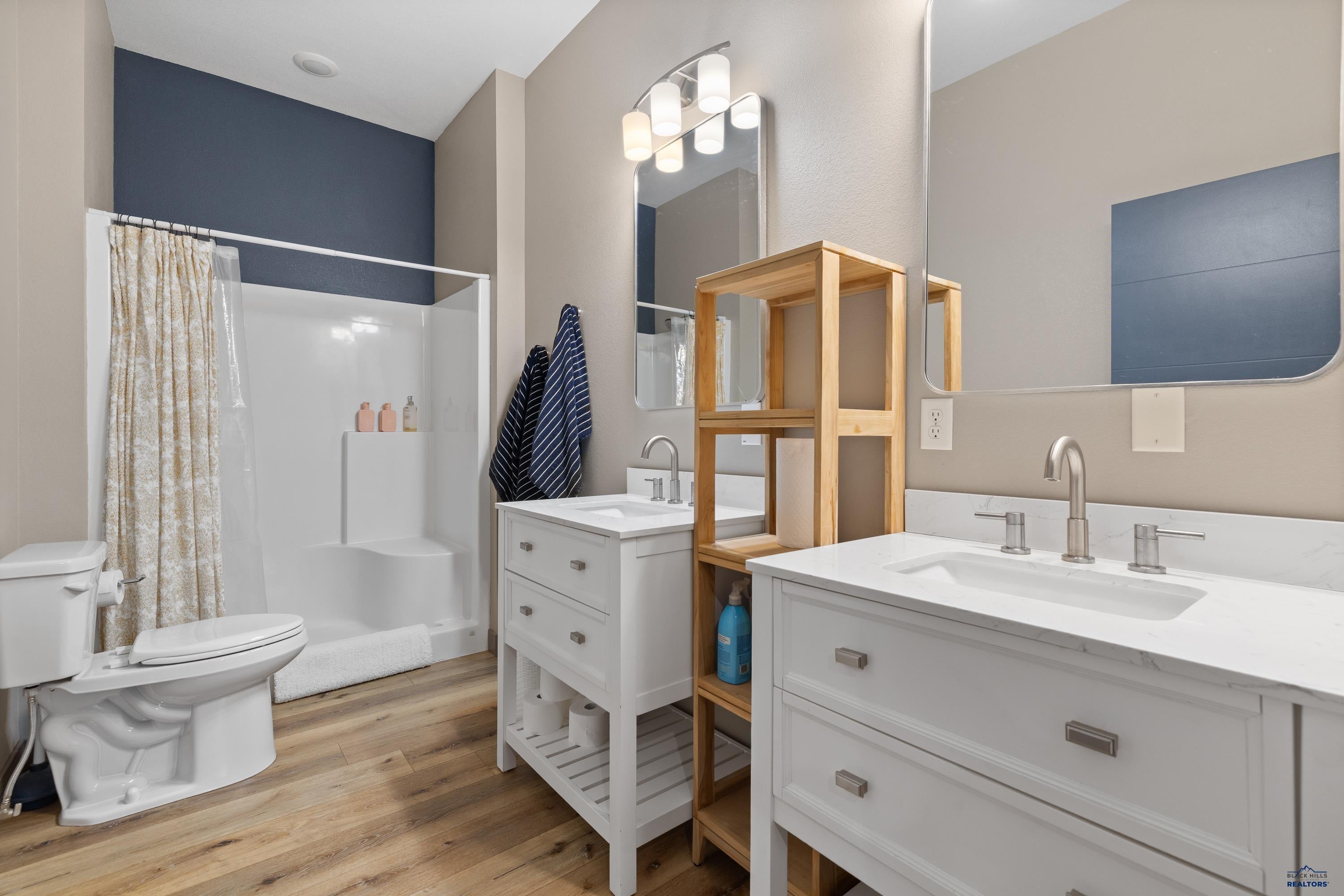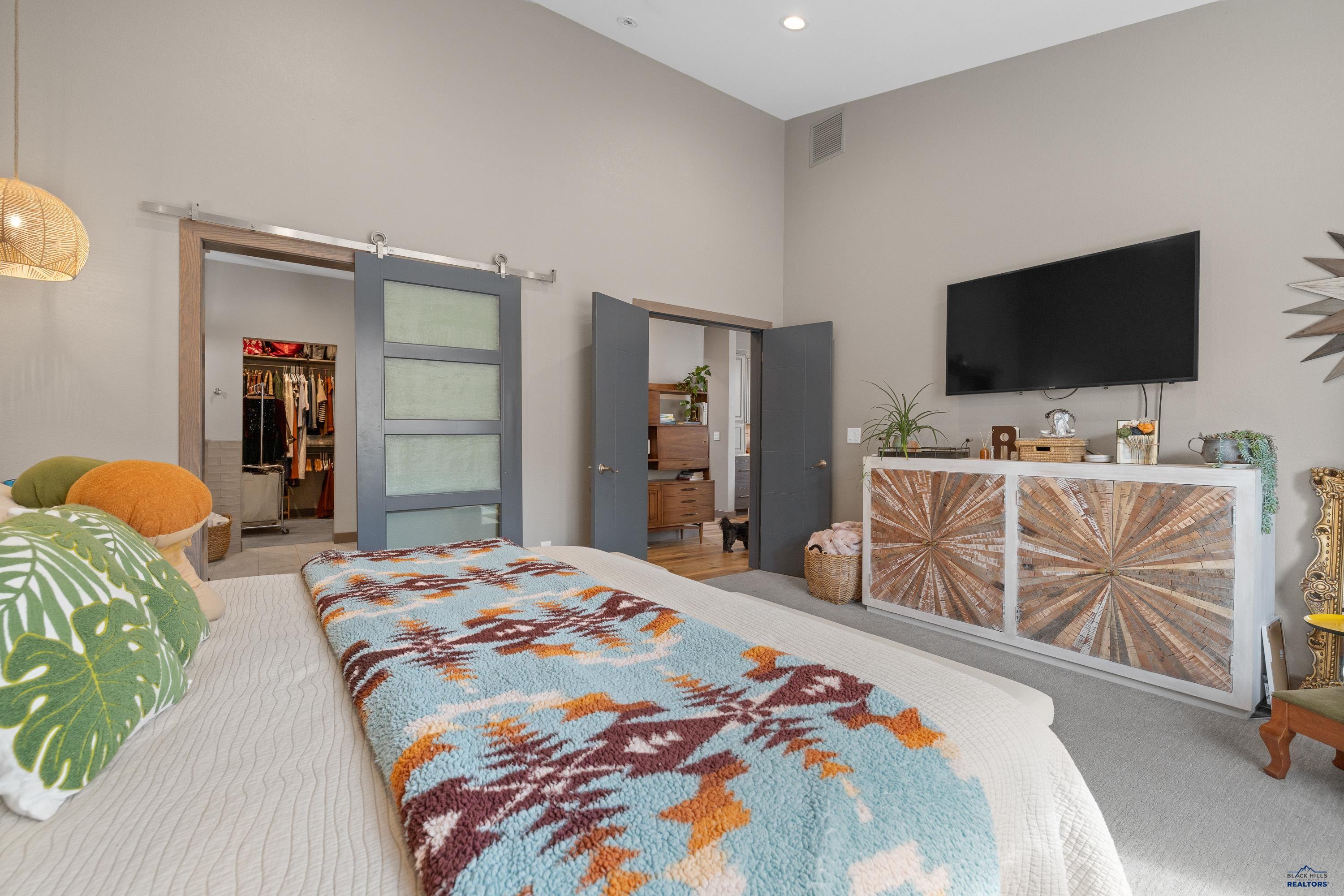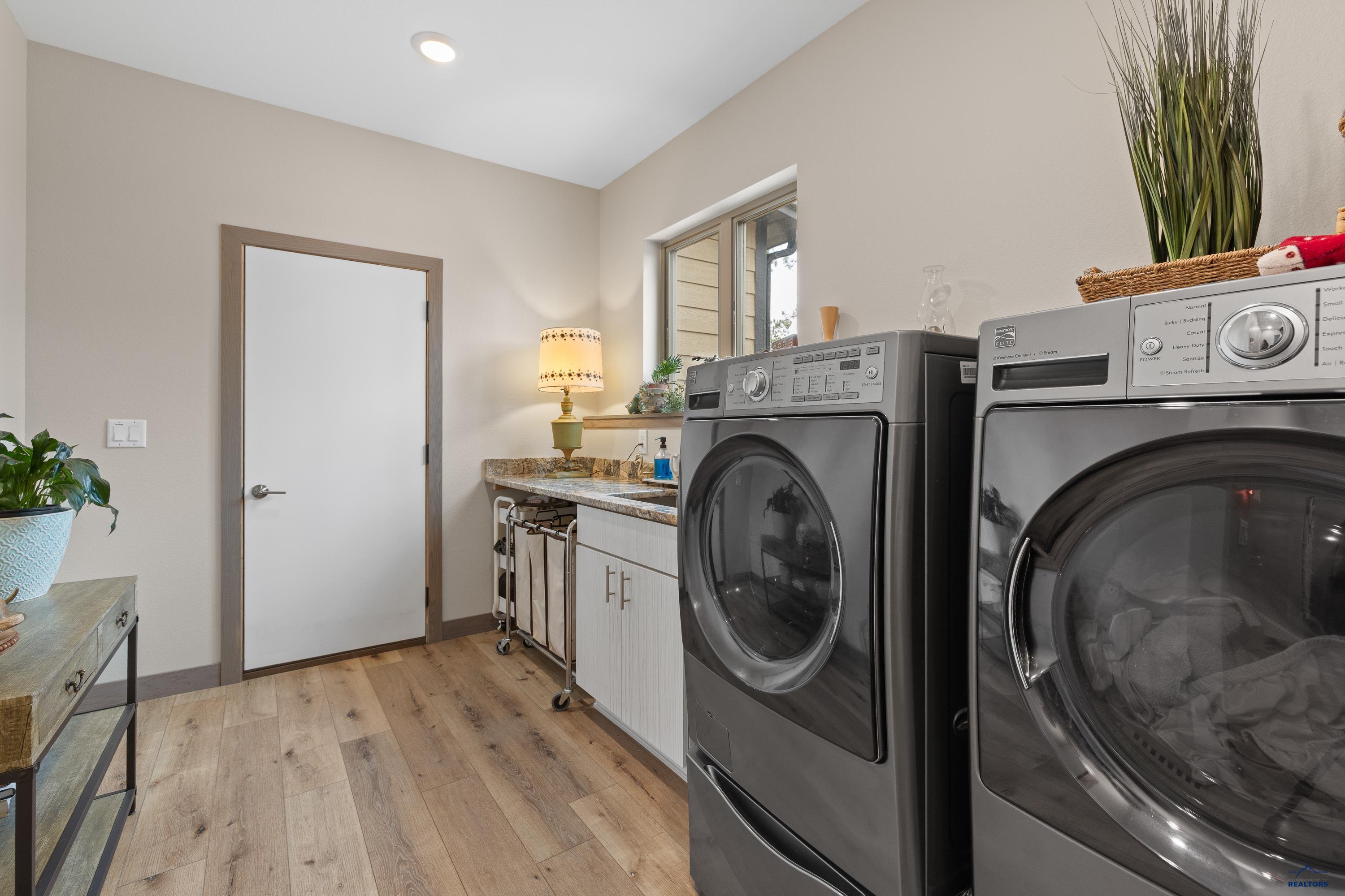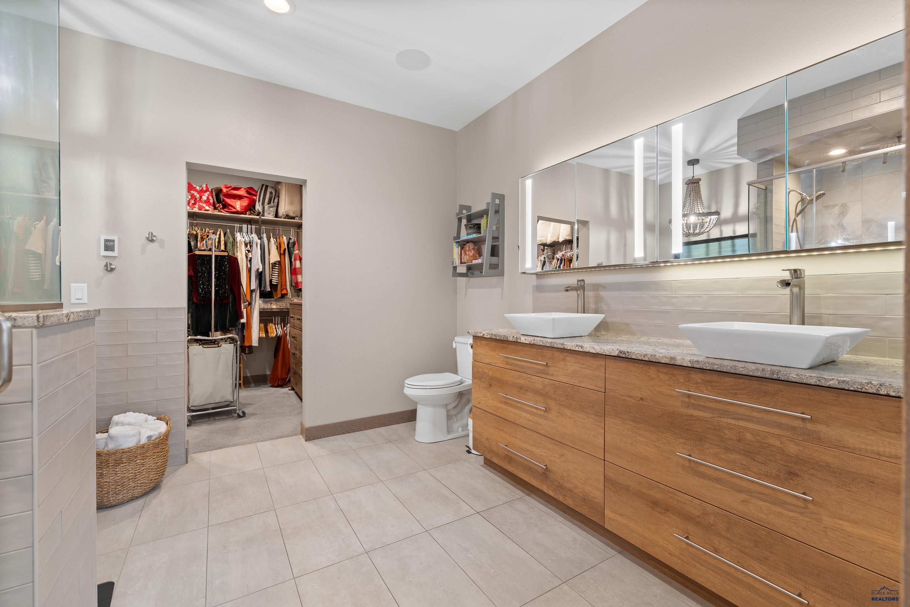 Lets start with the showstopper: a MASSIVE 51x31 attached oversized heated garage/shop with in-floor heat, its own half bath, and dog wash station. If you need serious space for vehicles, hobbies, projects, or outdoor gear, this is it. Two 9 overhead doors with 710 clearance plus a 12 door offer excellent height for trucks, trailers, and toys. Set on 1.97 acres surrounded by mature pines in the paved Copper Oaks Subdivision, just 10 minutes from Rapid City, this striking 1.5-story home is designed to capture the setting. Walls of windows frame pine views and flood the home with natural light, while exposed ductwork and modern architectural detail give the space a distinctive edge. The kitchen is anchored by a statement island with a gas cooktop that keeps you at the center of it all, along with double wall ovens and stainless steel appliances. Its built to perform and designed to gather, flowing seamlessly into the living and dining areas. The dining area is bright, open, and positioned to take in the views, with direct access to the covered patio for effortless indoor-outdoor living. The primary suite is a true retreat with soaring ceilings, a large window that brings the outdoors in, and a layout that easily accommodates a king bed plus seating. The ensuite bath delivers spa-like comfort with a walk-in tiled shower with glass surround, deep soaking tub and heated floors. Also on the main: a dedicated office with killer views, and a functional mudroom and laundry area. Upstairs, an open loft overlooks the main level, along with two bedrooms and a full bath. Step outside to a covered patio tucked into the pines with a natural hillside backdrop. The finished basement adds flexibility with a 2nd kitchen, large family room, two bedrooms, and a full bath. An additional 25x16 shed provides extra storage for tools, gear, or seasonal items. You have to see this one for yourself: Call for your private tour!