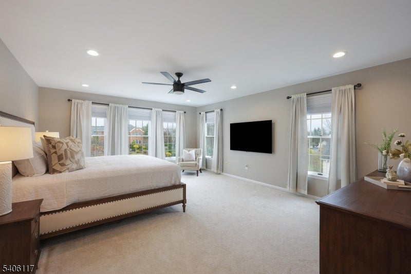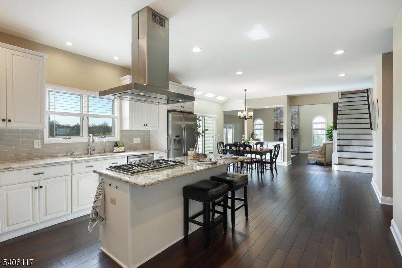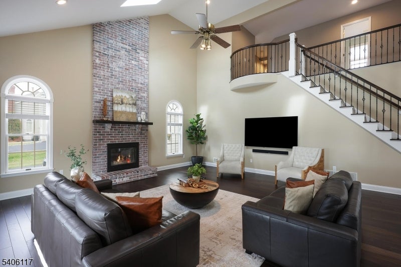 Stunning brick-front colonial offering 5 bedrooms, 3.5 baths & approx. 4,134 sq ft of beautifully updated living space. A grand two-story foyer w/ hardwood floors sets the tone, flanked by a private office w/ custom built-ins, wainscoting, & recessed lighting. The elegant dining room features hardwood flooring, tray ceiling, chair rail, & decorative columns. The spacious kitchen is designed for both function & style, boasting a large center island, granite countertops, coffee station, & newer cooktop & dishwasher. The inviting living room offers bay windows & recessed lighting, while the dramatic two-story family room showcases skylights, a second staircase, & a floor-to-ceiling whitewashed brick wood-burning fireplace. A well-appointed laundry/mudroom with exterior access and an updated powder room complete the main level. Upstairs, the luxurious primary suite features double-door entry, a spa-like bath with quartz dual vanity, jetted tub, separate shower, private commode, & an exceptional walk-in closet with custom built-ins, ironing center, valet, and jewelry storage. Bedrooms 2-5 include custom closets, and recessed lighting. The basement offers epoxy floors, shelving and direct access to the 3-car garage. The exterior offers a spacious open yard w/ sweeping views & composite deck (2022). Additional highlights: Roof (2019), 2 HVACs (2018) ext. lighting, sec system, Ring doorbell, smart thermostat, Tesla charger, New HW Floors (2020) and custom blinds throughout (2024).