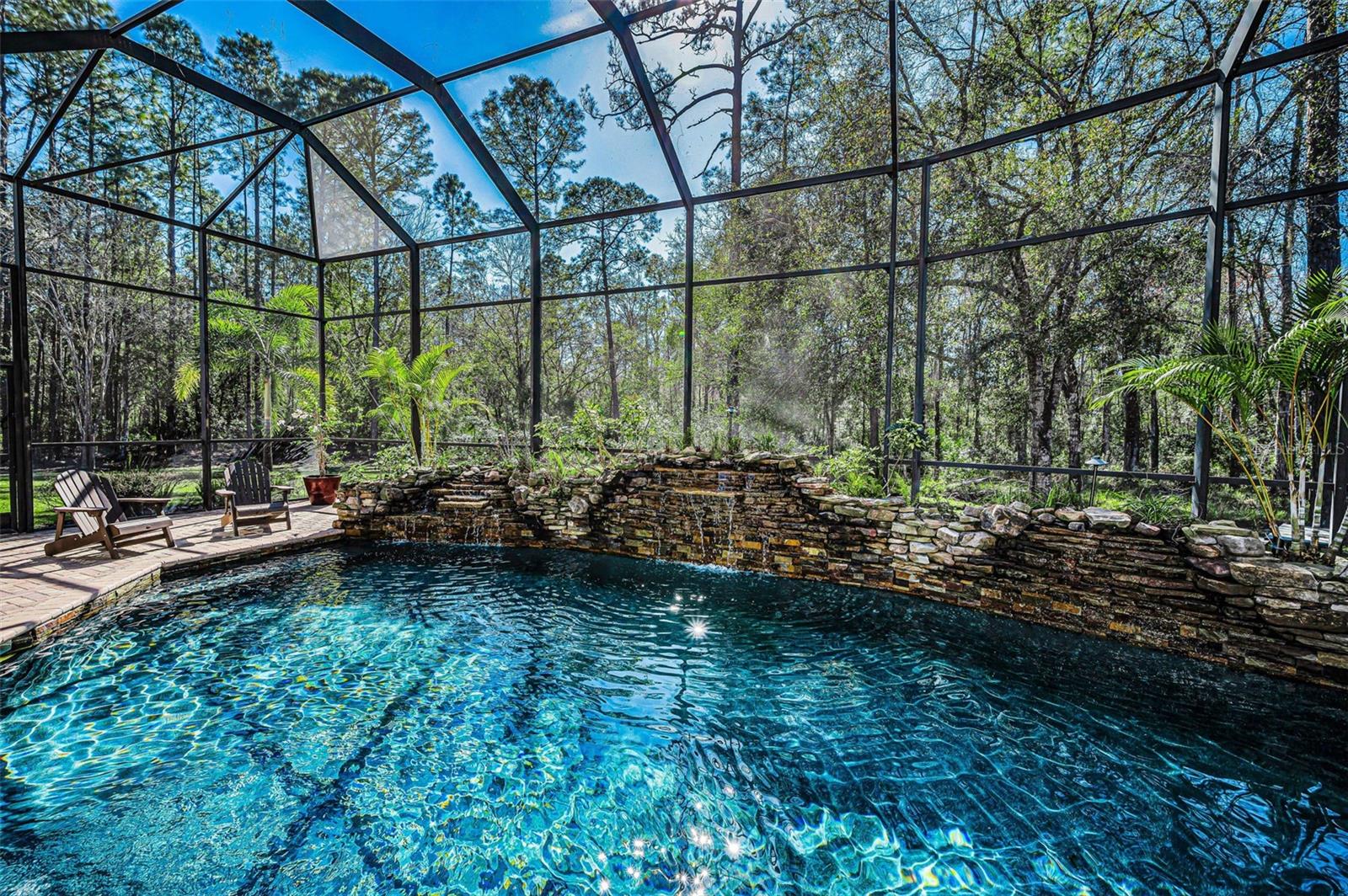 Welcome to this exceptional 5-bedroom, 4-bath luxury estate in the highly desirable Aristida community, offering over 4,300 square feet of living space on a private 2.73-acre conservation lot. Nestled at the end of a quiet cul-de-sac, this custom home delivers the perfect blend of privacy, nature views, and convenience just minutes from top-rated schools, shopping, dining, medical facilities, and Starkey Market in the Trinity/Odessa area.Impressive curb appeal begins with dual brick paver driveways, a grand double-door entry, and an elegant tile roof. Inside, youll find tile flooring throughout the main living areas, crown molding, tray ceilings, decorative niches, and a fireplace in the formal living room. A separate dining room, spacious family room filled with natural light, and a dedicated office create an ideal layout for both everyday living and entertaining.The chefs kitchen features quartz countertops, stainless steel appliances, glass cooktop with custom range hood, center island, breakfast bar, oversized walk-in pantry, and a bright breakfast nook overlooking the pool. Just off the family room, the private media/theater room with stadium seating offers the ultimate at-home movie experience. An attached in-law apartment with a private porch provides flexible multigenerational living or guest accommodations.French doors open to a resort-style outdoor living space designed for entertaining, complete with a paver pool deck, sparkling pool and spa, stacked stone water features, and a fully equipped outdoor kitchen with granite counters and stone accents. The outdoor amenities continue with a firepit seating area, basketball court, and ample space to add pickleball or other recreational features.The expansive primary suite is a private retreat with a sitting area, spa-like bath featuring a jetted tub, walk-in tile shower, dual vanities with makeup station, and large walk-in closets. Additional highlights include freshly painted bedrooms, an oversized 4-car garage with newly sealed floors, and breathtaking conservation views throughout the property.This is a rare opportunity to own a one-of-a-kind custom estate with luxury upgrades, acreage, and unmatched privacy in one of the areas most sought-after communities. Schedule your private showing today.