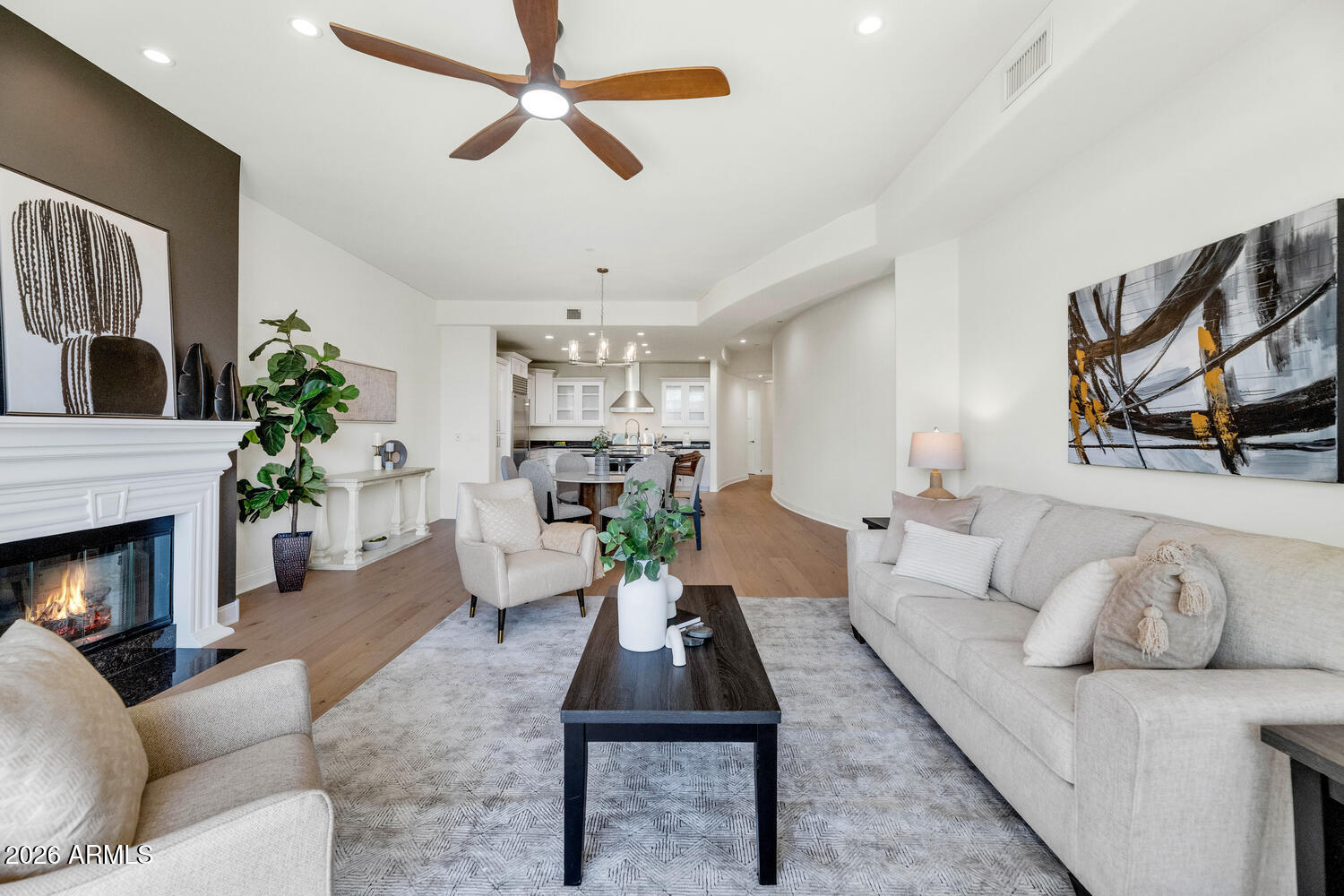 Experience elevated resort living in the prestigious Fairway Lodge at 8 Biltmore, adjacent to the iconic Arizona Biltmore, a Waldorf Astoria Resort. This beautifully upgraded 3 bedroom, 2.5 bath residence offers a rare advantage - open views from every room, capturing sweeping vistas of the golf course and surrounding mountains with no interior-facing exposures. With only two other residences on the floor, the home offers both privacy and an exclusive boutique feel. Expansive sliding glass doors frame the lush fairway views and open to a private balcony, creating a seamless indoor-outdoor lifestyle. The light-filled great room features a designer fireplace and refined finishes, ideal for both relaxing and entertaining. The chefs kitchen is appointed with premium stainless appliances including a Wolf gas range, wine/beverage refrigerator, custom cabinetry, and granite countertops. The spacious primary suite offers tranquil views and a spa-inspired bath with dual vanities and an oversized walk-in shower, creating a peaceful retreat.Residents of 8 Biltmore enjoy a secure, guard-gated environment with resort-style amenities including a heated pool, spa, fitness center, clubhouse, and underground parking. Located along the prestigious Camelback Corridor, the community sits beside two championship golf courses and just steps from the legendary Arizona Biltmore Resort, Biltmore Fashion Park, world-class dining, and premier shopping. A rare opportunity to enjoy a luxury lock-and-leave lifestyle in one of Phoenixs most iconic destinations.