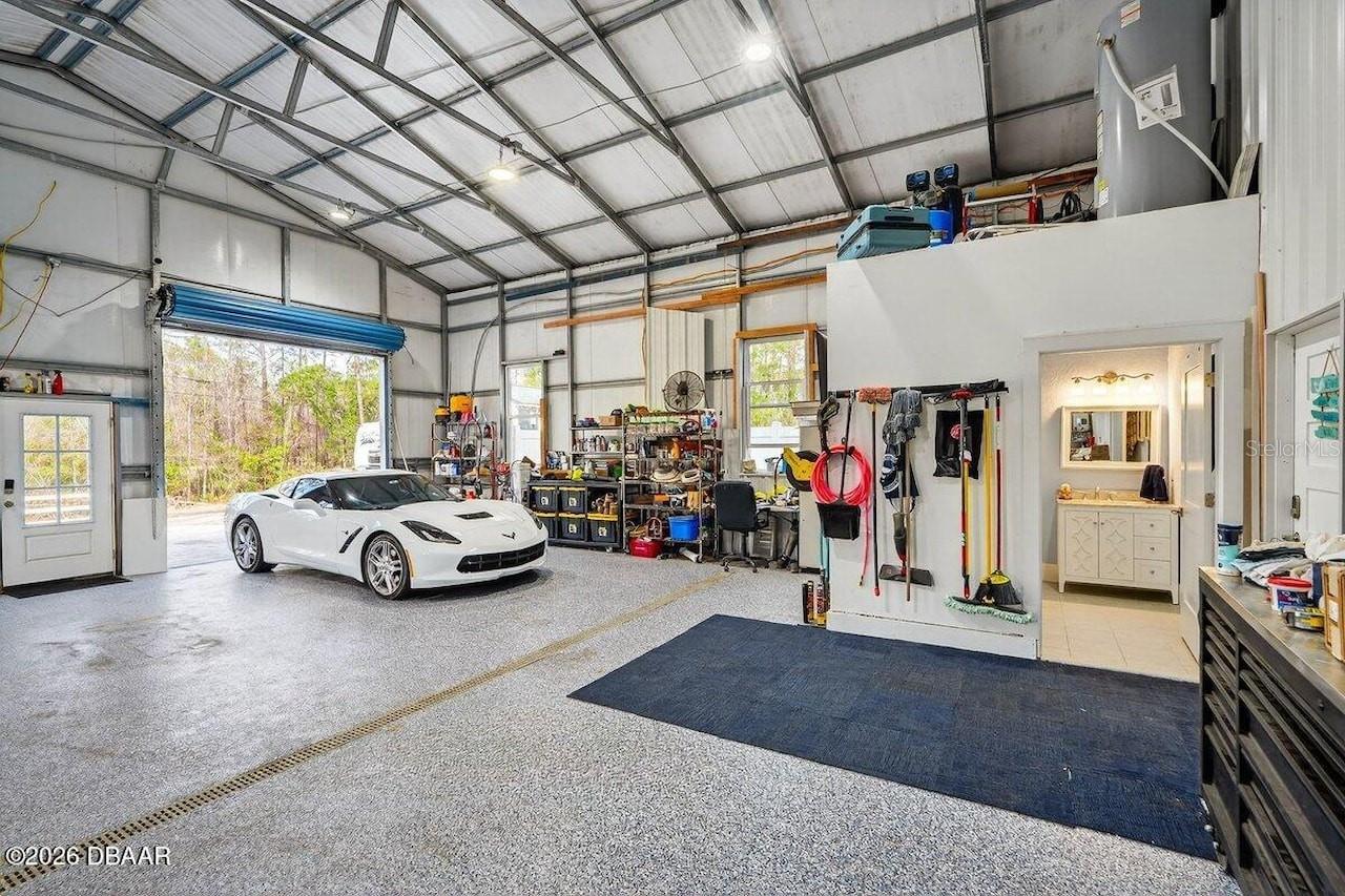 Private 2024 barndominium on nearly 4 acres with heated saltwater pool, pond views, and a 36x36 oversized garage in Ormond Beach. Encompassing approximately 3,000 square feet, the residence is defined by soaring vaulted ceilings, expansive windows, and a seamless open-concept layout filled with natural light.The chefs kitchen is both elegant and functional, featuring granite countertops, an oversized island, walk-in pantry, and premium appliancesideal for effortless entertaining. Major systems, including the metal roof, HVAC, and appliances, are all approximately 1.5 years old.The outdoor setting is equally compelling, offering a heated saltwater pool with waterfall, a screened lanai, and a separate pool house ideal for guests or extended stays. A substantial 36x36 garage provides exceptional versatility for vehicles, storage, or hobbies.Framed by peaceful pond views and natural landscape, this property offers a rare sense of privacy and space while remaining conveniently located near major roadways, shopping, and dining.