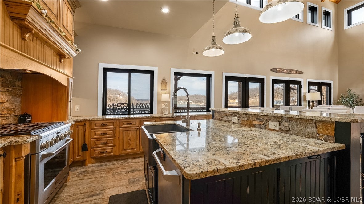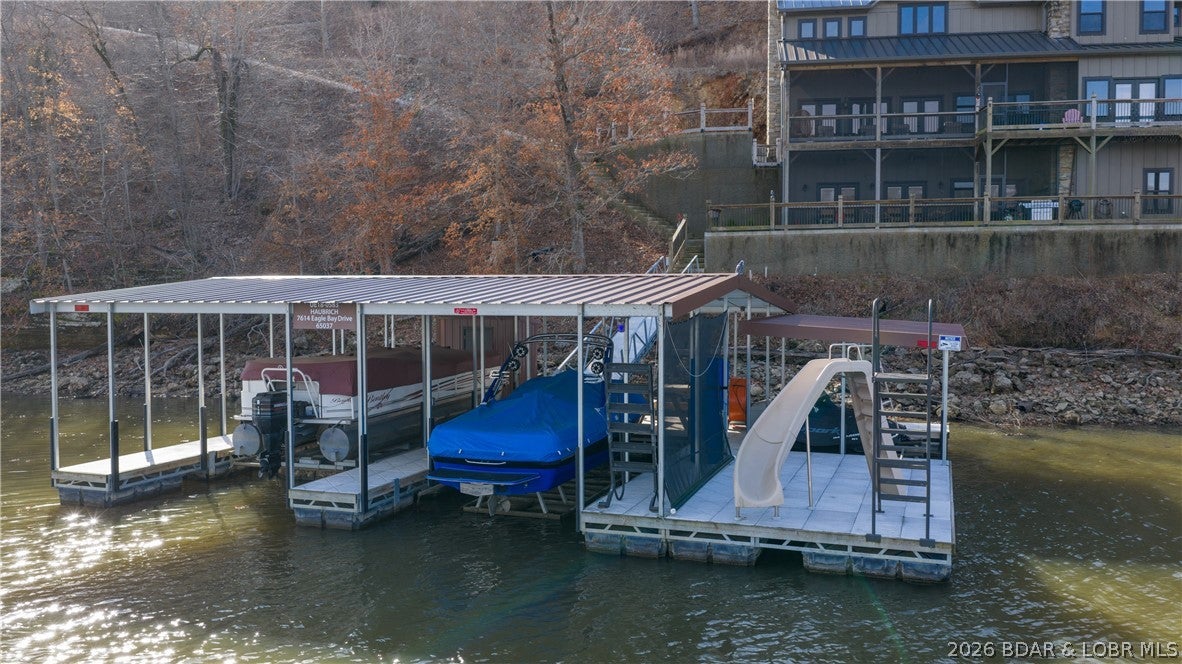 Private lakefront estate at the 55MM of the Osage. Set on 1.75 acres with an incredible 483 of shoreline, this furnished 6 bedroom, 5.5 bath retreat delivers privacy and space rarely found at the lake. Built in 2017 with nearly 3919 sq ft, the home was designed for gathering and entertaining with soaring two-story ceilings, and a dramatic stacked stone fireplace anchoring the open living area. The kitchen features granite counters and a large island overlooking the lake. Two main-level ensuites include the lakeview primary with a steam shower and a double vanity. Upstairs offers two bedrooms with a Jack and Jill bath plus a loft TV area, while the lower level includes a family room, game room, bar, bedroom, large bunkroom, and 2 full bathrooms. Outdoor living shines with multiple screened and covered spaces, an open deck, a covered grilling area, and an outdoor fireplace. Gentle walk with only 7 steps to the concrete dock featuring 12x32, 12x24 slips, boat lifts, 2 PWC spaces, Wet Steps ladder & Highdive, slide, and more. Long private drive, deep water, and room for a pool. Make it a complete package - the boats are available for additional outside the real estate transaction.