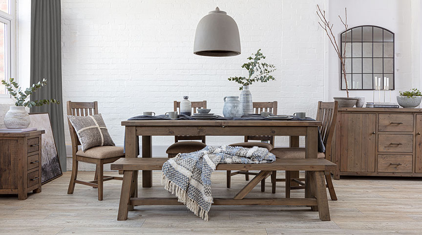 Everything from tempting trestle dining tables and family-friendly extendable tables to a welcoming wood bench and seriously stylish sideboards, these naturally rustic additions will add an instant Nordic vibe to your dining space. Made using aged reclaimed wood rescued from old buildings, Modish Living’s Farringdon and Dorset collections are the perfect fit for Scandi design devotees. Skillfully crafted to enhance the natural tones of the wood and given a renewed sense of purpose and style, these pieces evoke a sense of comfort, style and happiness.