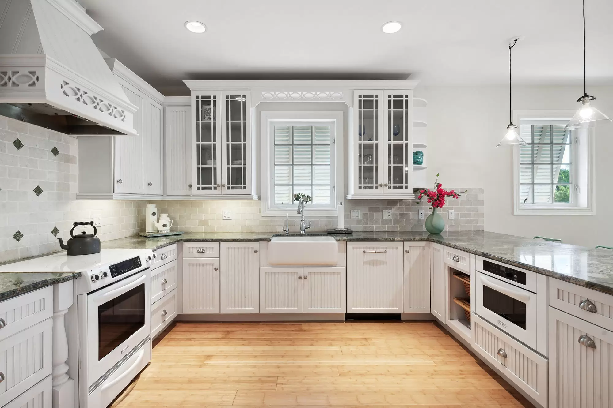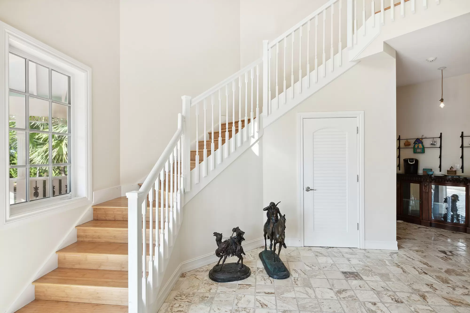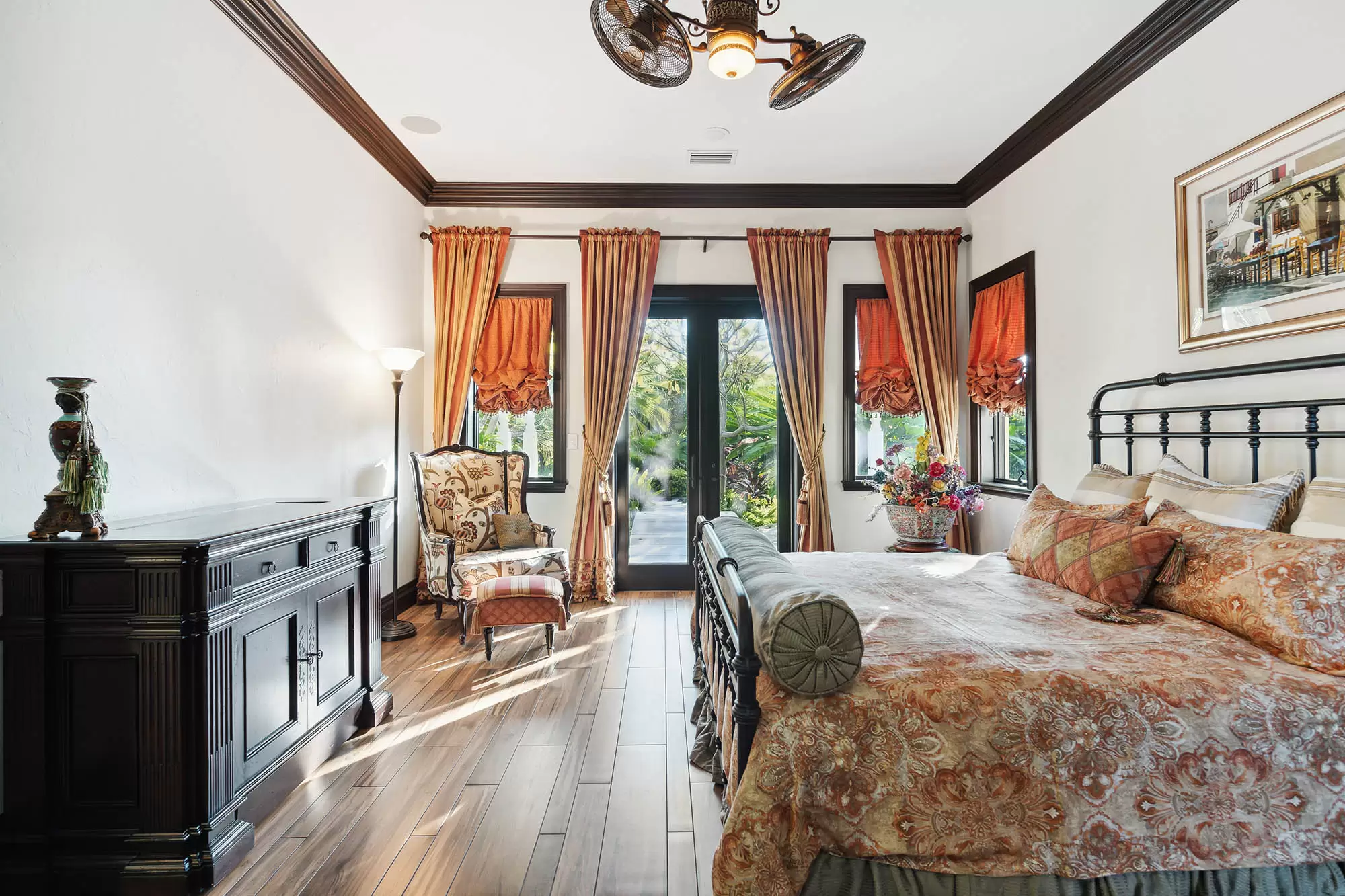 Innovatively designed to accommodate generations of family or a partnership acquisition, two distinct structures are joined by a glass, enclosed aerial walkway seemingly creating a compound-like assemblage with all spacious living spaces accessed from within.