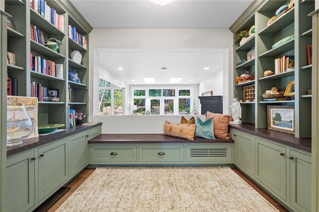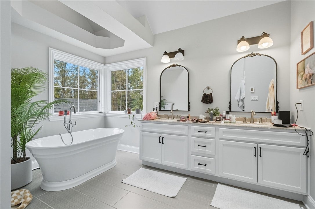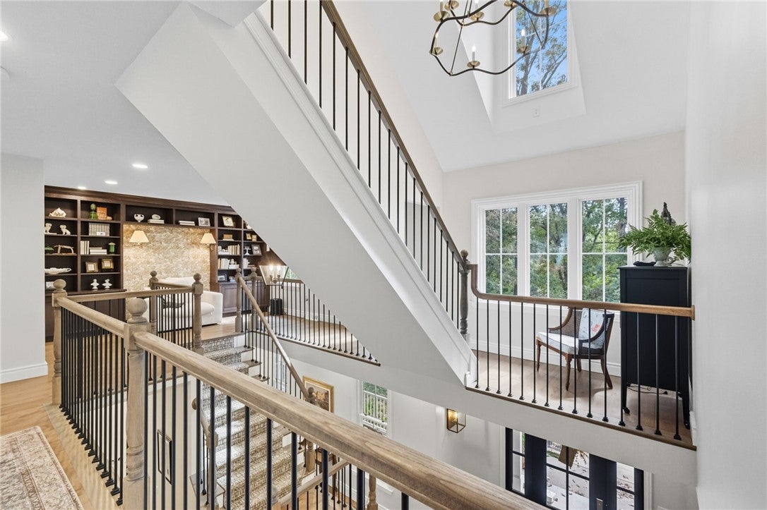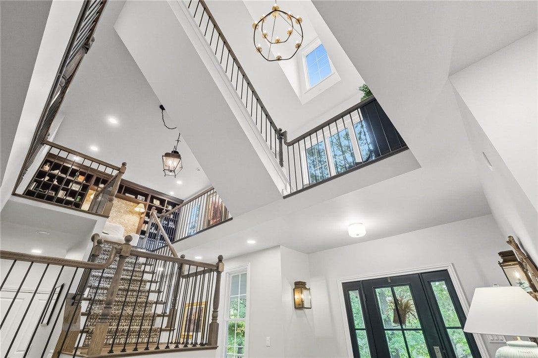 This European estate is located on 4.77/- gated acres in Tyrone, Georgia, and has undergone meticulous renovation by skilled craftsmen to present a residence suitable for both sophisticated entertaining and comfortable day-to-day living. The driveway is bordered by mature trees, with professionally landscaped gardens enhancing the propertys visual appeal.